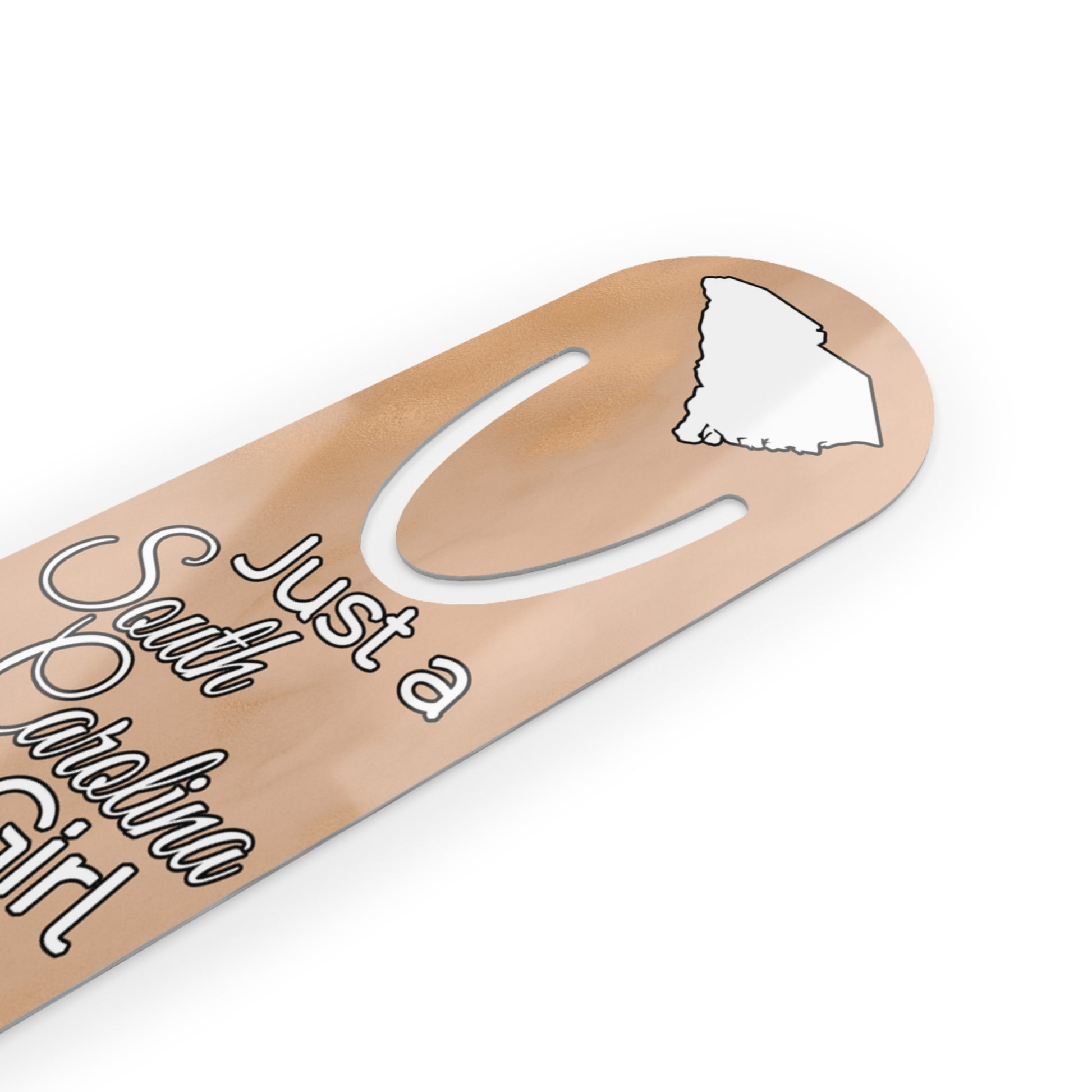 Show your pride in your home state with this bookmark showing Just a South Carolina Girl in an Alabama World. Made with robust aluminum, features top slot that holds single pages in place.