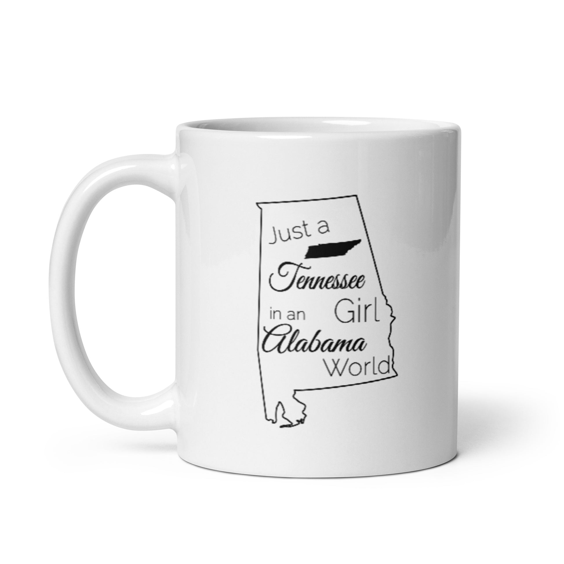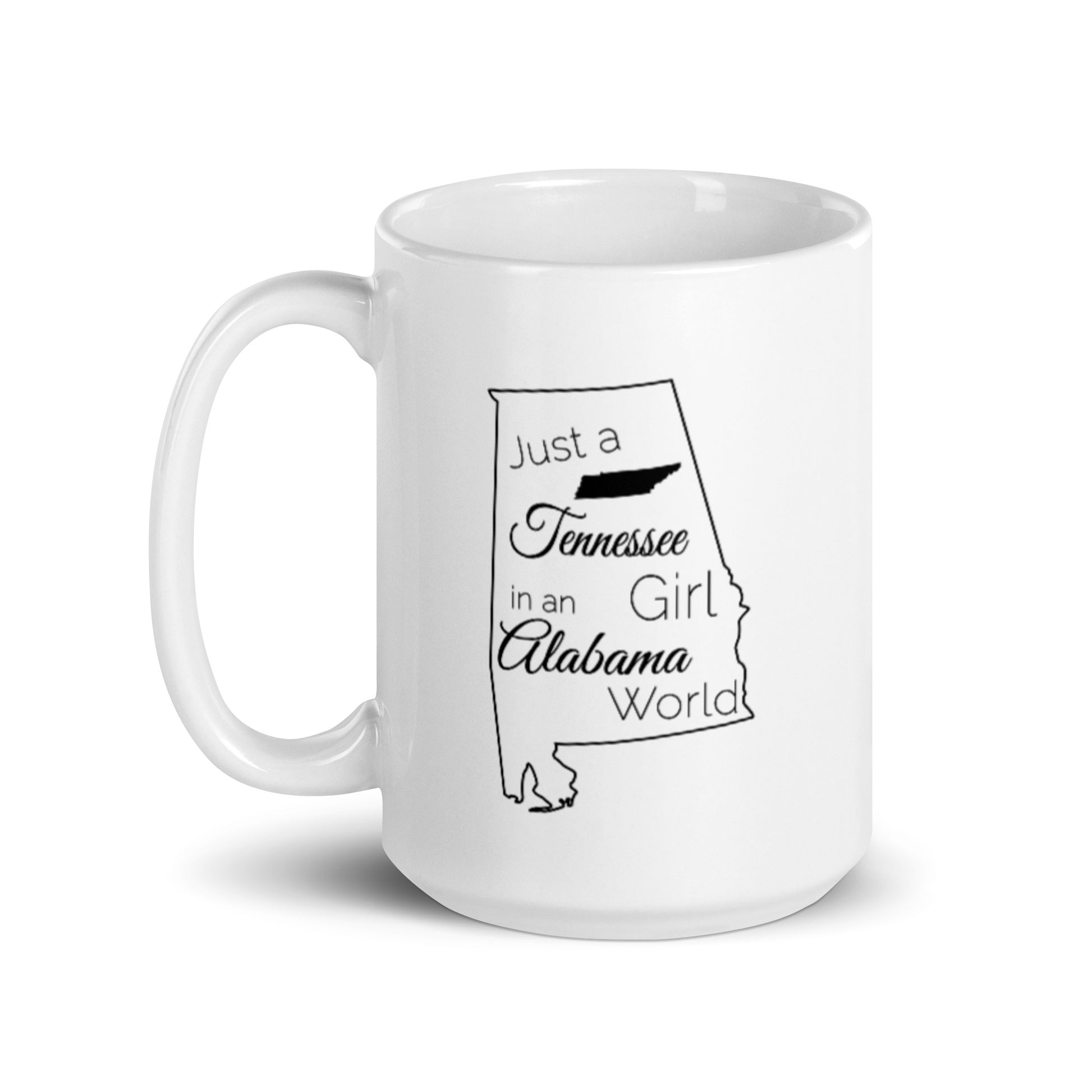 Just a Tennessee Girl in an Alabama World White glossy mug
