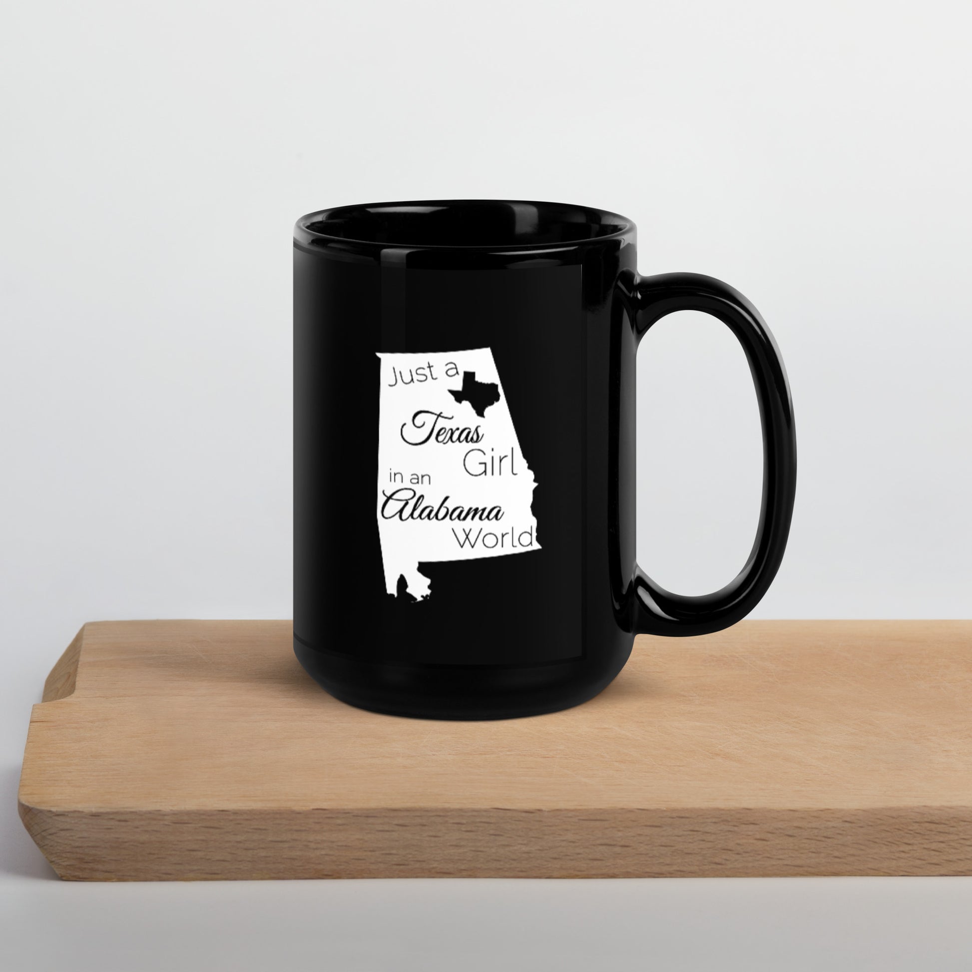Just a Texas Girl in an Alabama World Black Glossy Mug