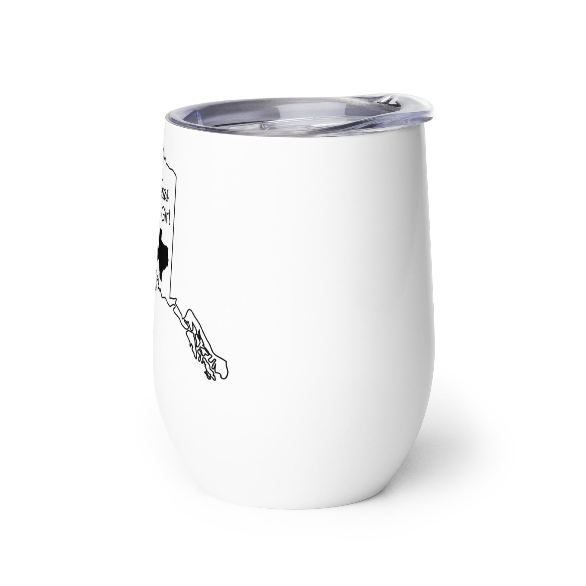 Show your pride in your home state with this wine tumbler showing Just a Texas Girl in an Alaska World. What’s an outdoor party without a wine tumbler to keep a drink fresh and at just the right temperature? Forget breakable glasses—give this uniquely shaped wine tumbler a chance and have fun with friends without worry.