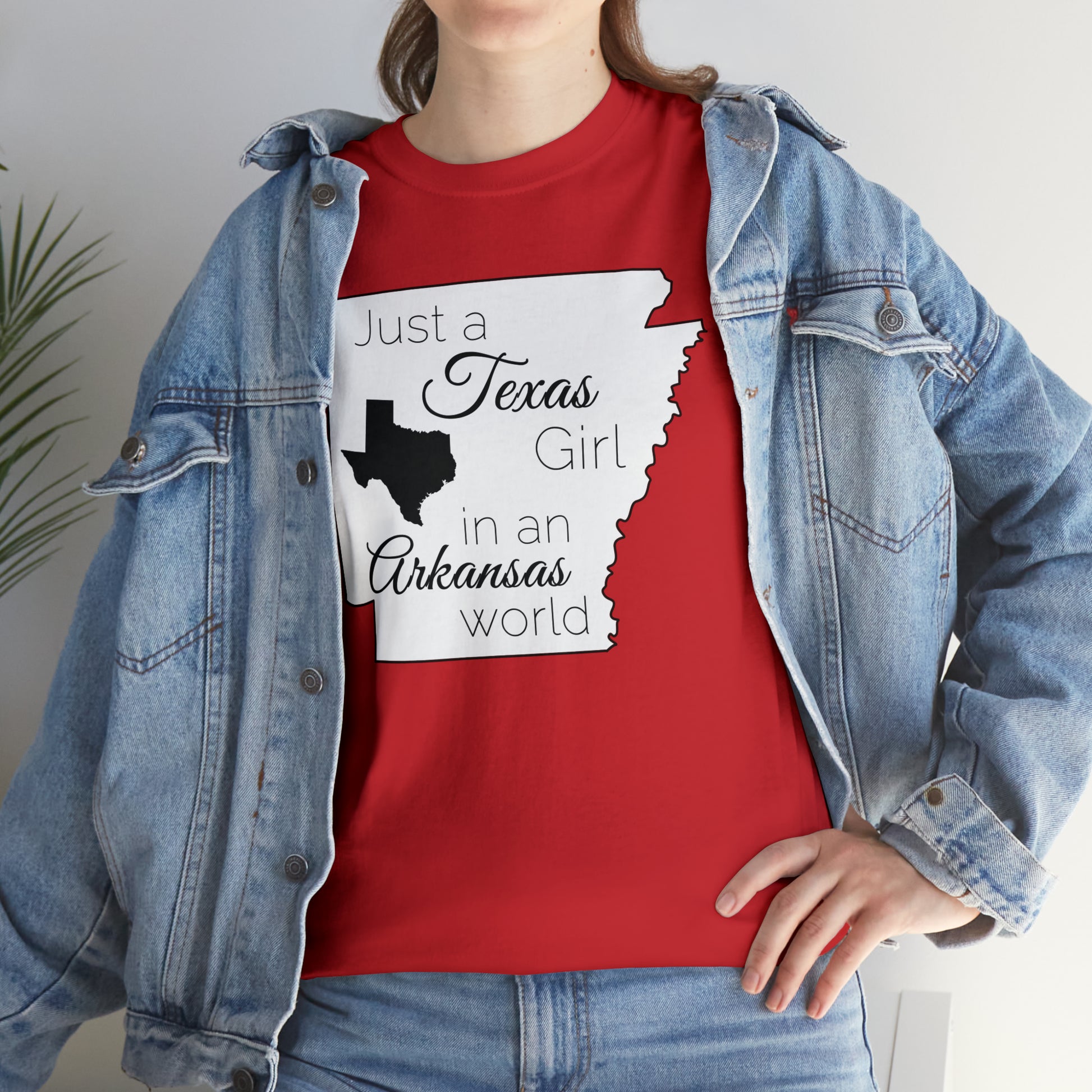 Just a Texas Girl in an Arkansas World Unisex Heavy Cotton Tee