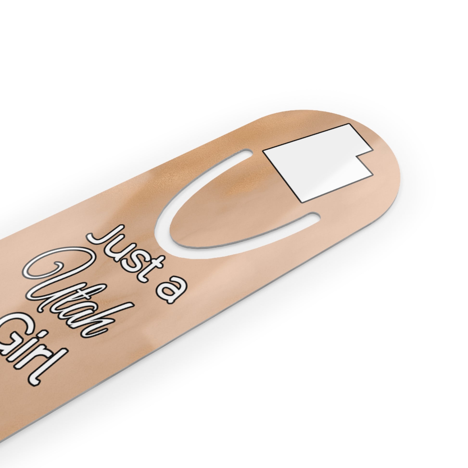 Show your pride in your home state with this bookmark showing Just a Utah Girl in an Alabama World.  Made with robust aluminum, features top slot that holds single pages in place.
