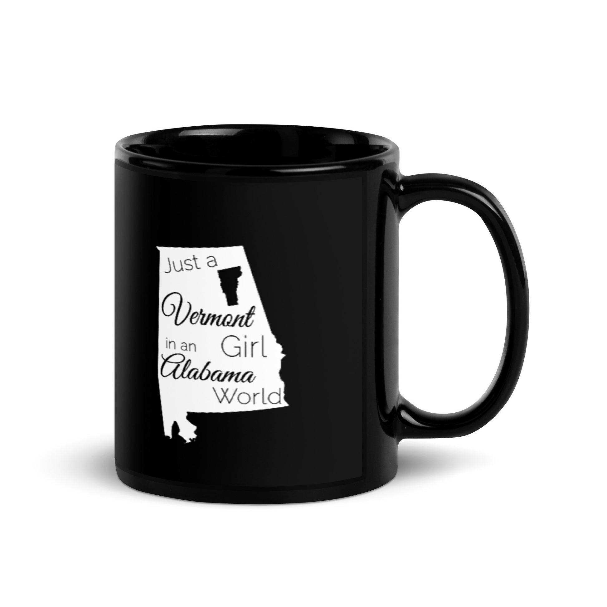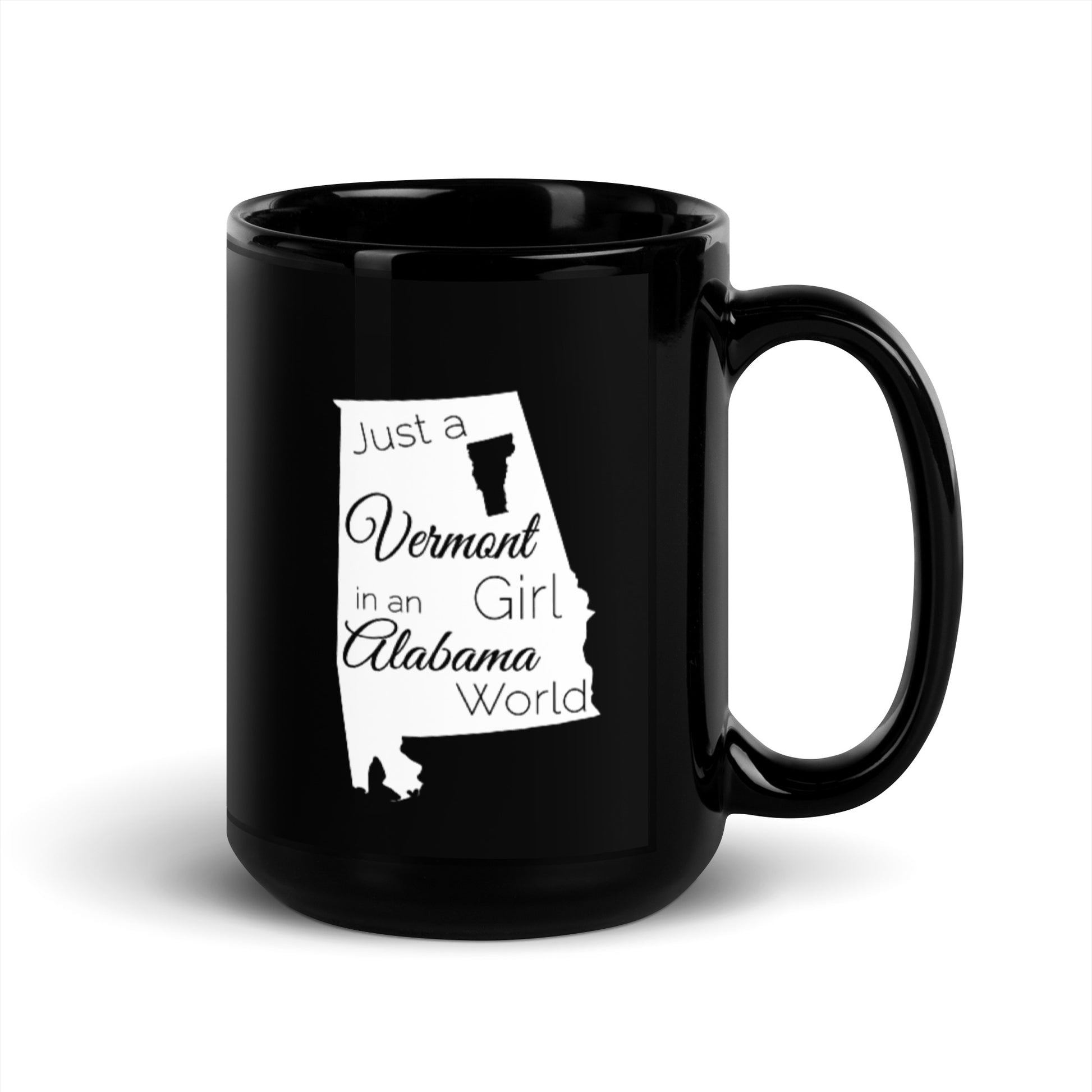 Just a Vermont Girl in an Alabama World Black Glossy Mug