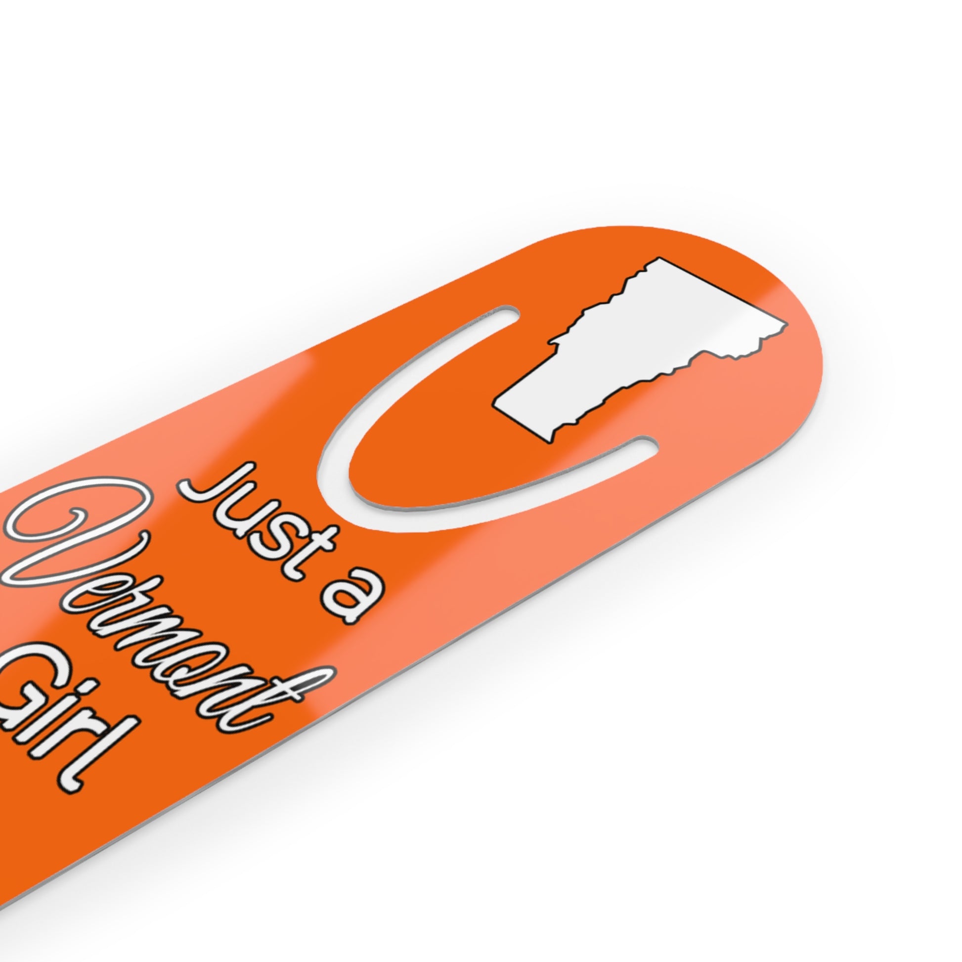 Show your pride in your home state with this bookmark showing Just a Vermont Girl in an Alabama World. Made with robust aluminum, features top slot that holds single pages in place.