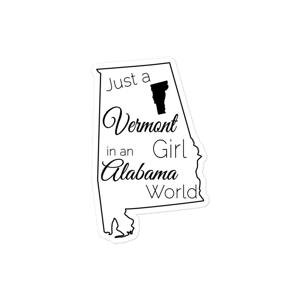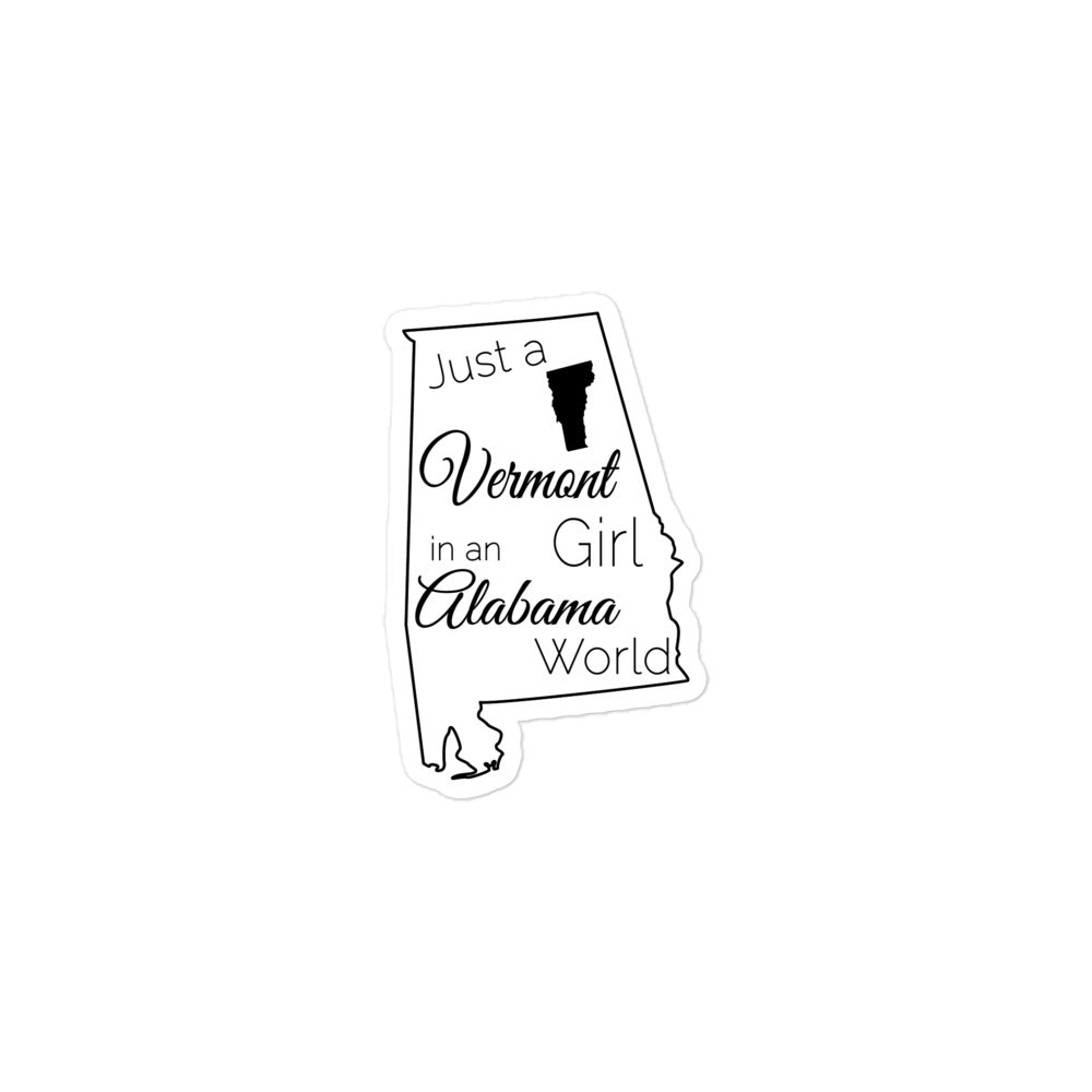 Just a Vermont Girl in an Alabama World Bubble-free stickers
