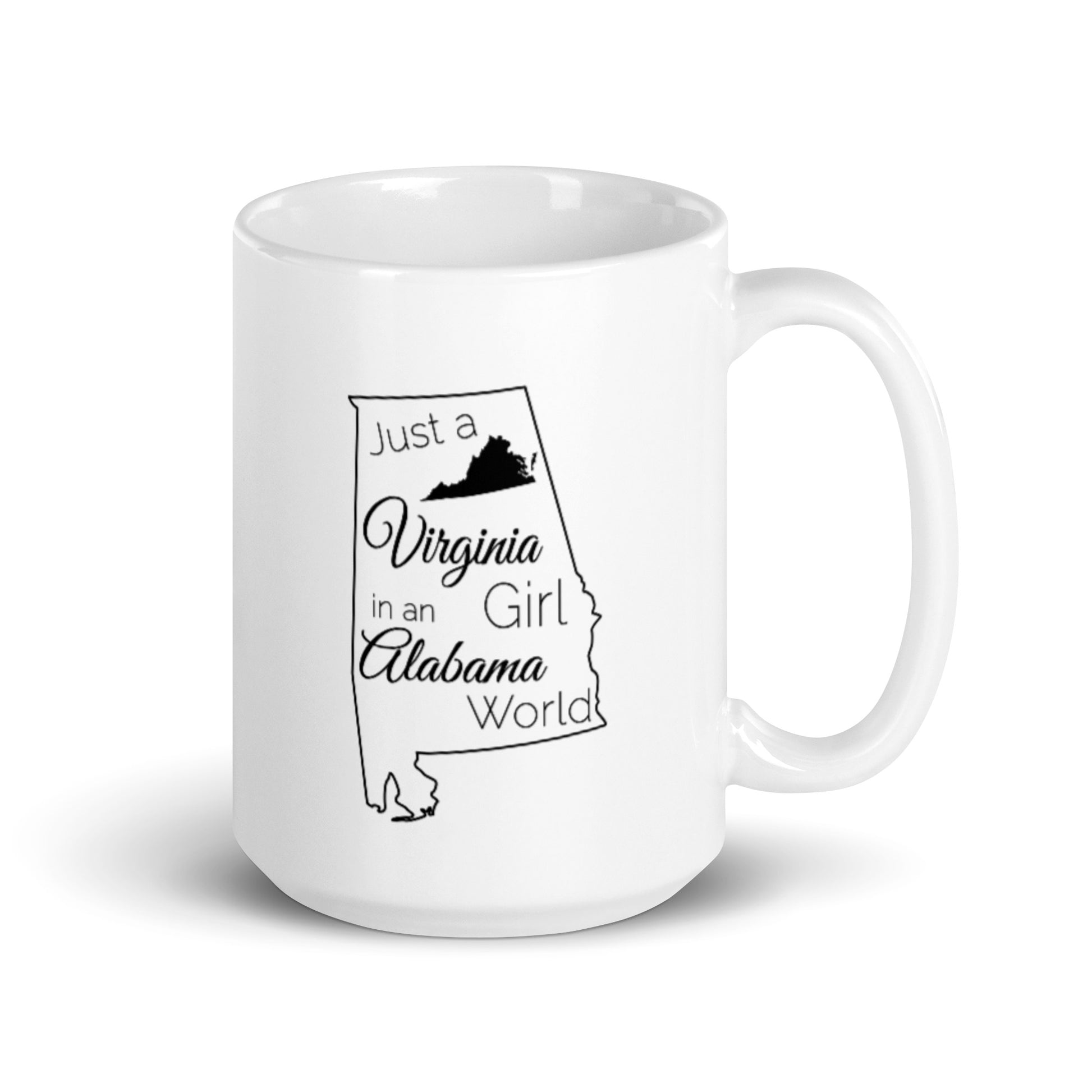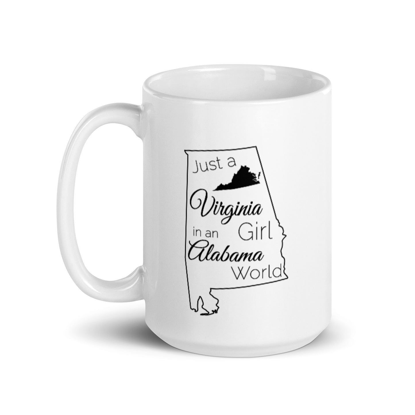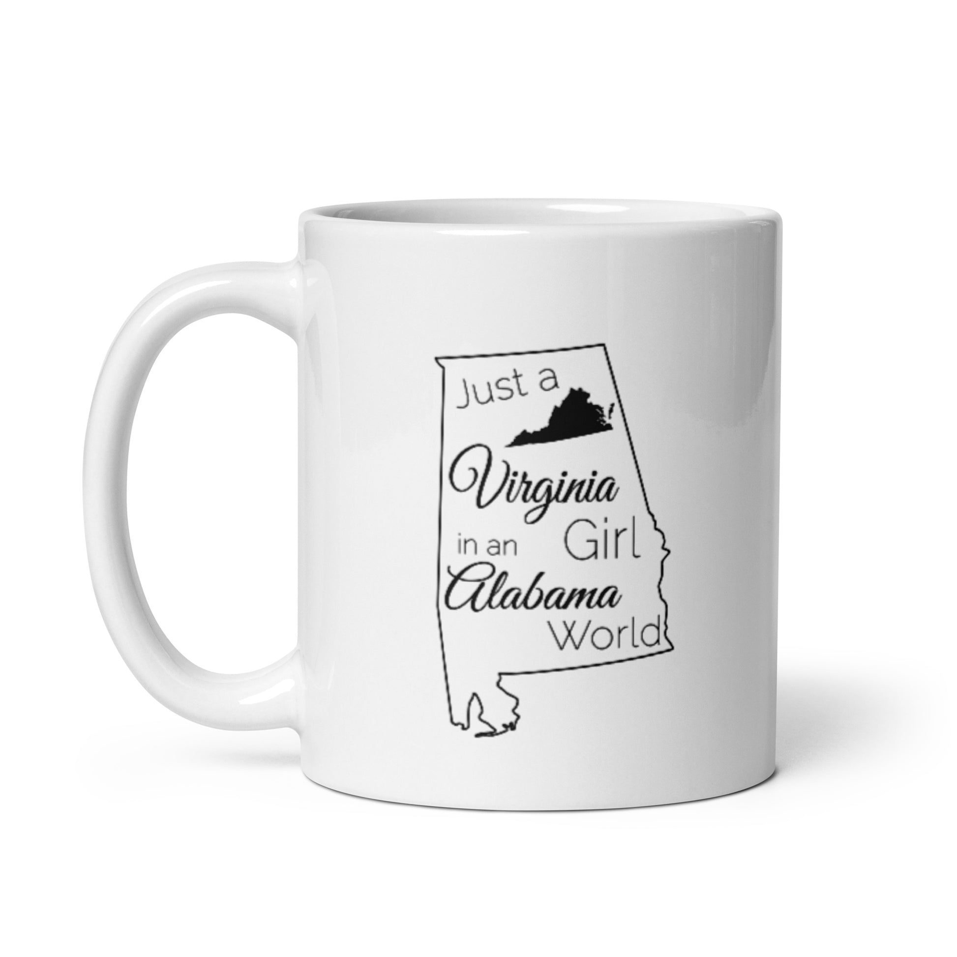 Just a Virginia Girl in an Alabama World White glossy mug
