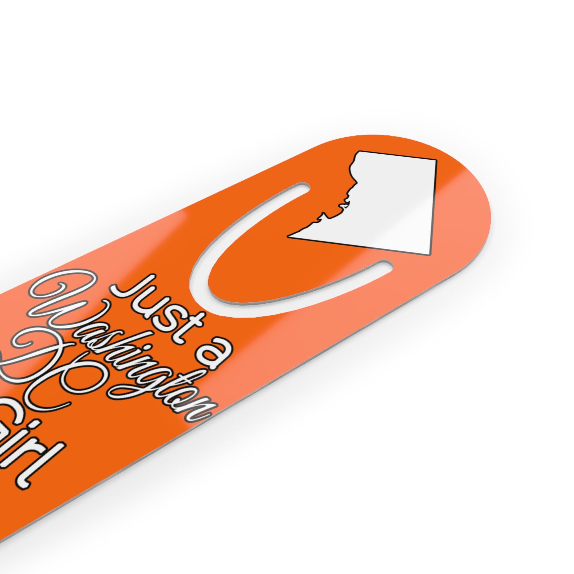 Show your pride in your home state with this bookmark showing Just a Washington DC Girl in an Alabama World.  Made with robust aluminum, features top slot that holds single pages in place.