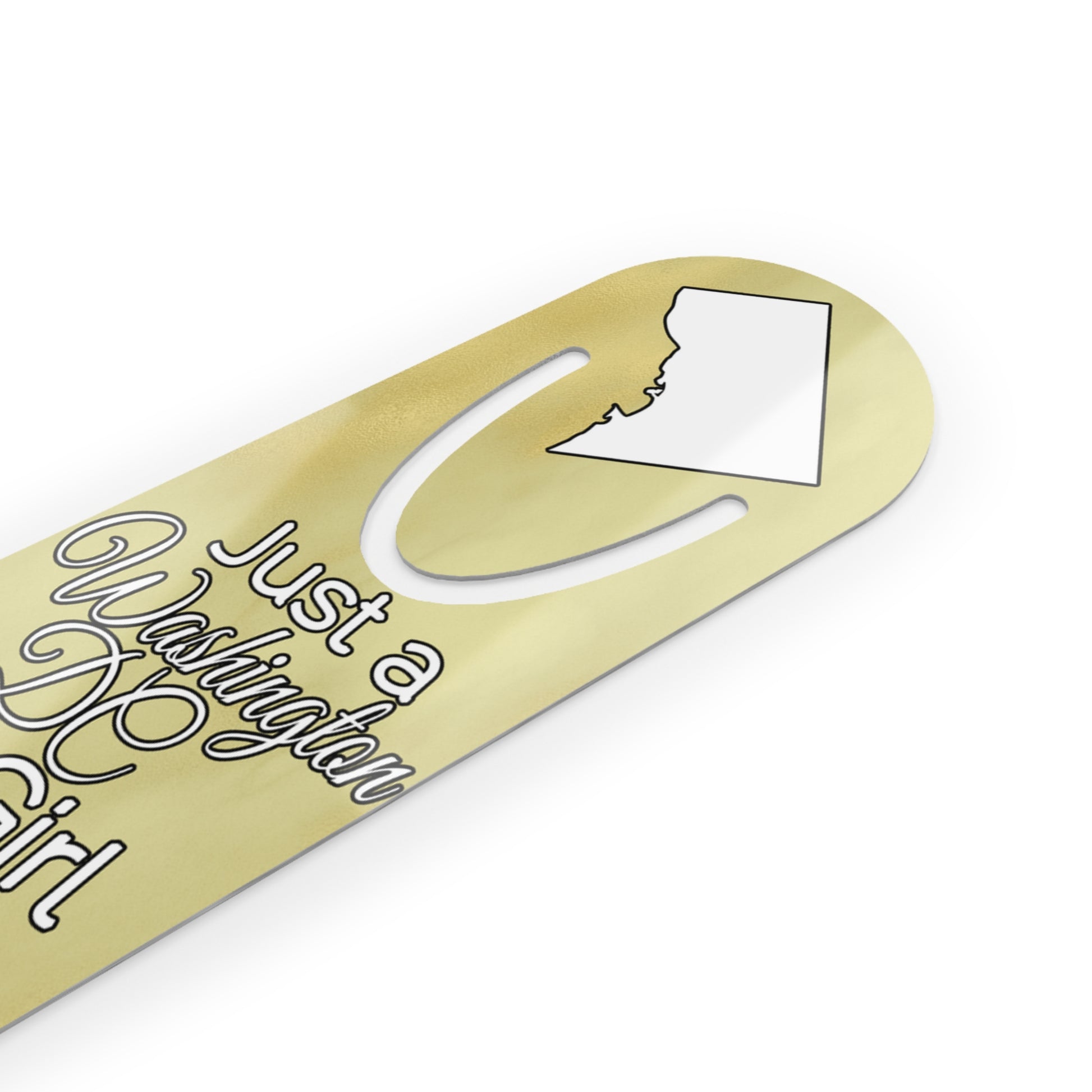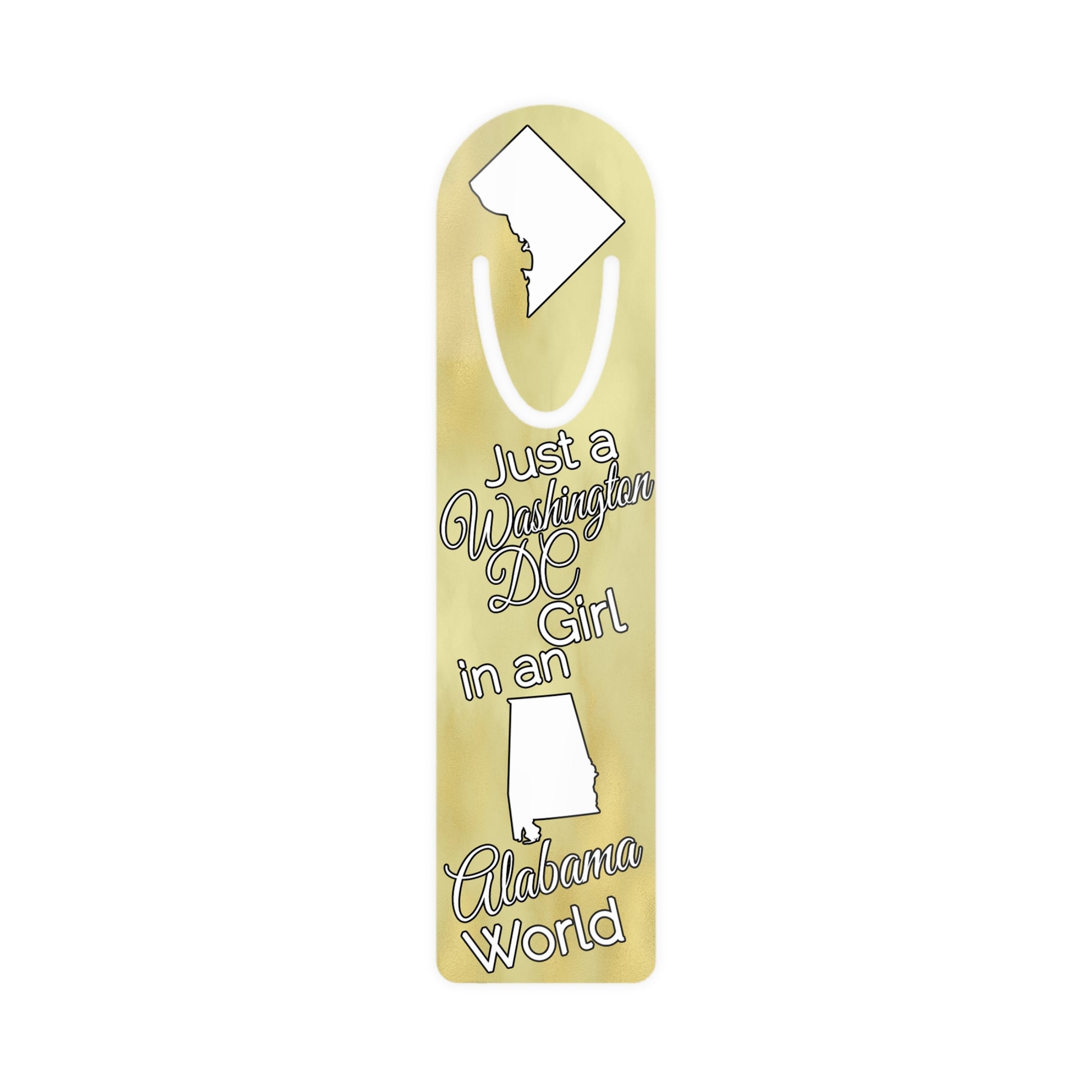 Show your pride in your home state with this bookmark showing Just a Washington DC Girl in an Alabama World. Made with robust aluminum, features top slot that holds single pages in place.