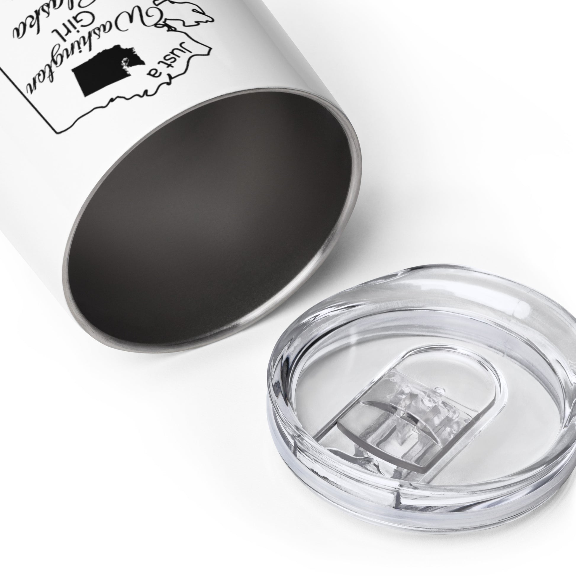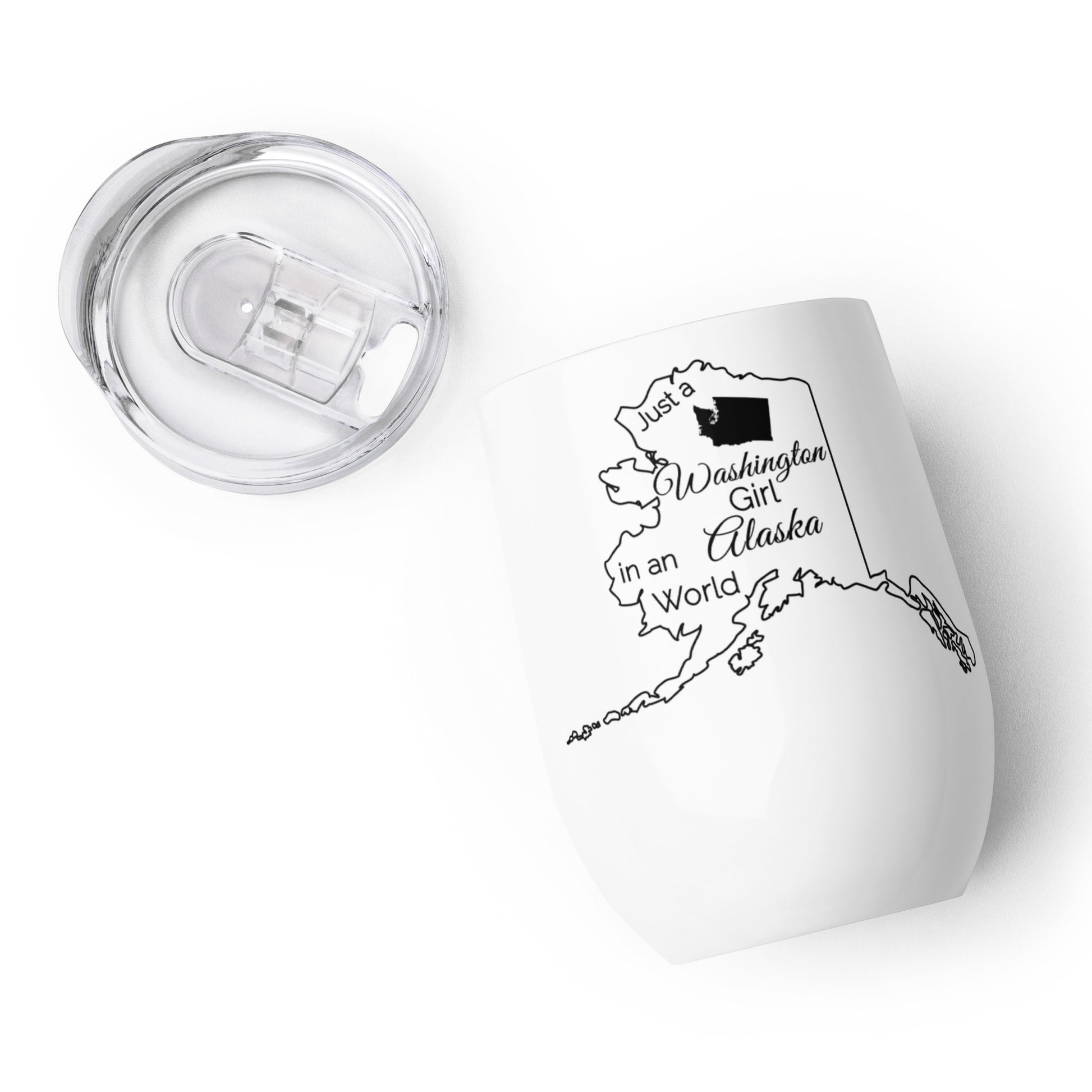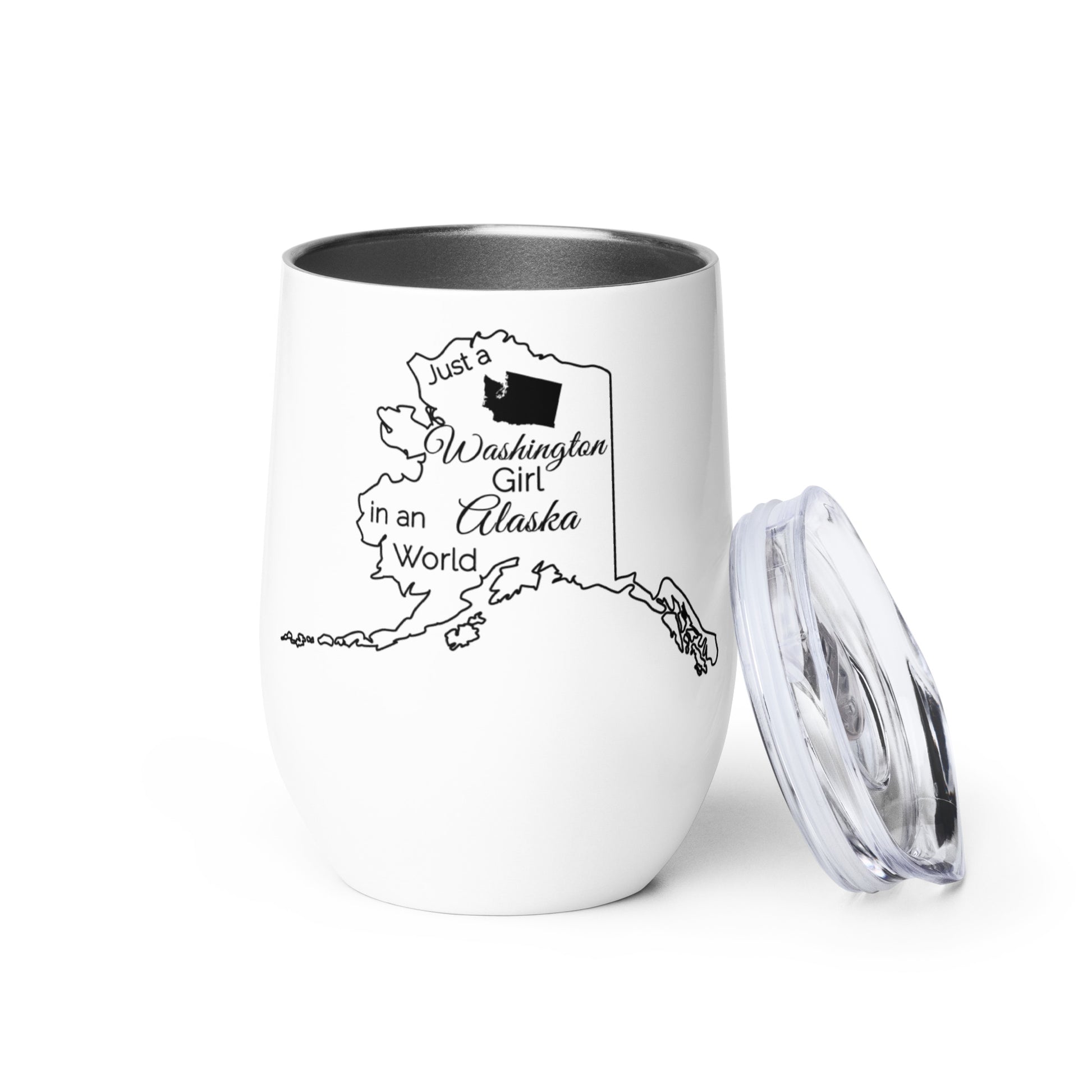 Show your pride in your home state with this wine tumbler showing Just a Washington Girl in an Alaska World. What’s an outdoor party without a wine tumbler to keep a drink fresh and at just the right temperature? Forget breakable glasses—give this uniquely shaped wine tumbler a chance and have fun with friends without worry.