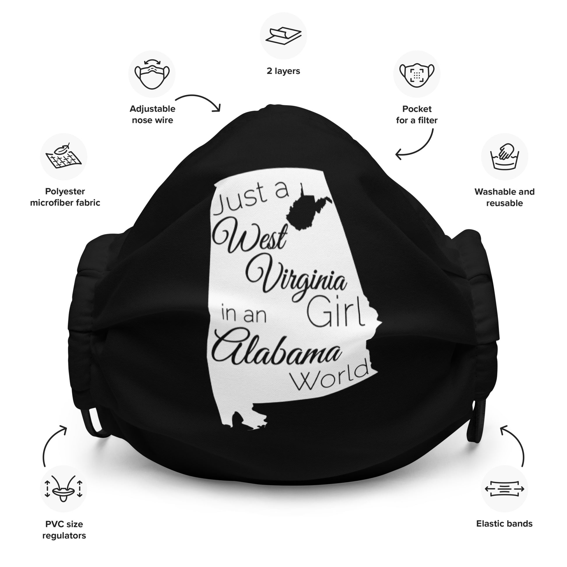 Just a West Virginia Girl in an Alabama World Premium face mask