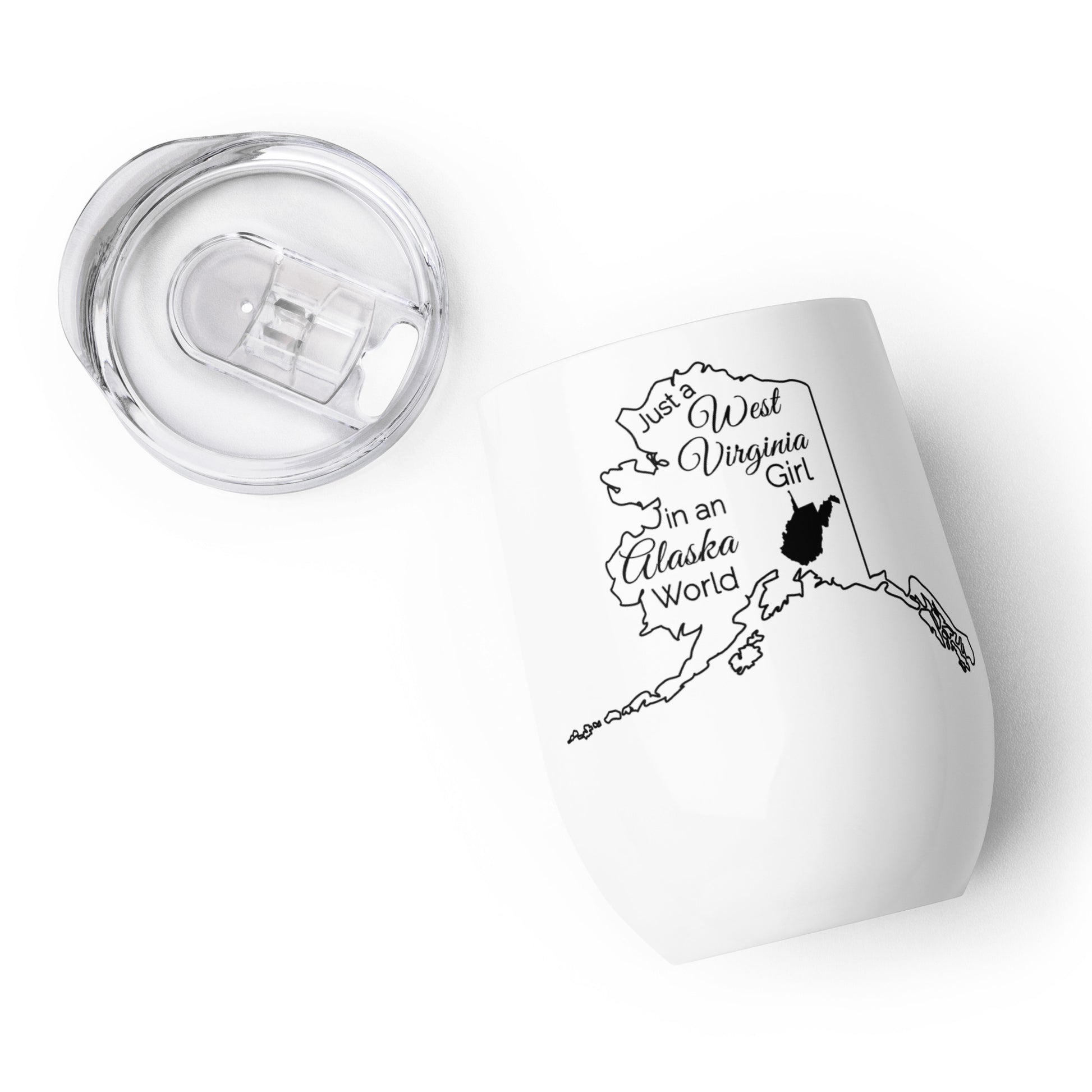 Just a West Virginia Girl in an Alaska World Wine tumbler