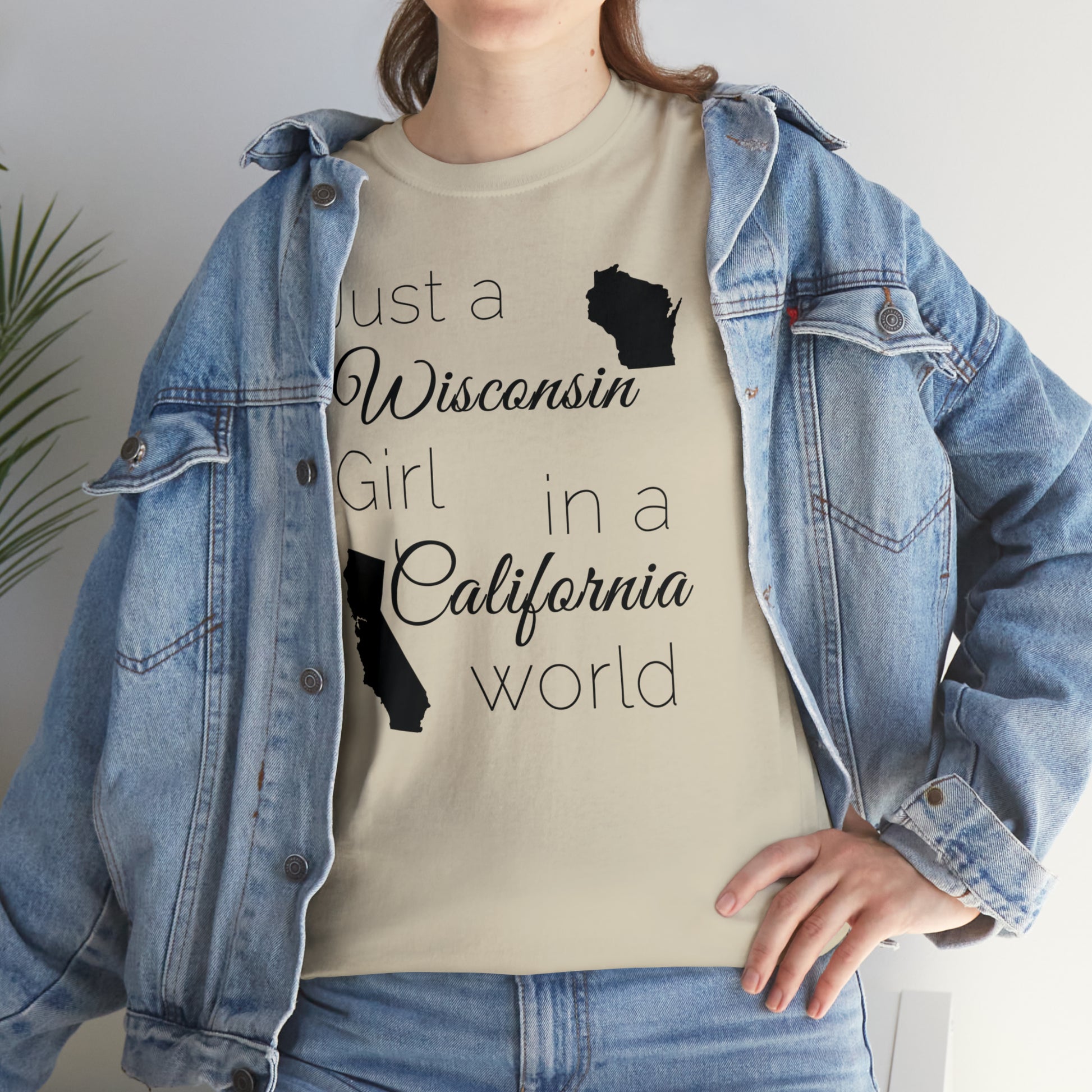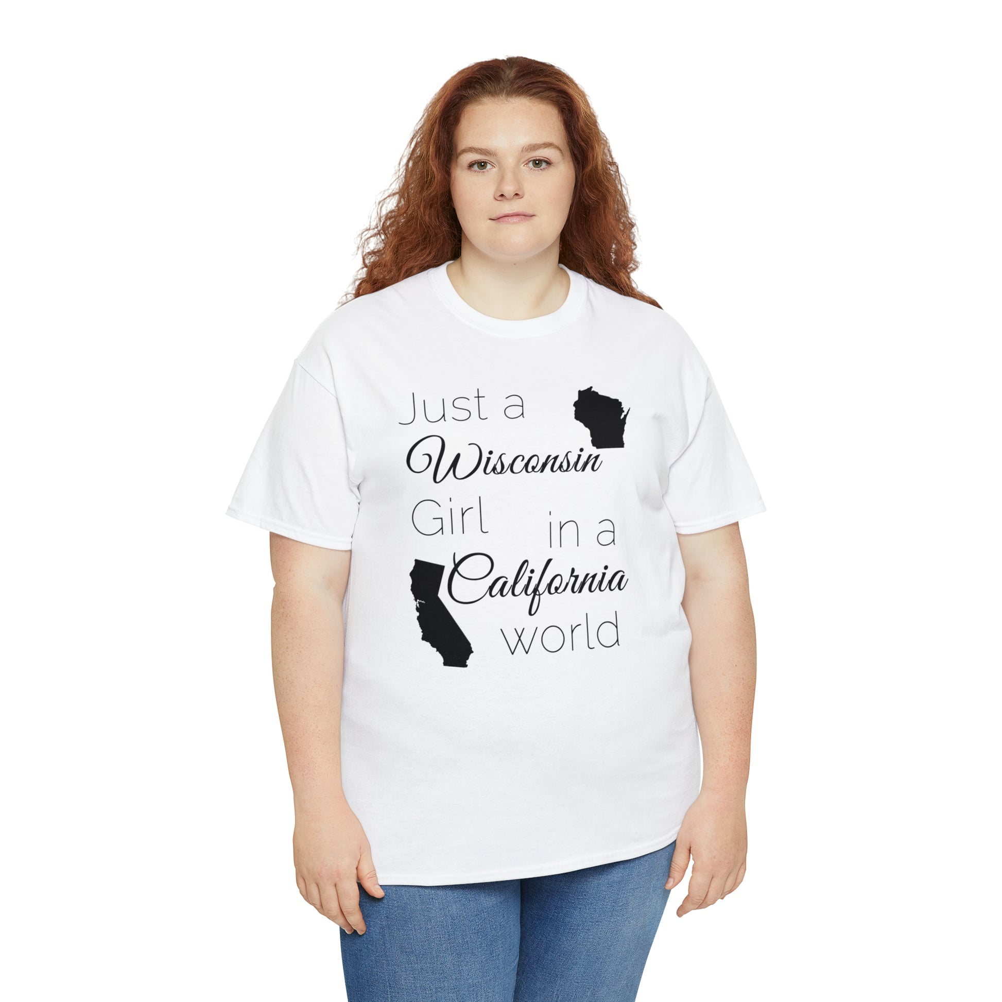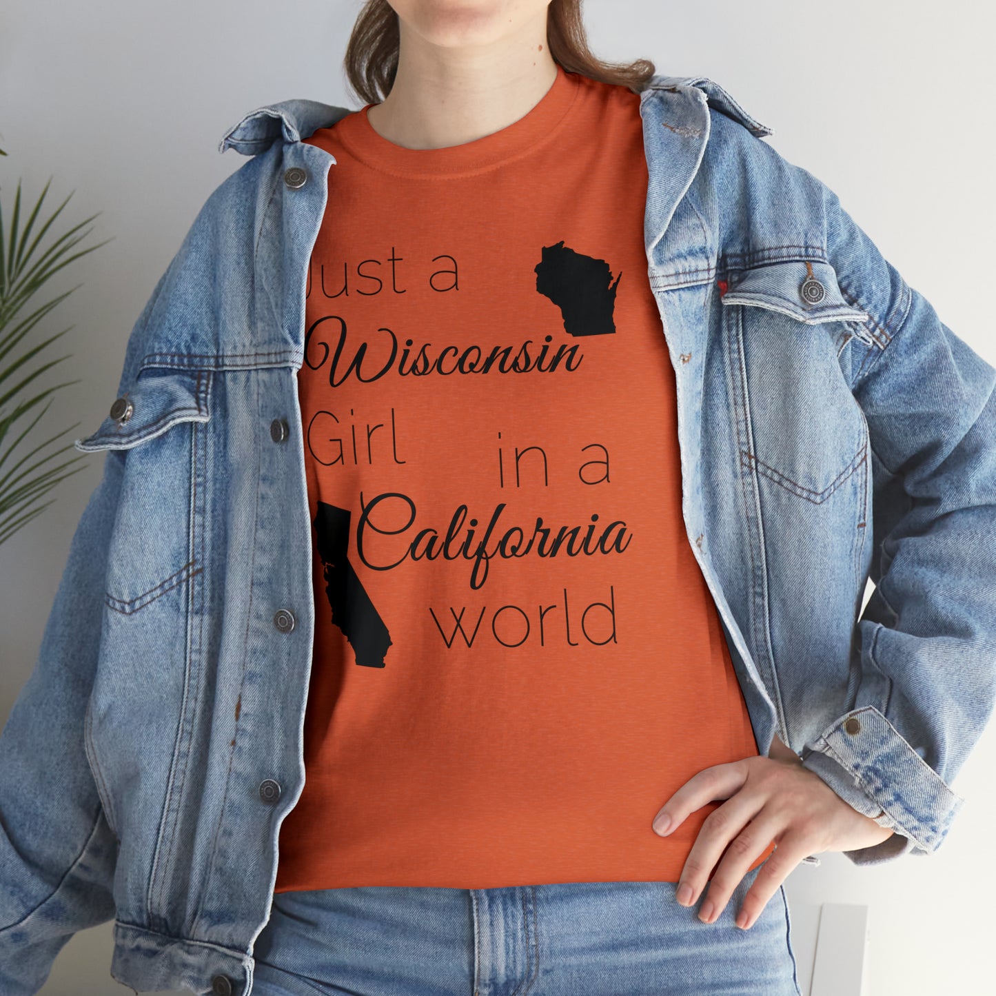 Just a Wisconsin Girl in a California World Unisex Heavy Cotton Tee