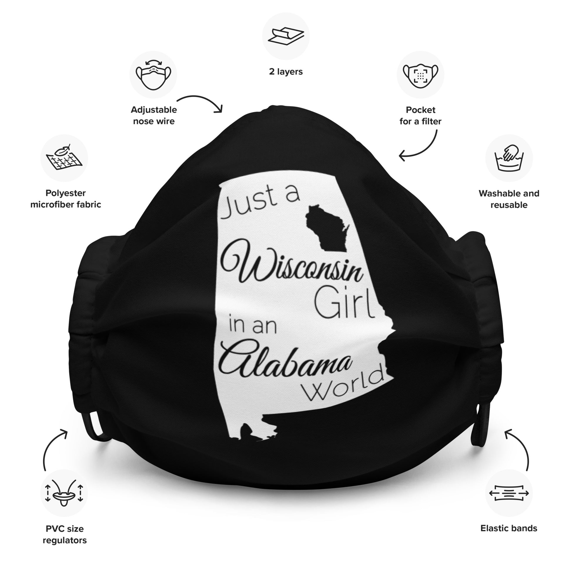 Just a Wisconsin Girl in an Alabama World Premium face mask
