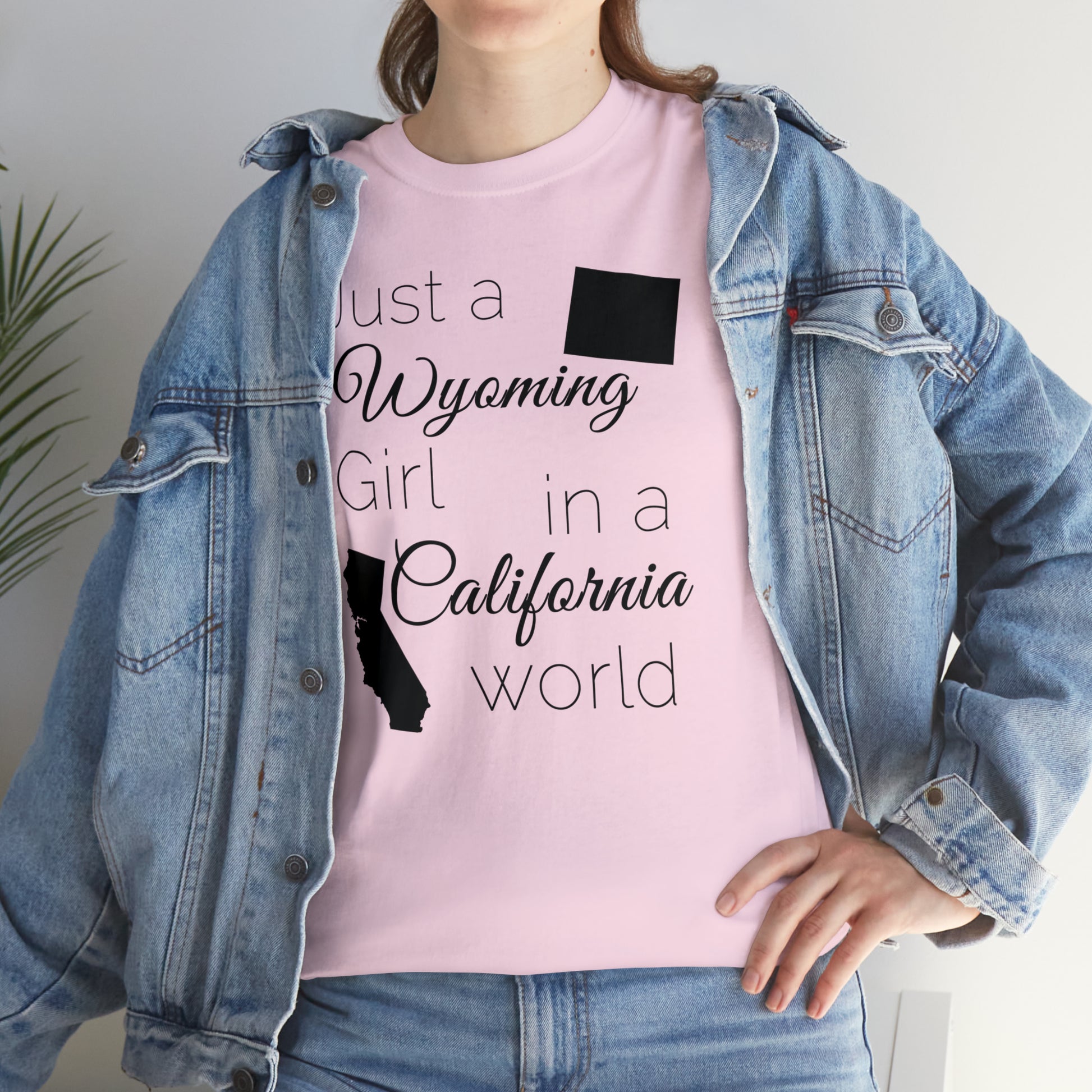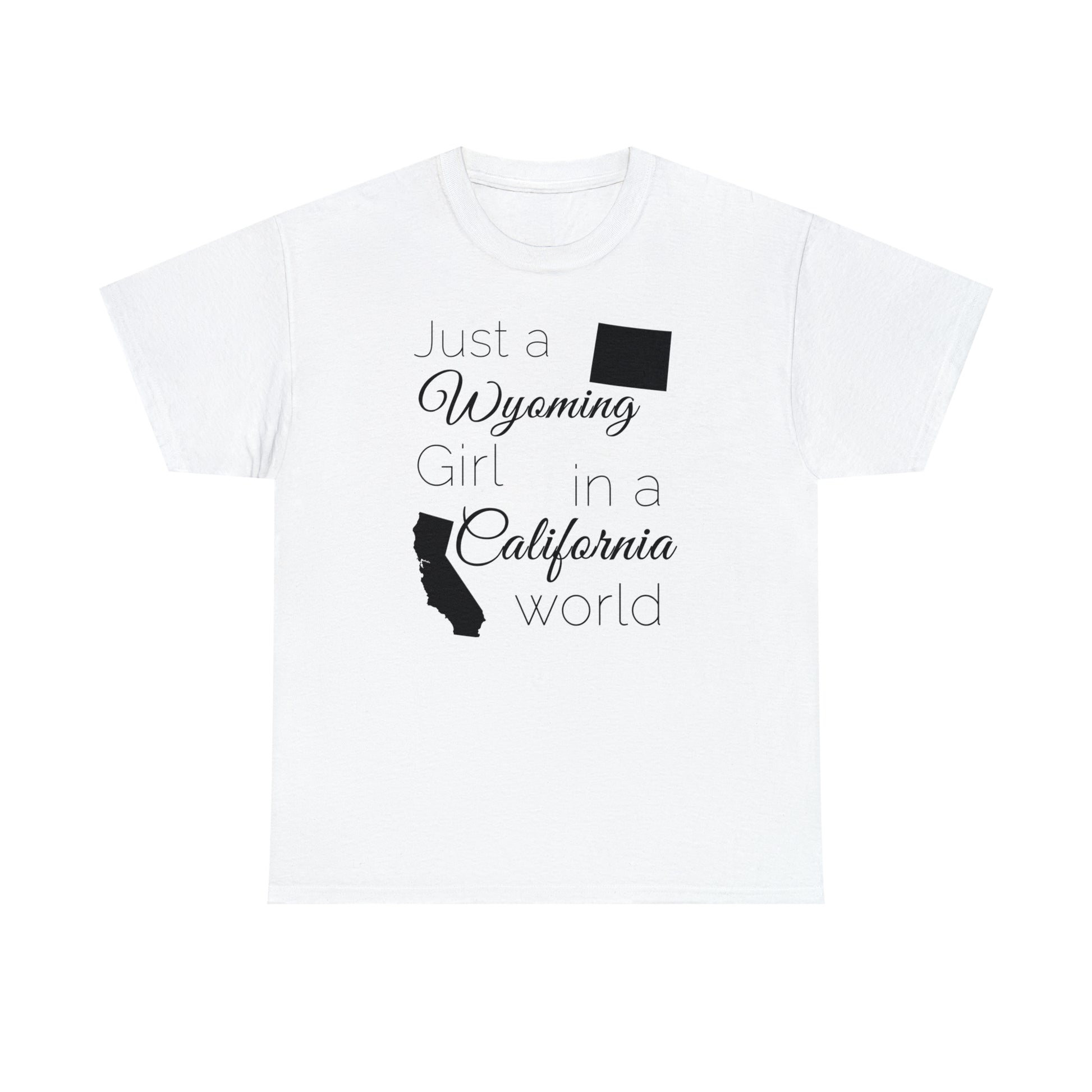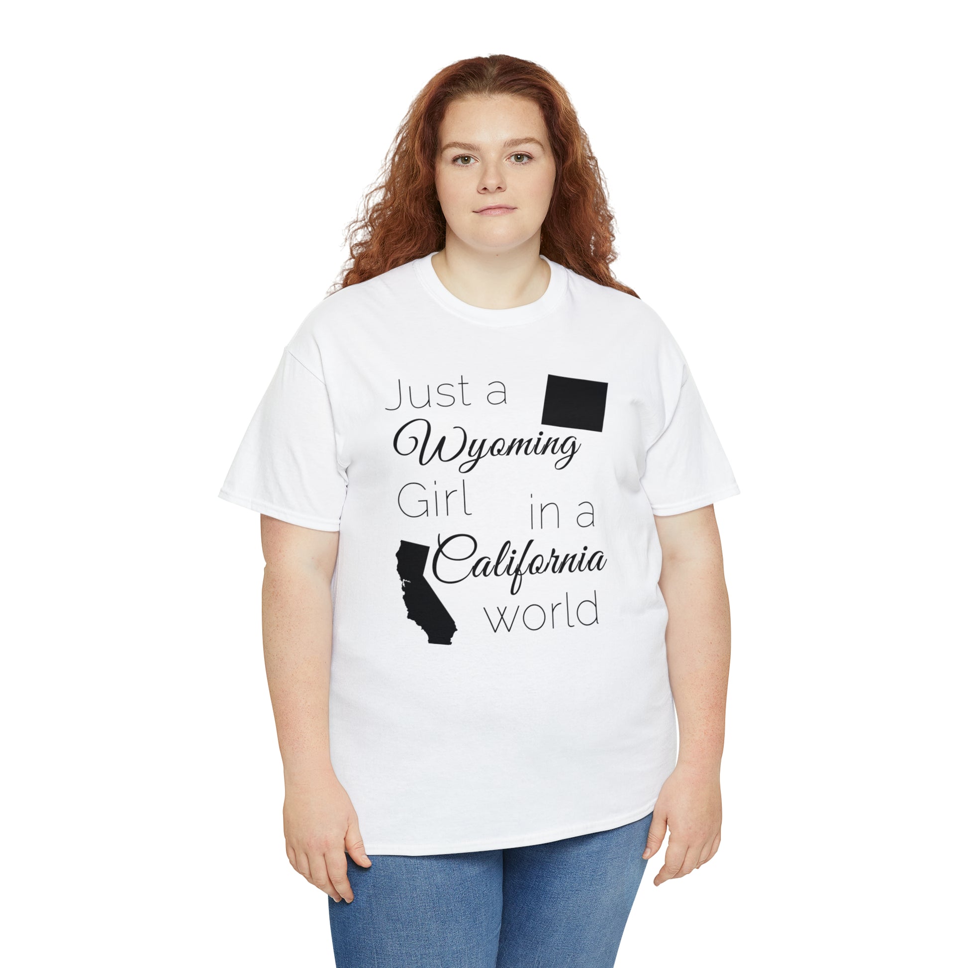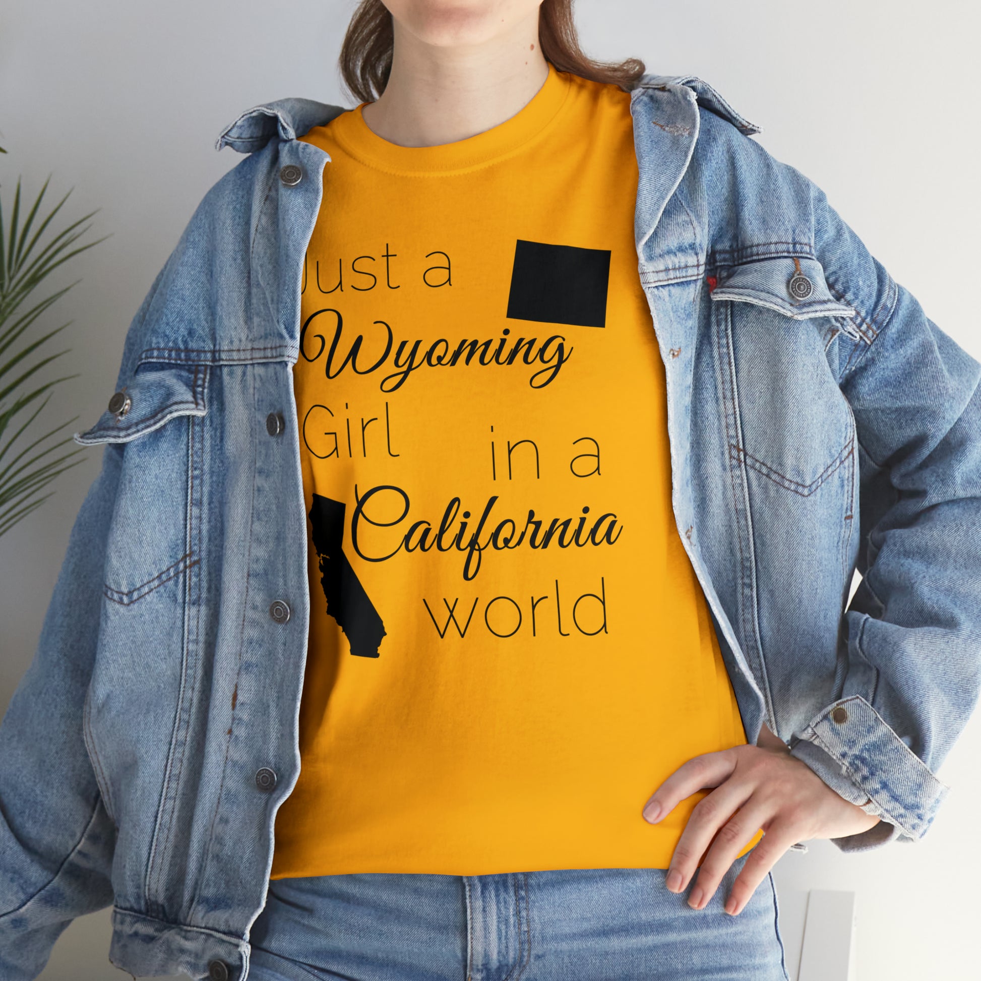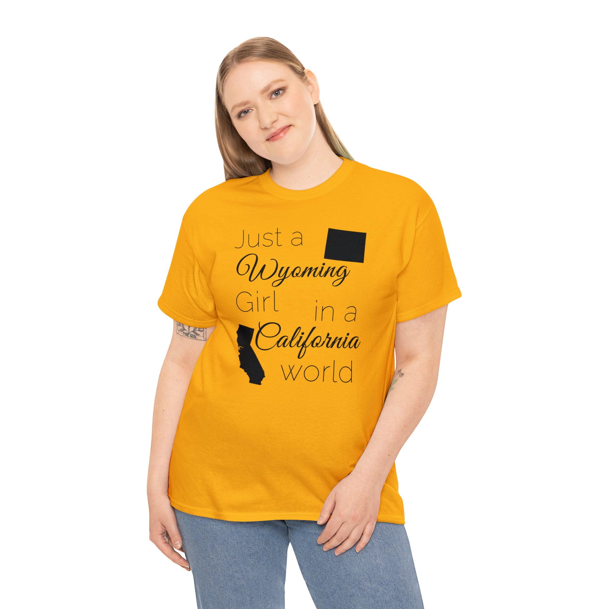 Just a Wyoming Girl in a California World Unisex Heavy Cotton Tee