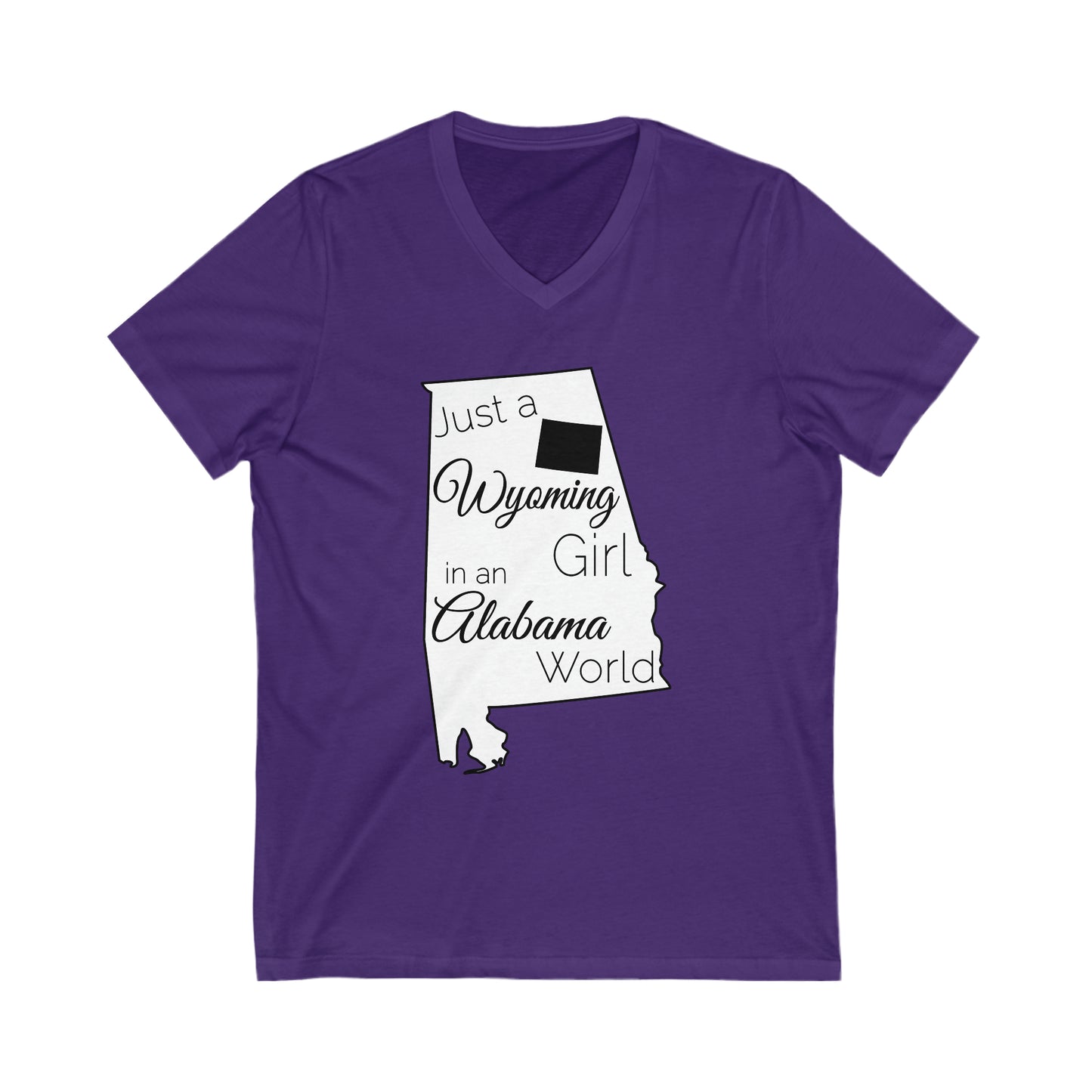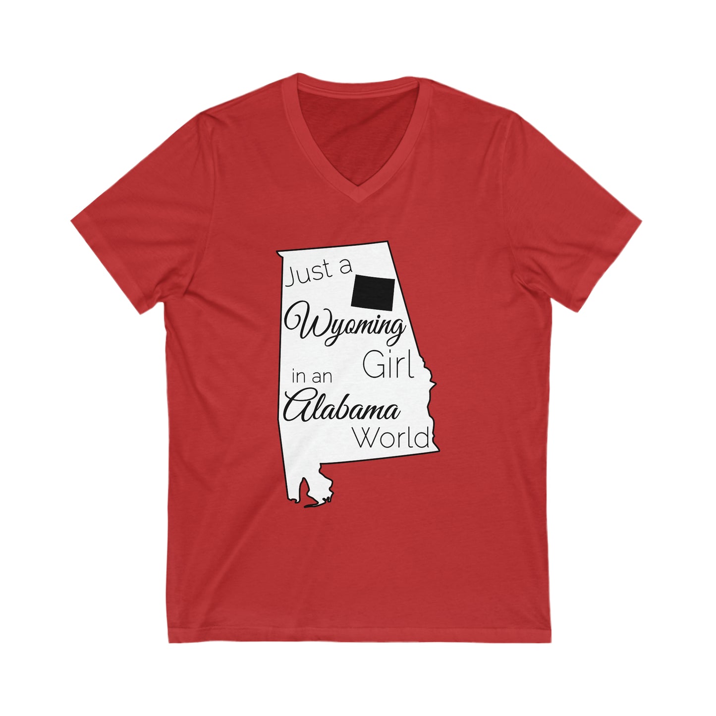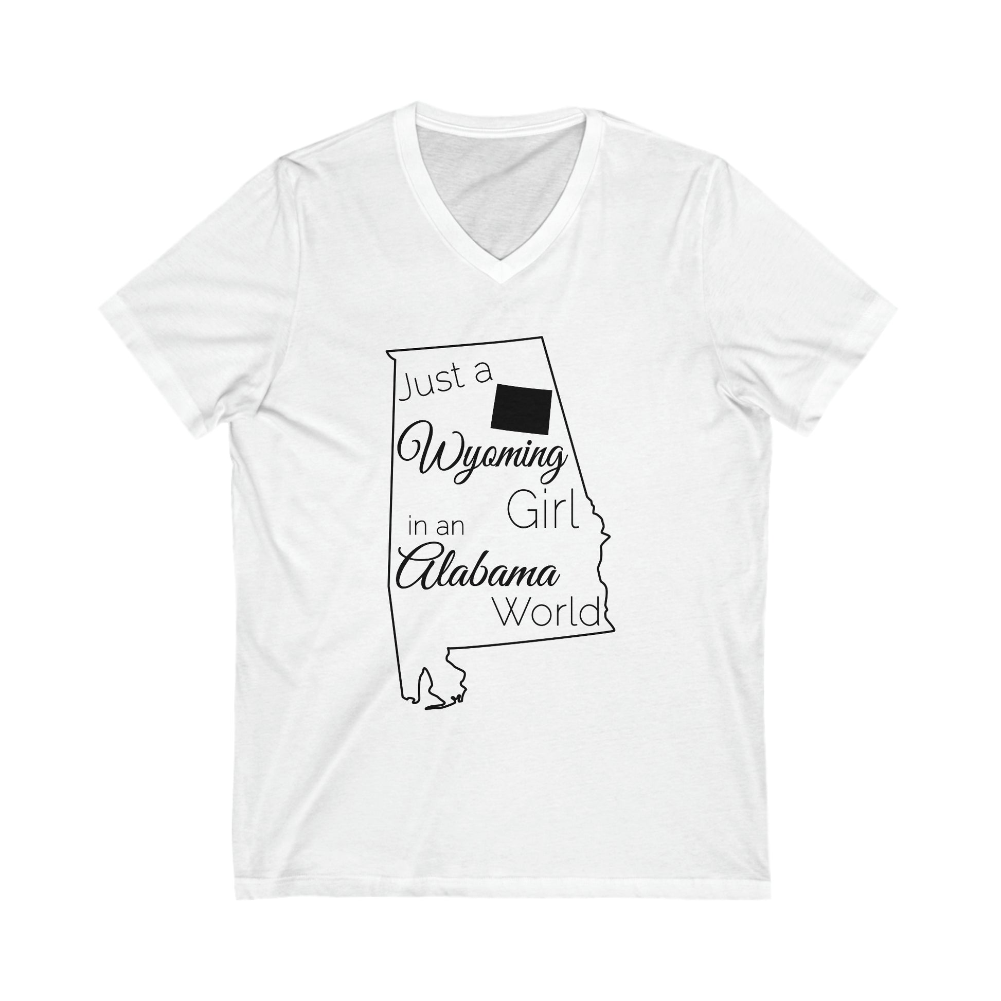 Just a Wyoming Girl in an Alabama World Unisex Jersey Short Sleeve V-Neck Tee