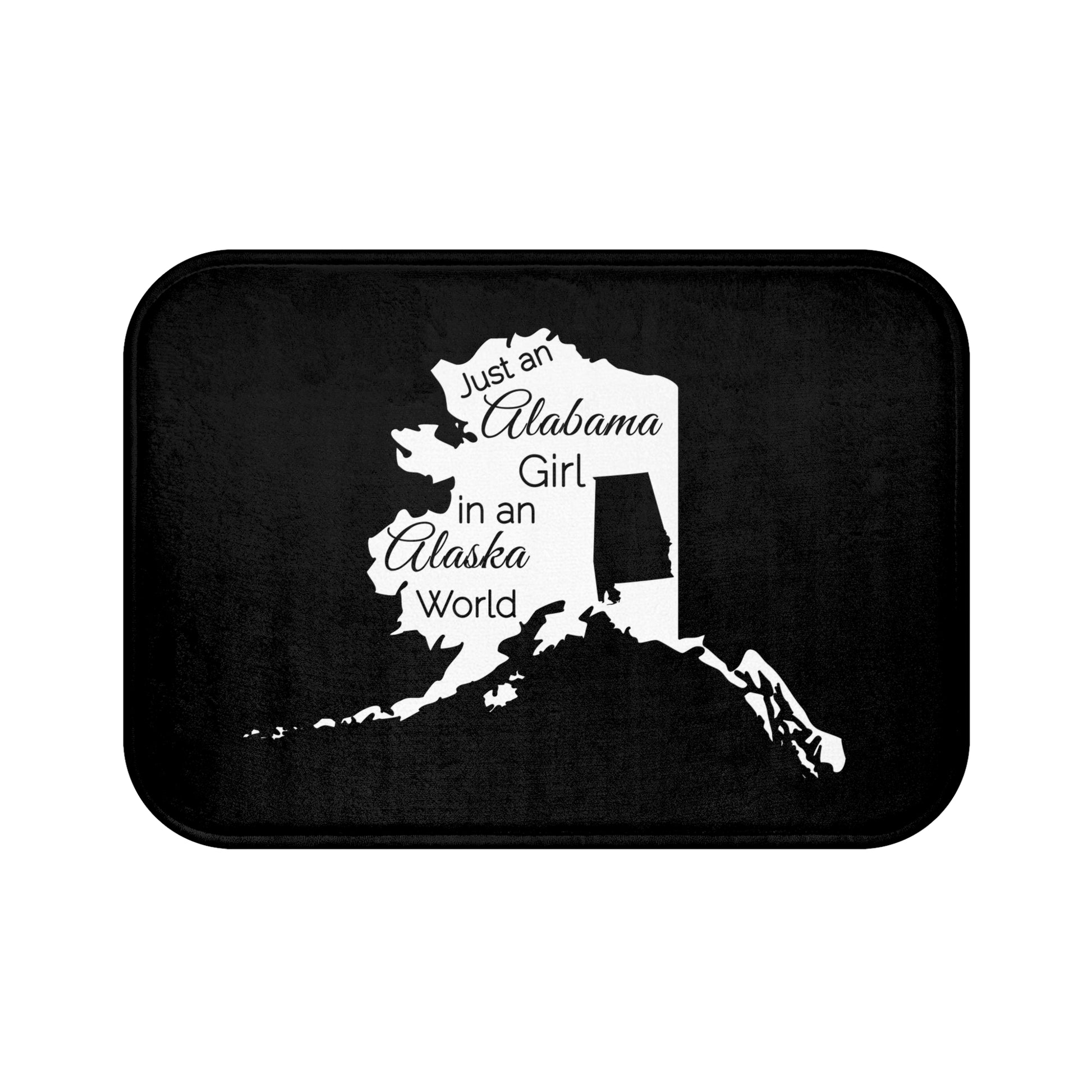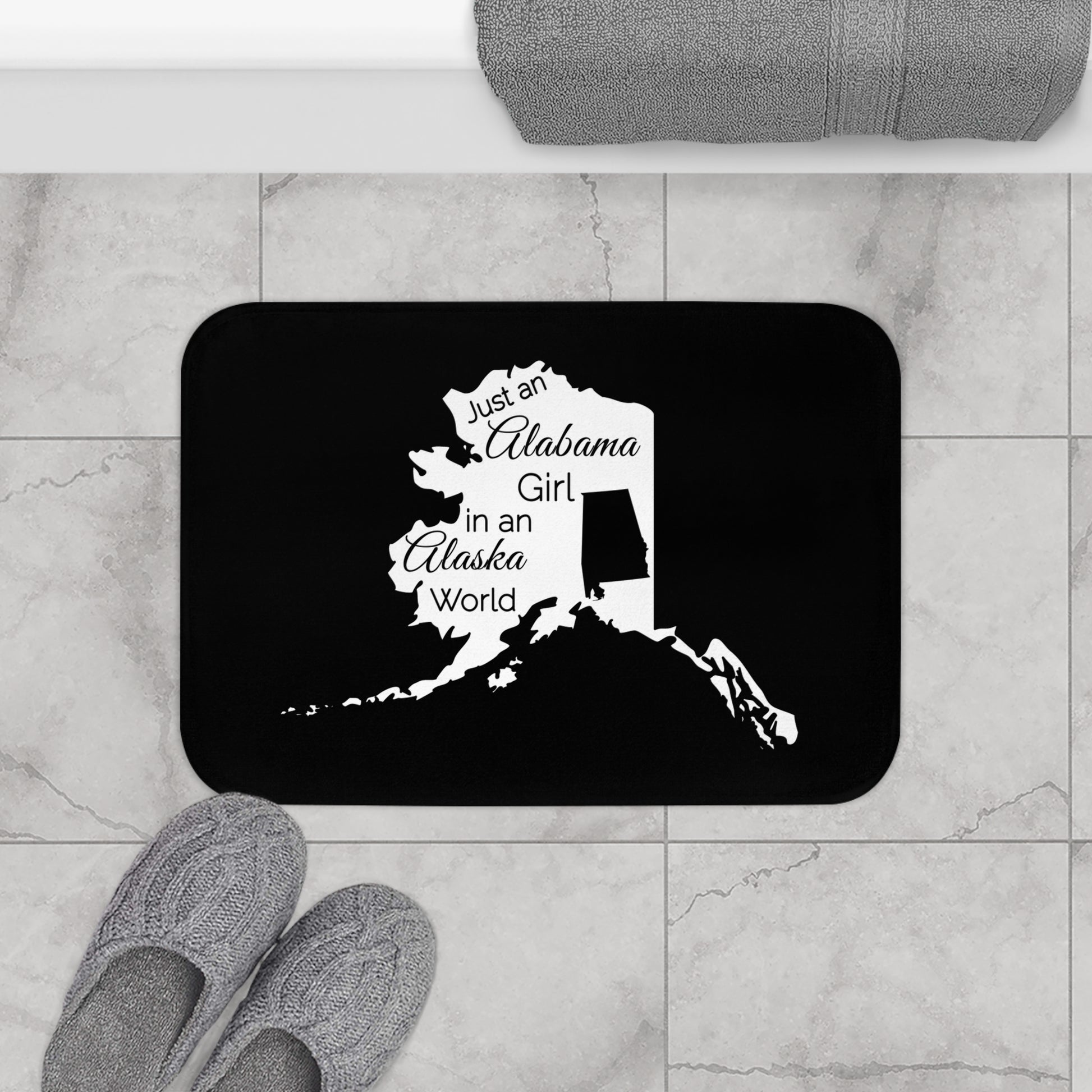 Show your pride in your home state with this bath mat showing Just an Alabama Girl in an Alaska World. This bath mat is as practical as it is stylish - the anti-slip backing keeps the bath mat firmly in place and reduces the risk of slipping.