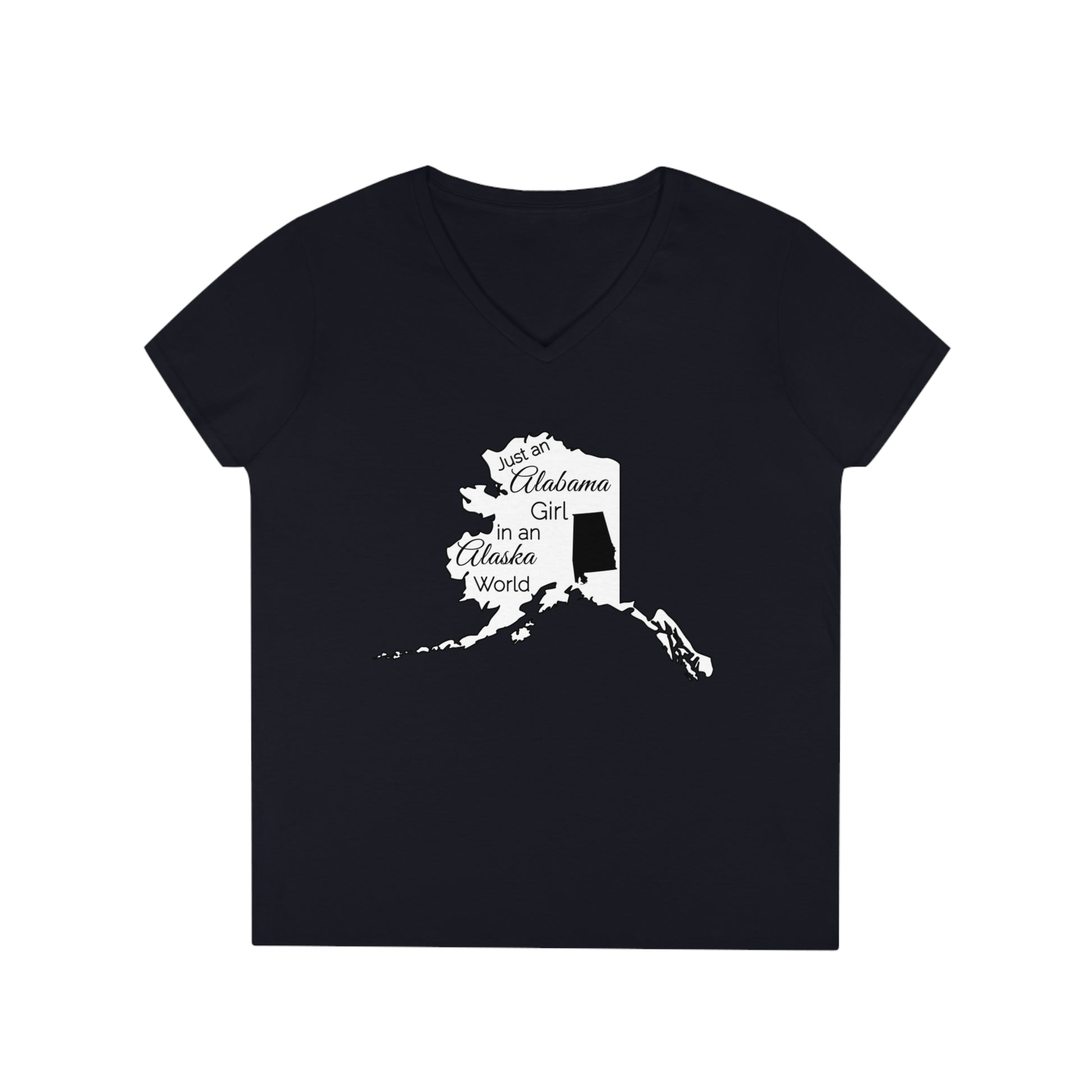 Just an Alabama Girl in an Alaska World Ladies' V-Neck T-Shirt