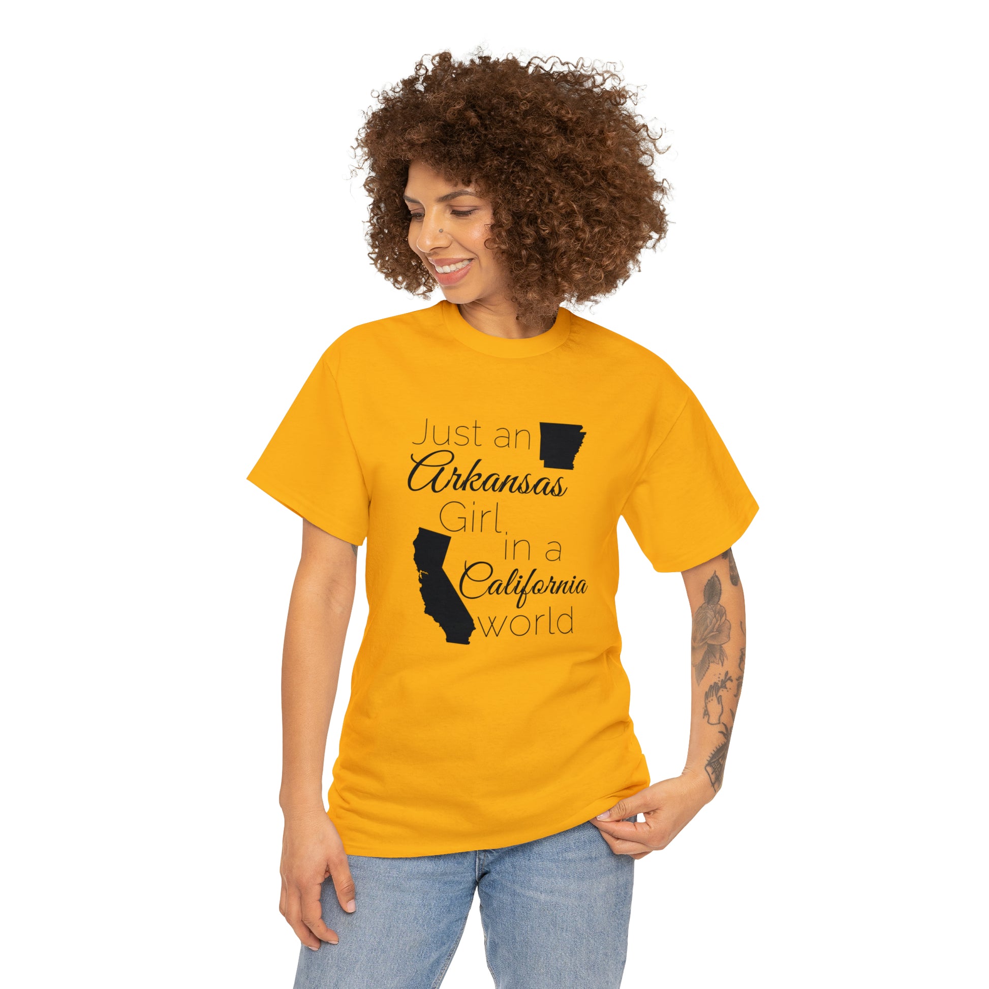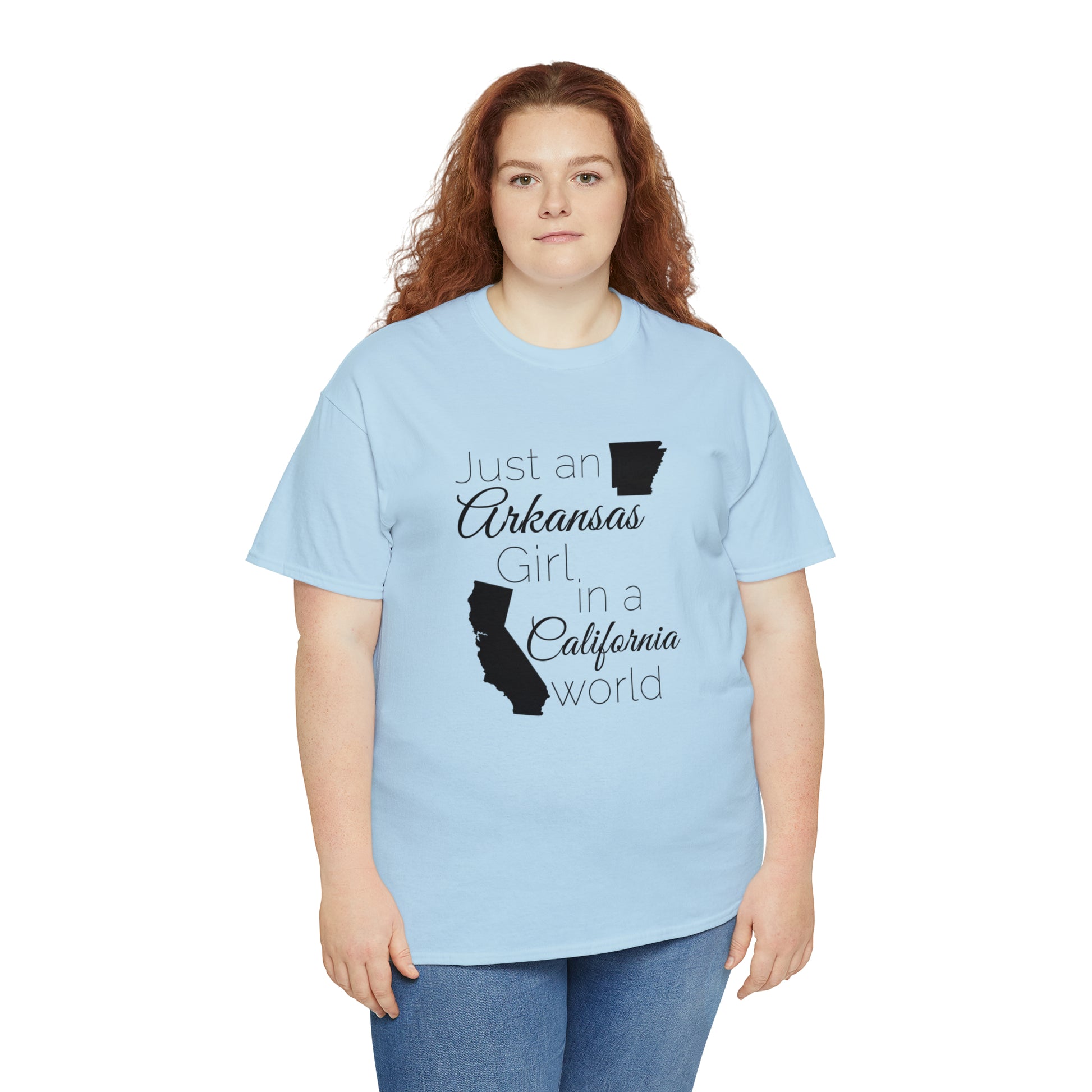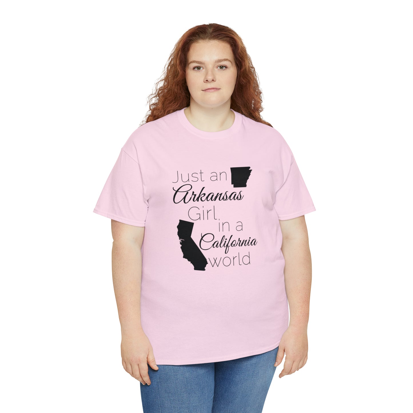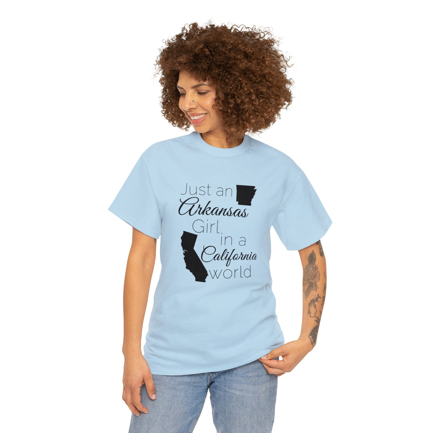 Just an Arkansas Girl in a California World Unisex Heavy Cotton Tee