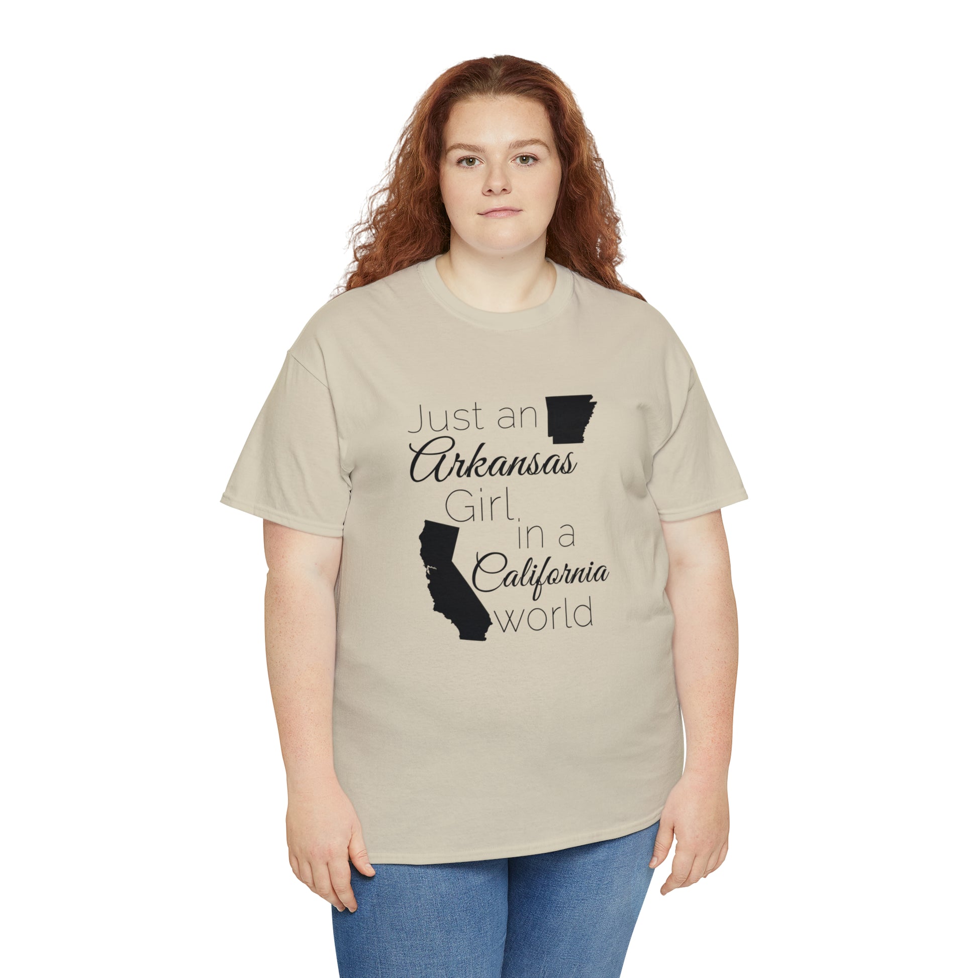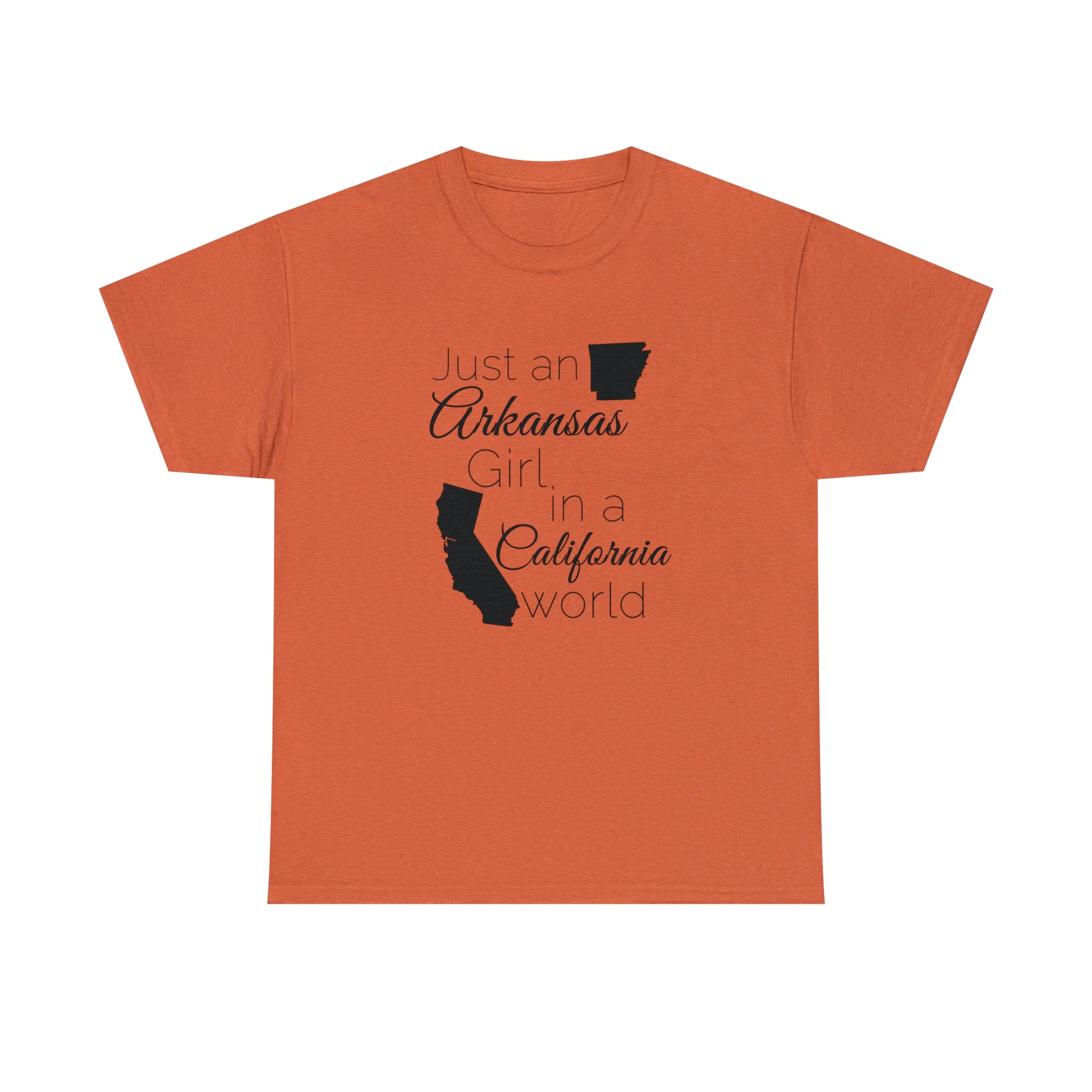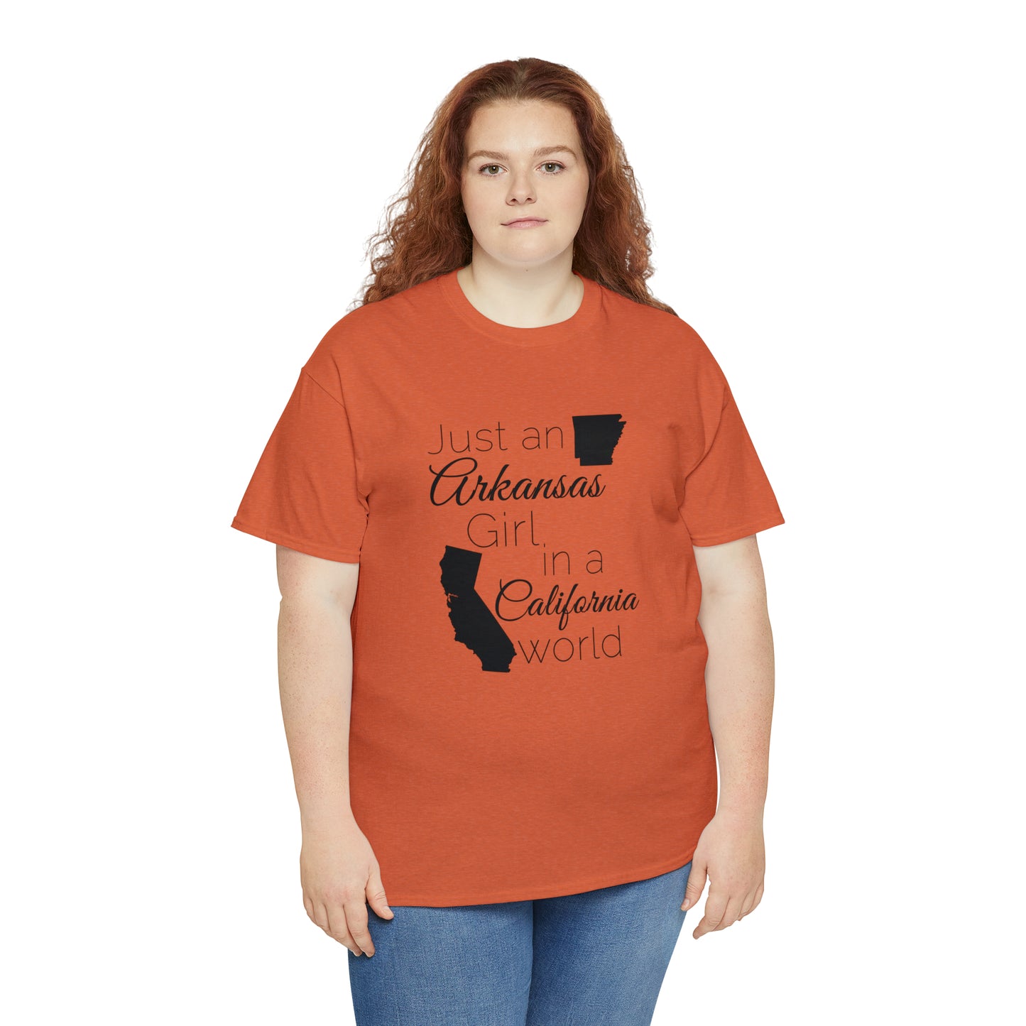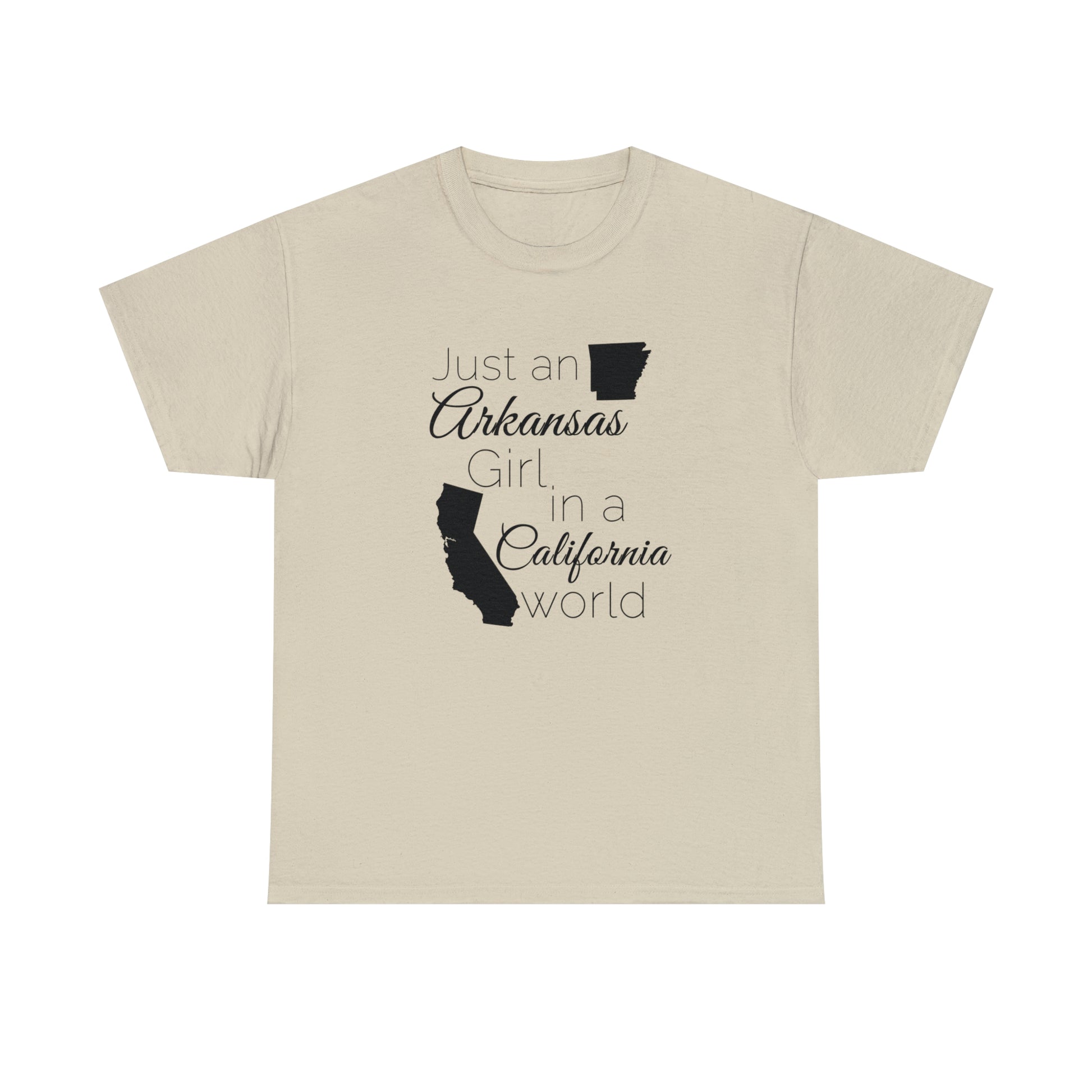 Just an Arkansas Girl in a California World Unisex Heavy Cotton Tee