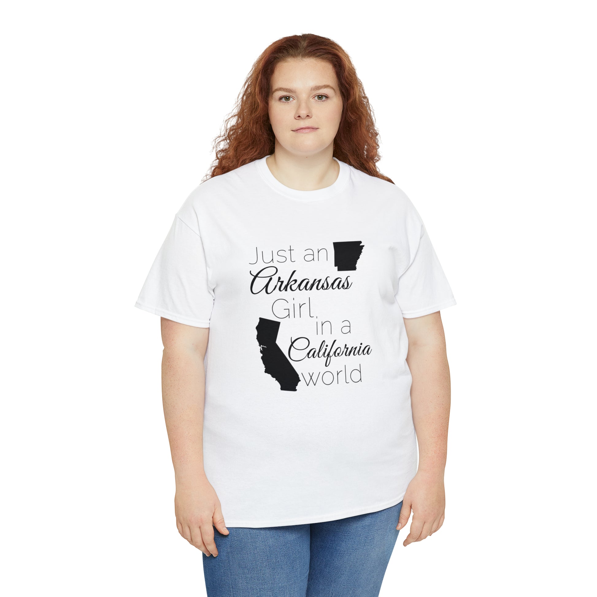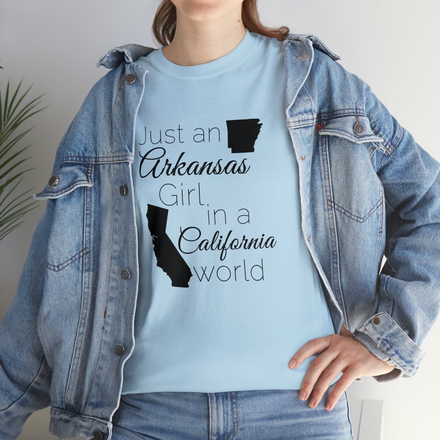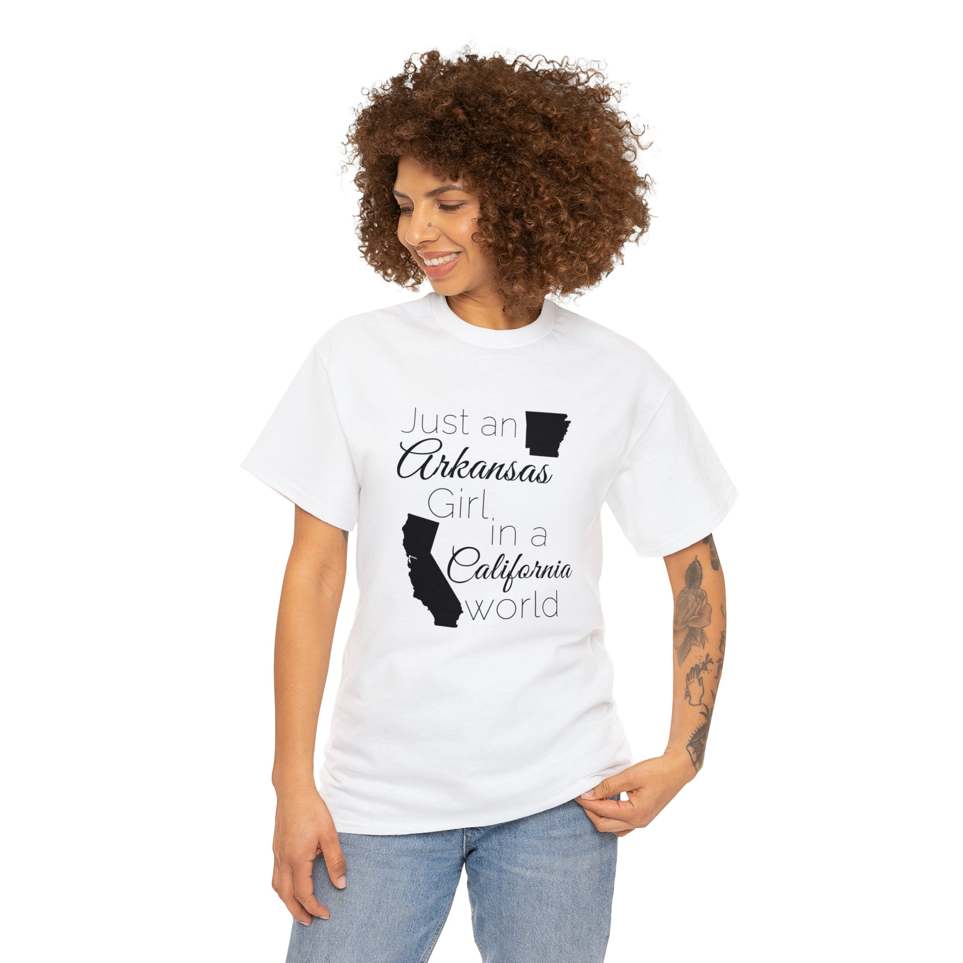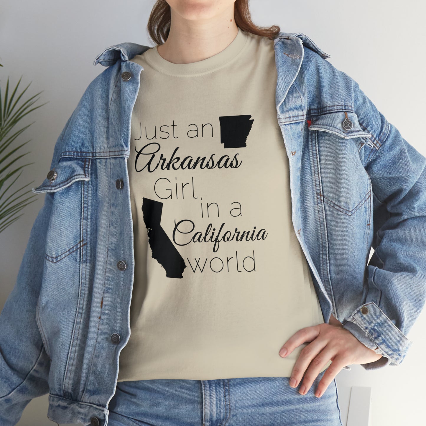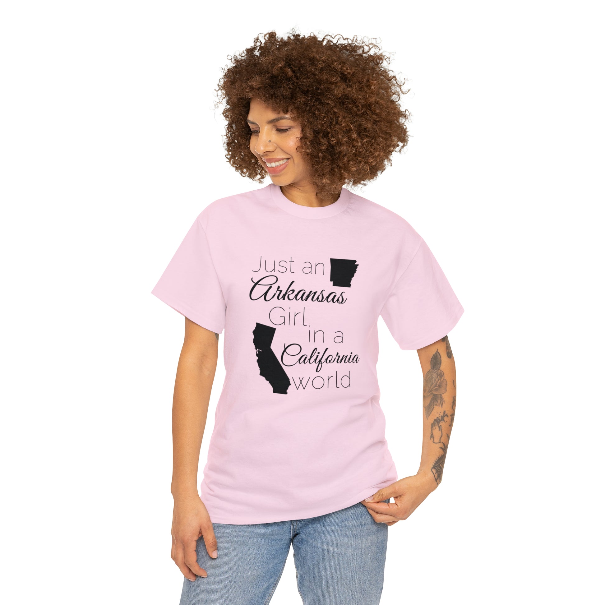 Just an Arkansas Girl in a California World Unisex Heavy Cotton Tee