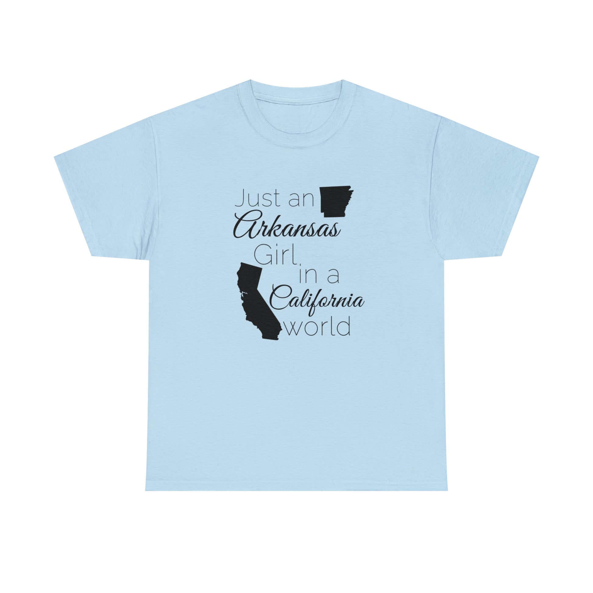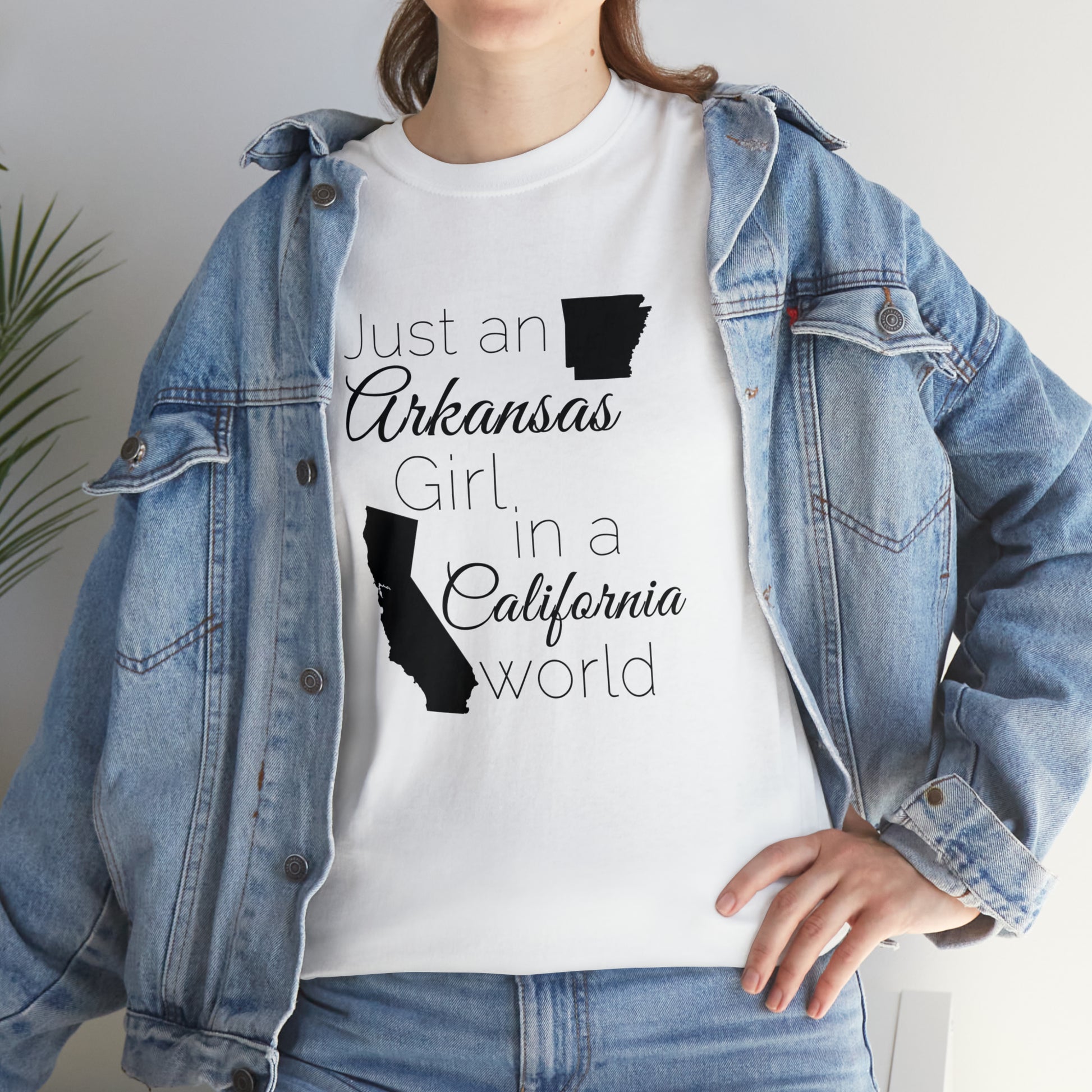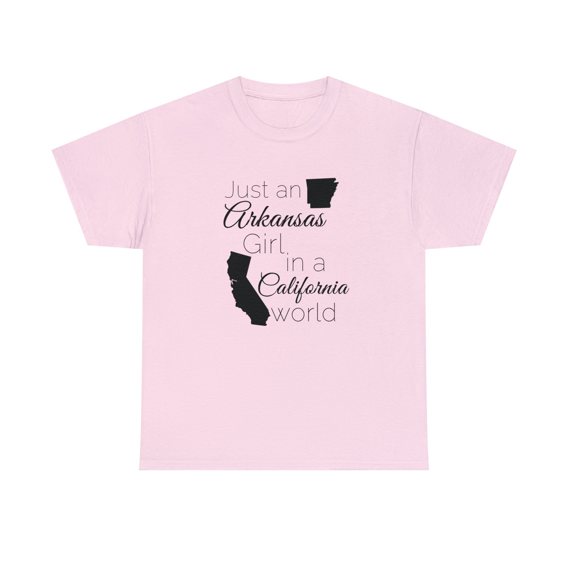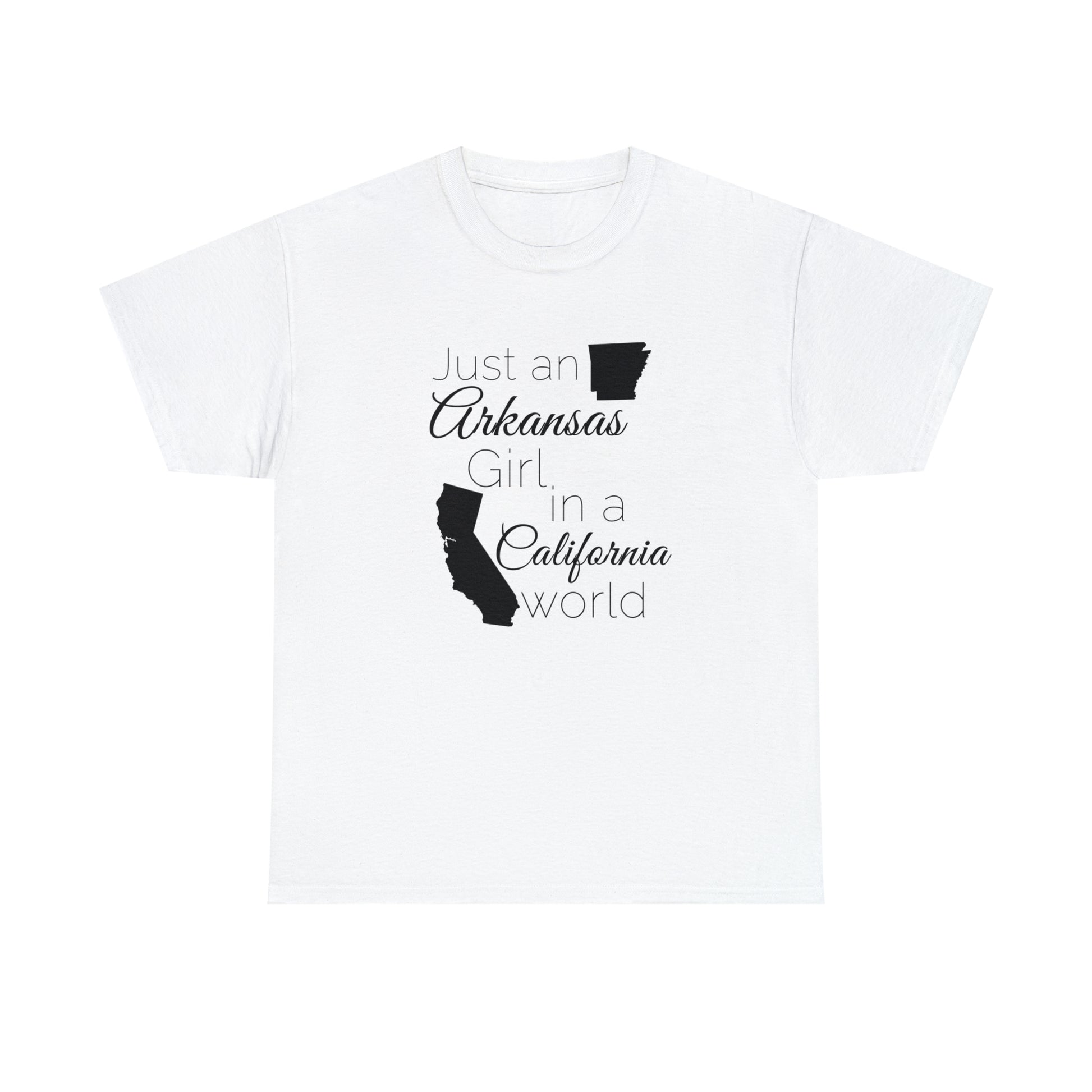 Just an Arkansas Girl in a California World Unisex Heavy Cotton Tee