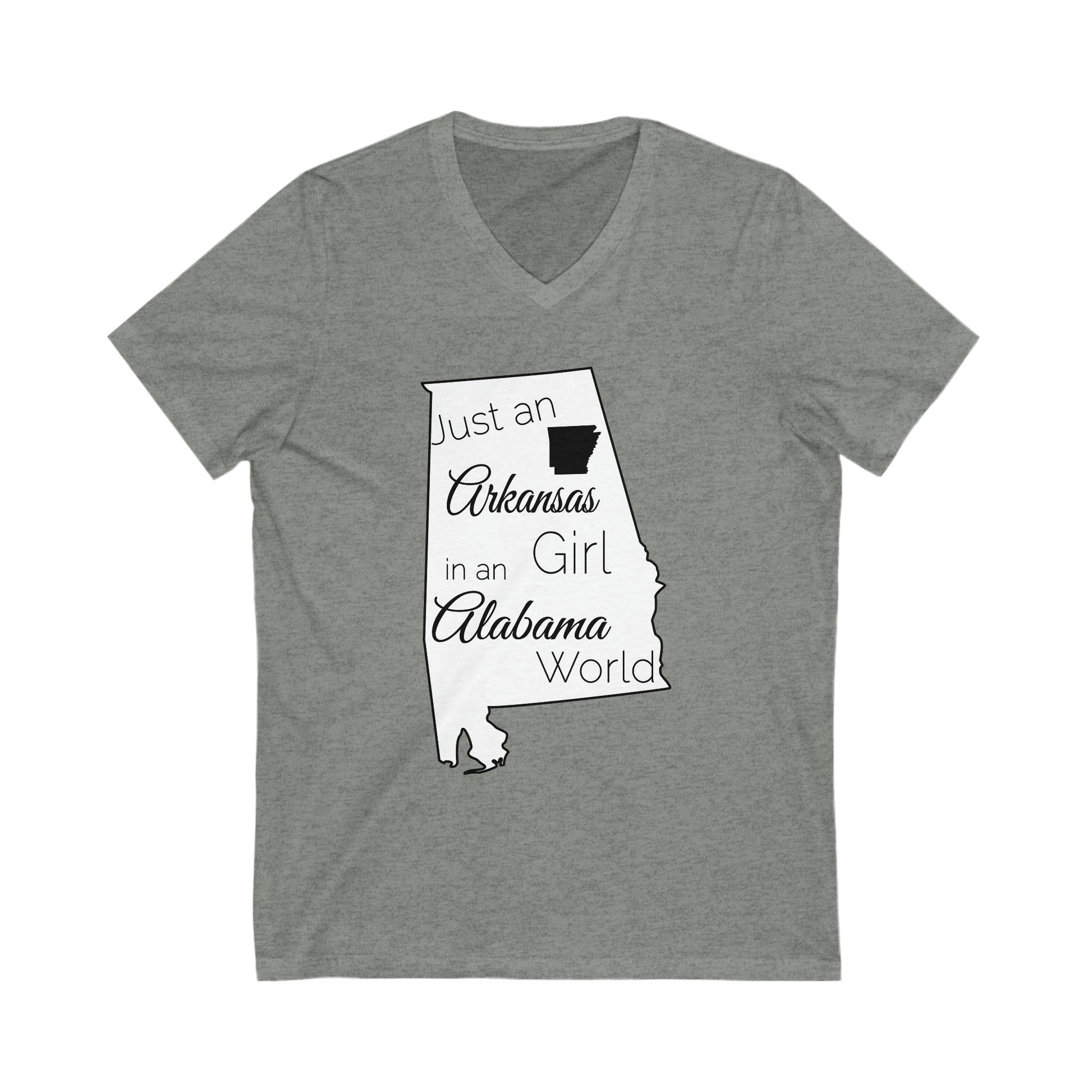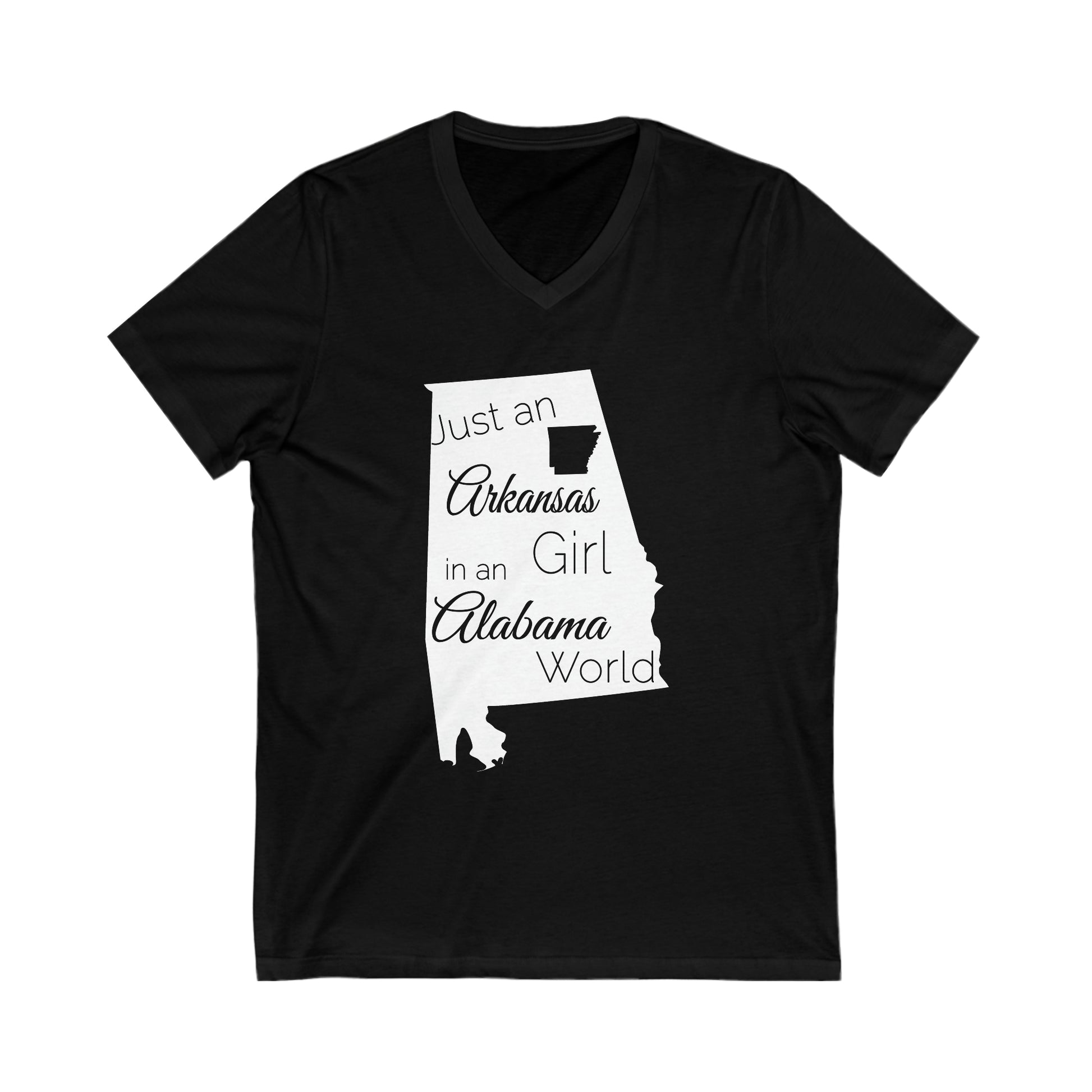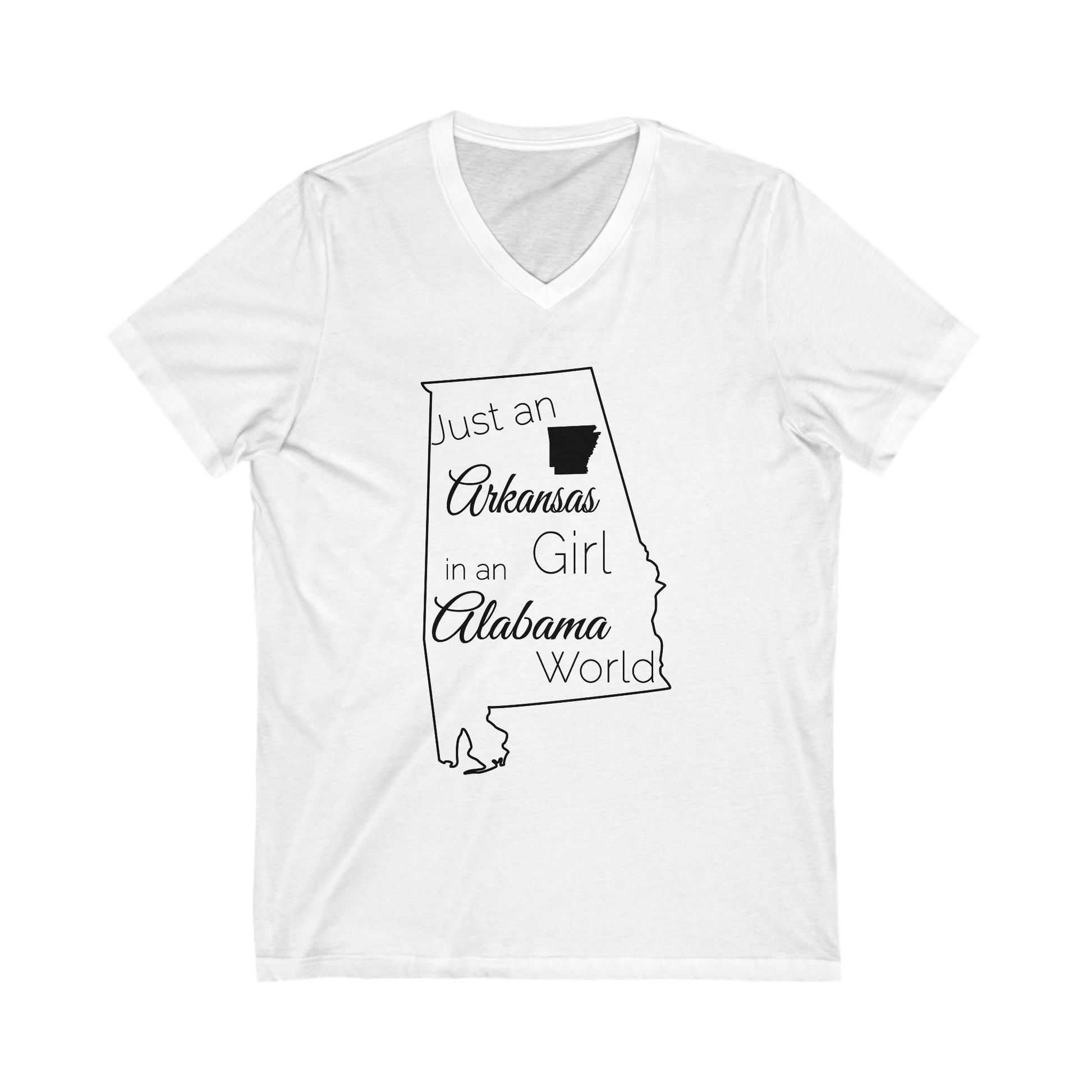 Just an Arkansas Girl in an Alabama World Unisex Jersey Short Sleeve V-Neck Tee
