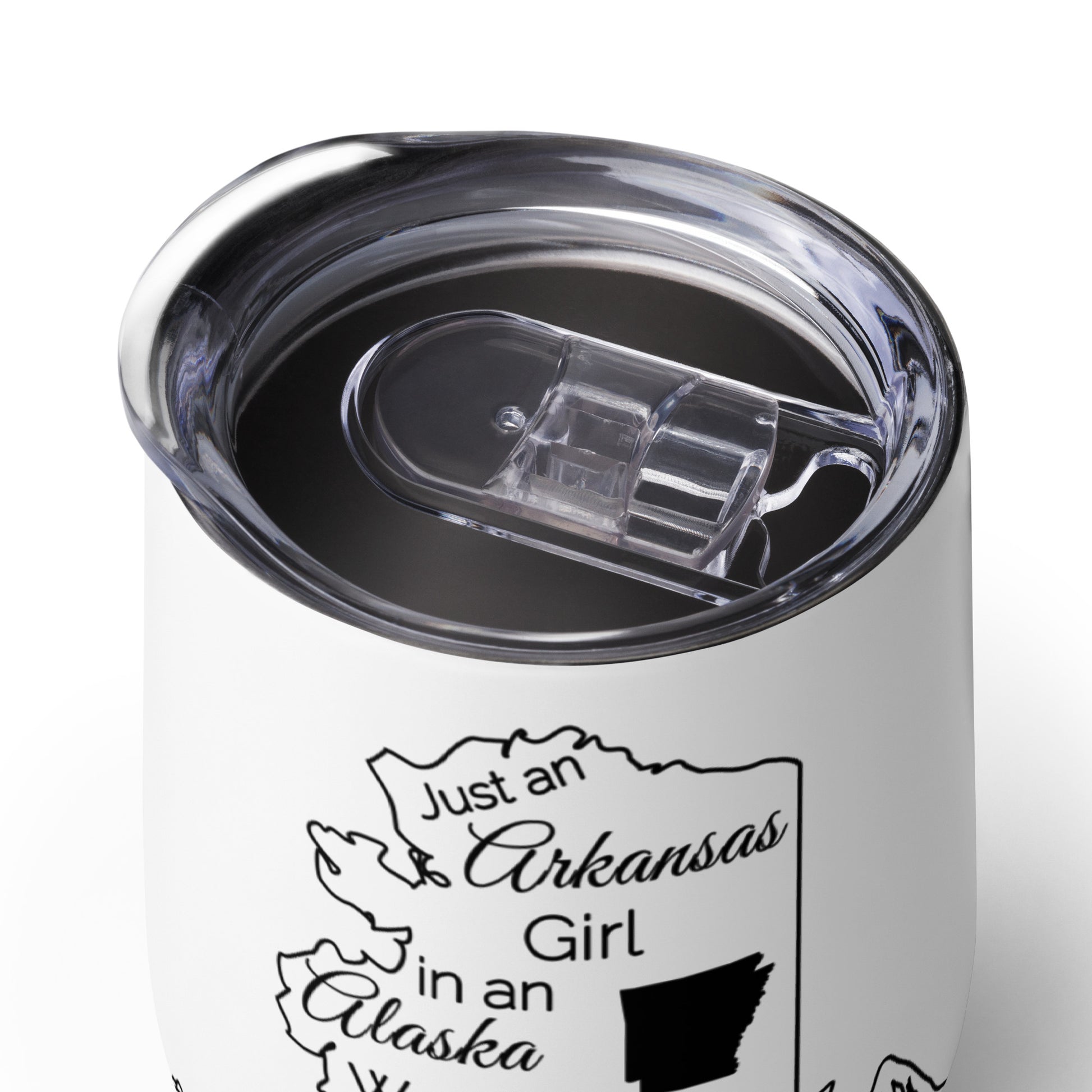 Just an Arkansas Girl in an Alaska World Wine tumbler