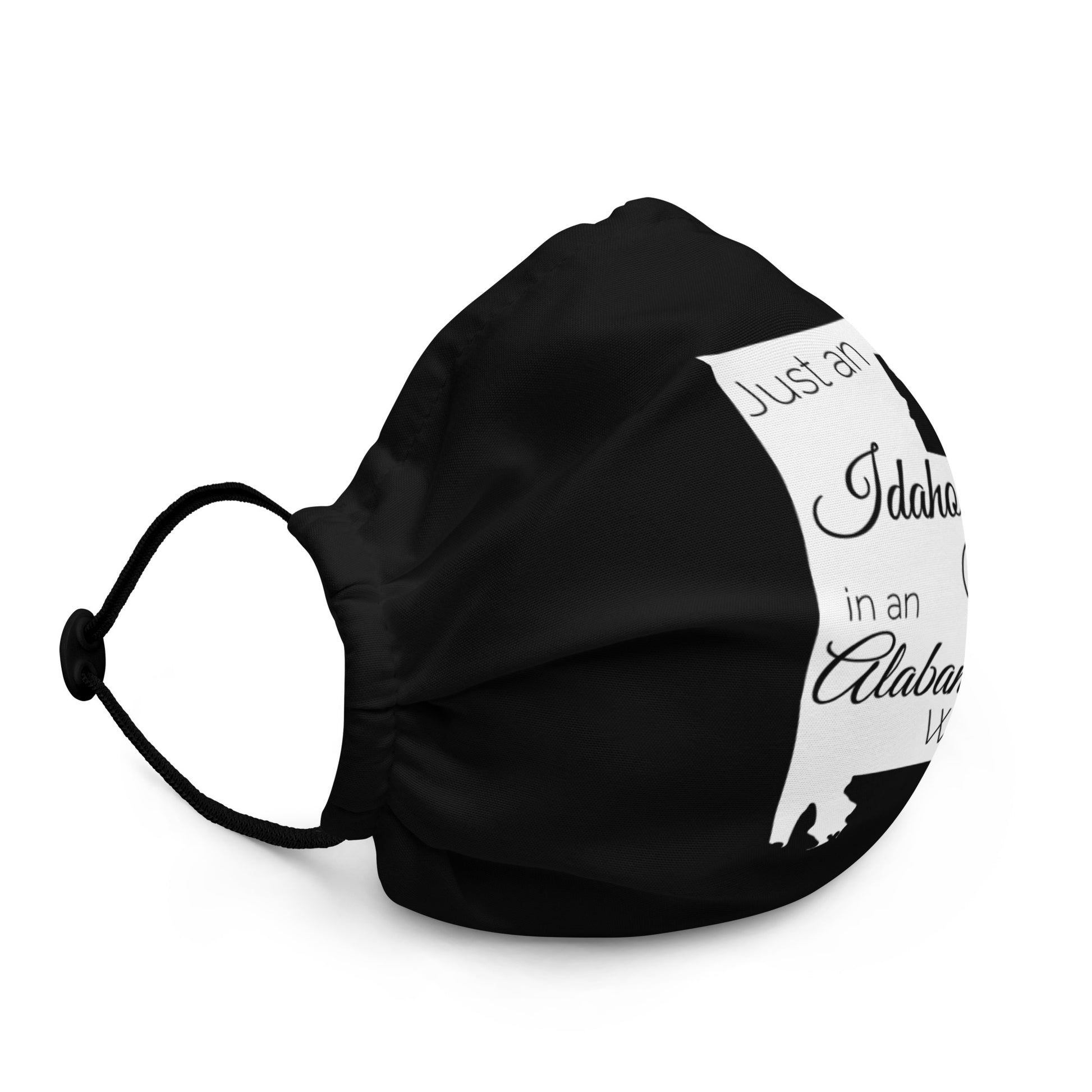 Show your pride in your home state with this face mask showing Just an Idaho Girl in an Alabama World. This reusable face mask will fit you nicely thanks to its adjustable nose wire and elastic bands. Choose a design that will complement your style, as face masks are becoming the new trend.