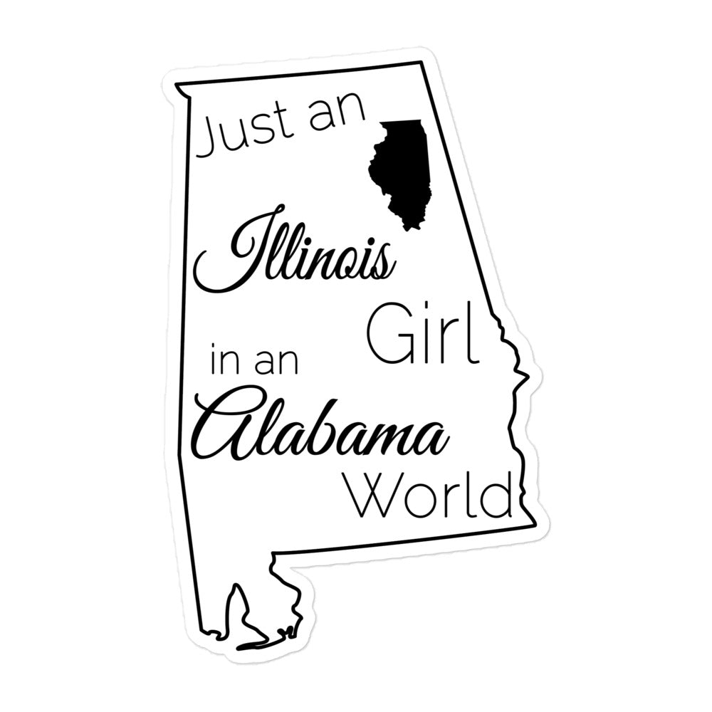 Just an Illinois Girl in an Alabama World Bubble-free stickers