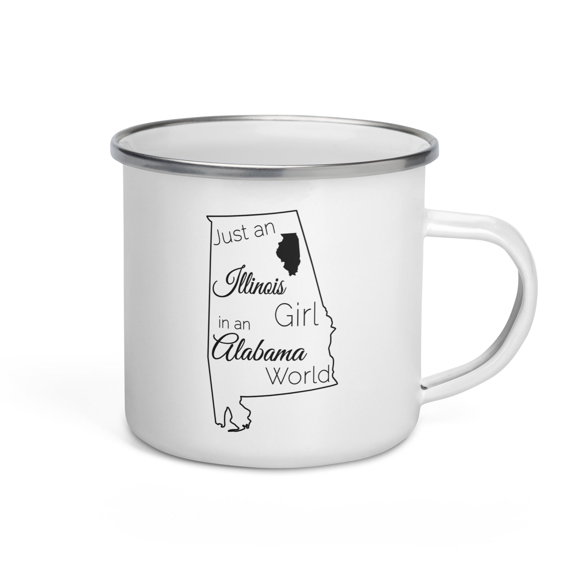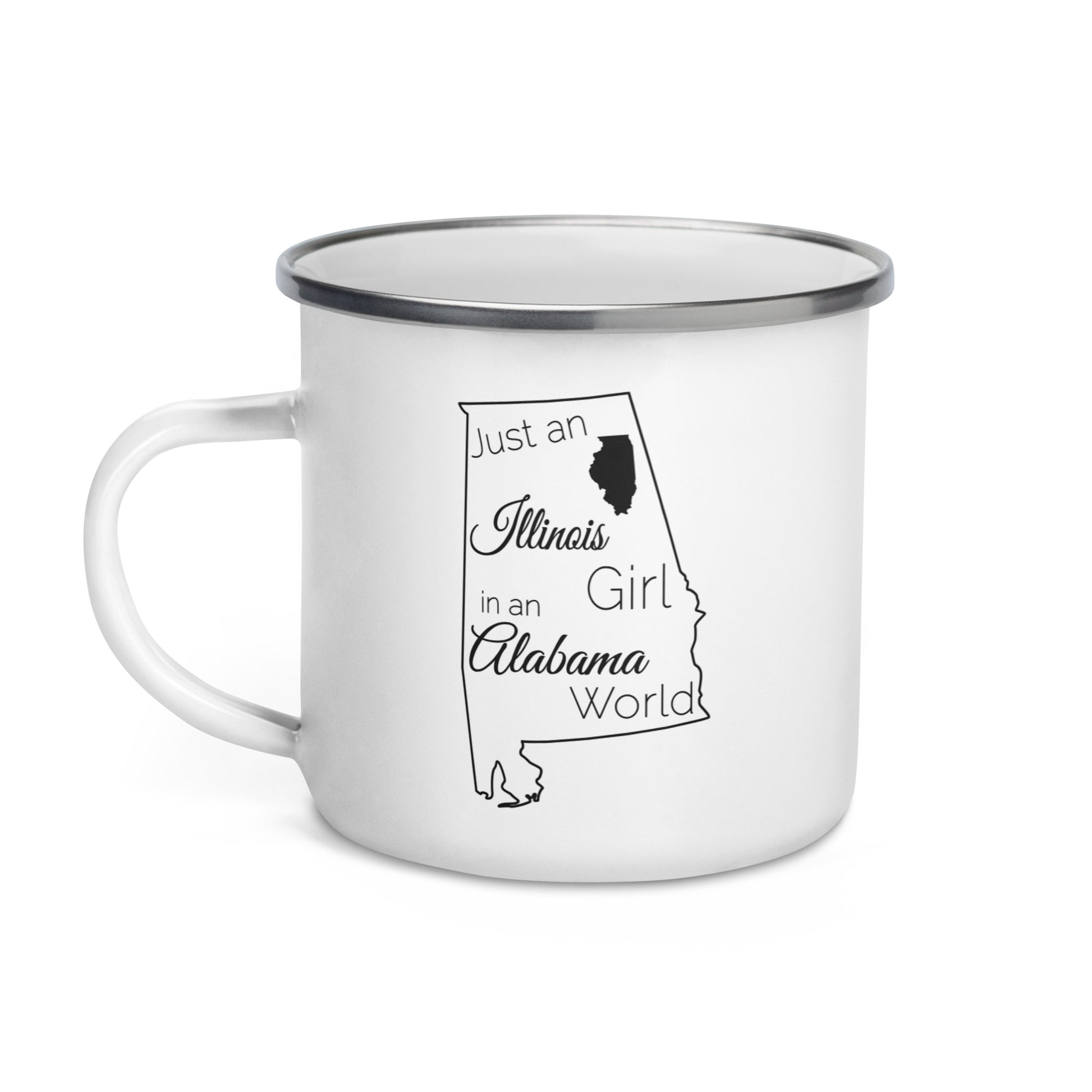 Just an Illinois Girl in an Alabama World Enamel Mug