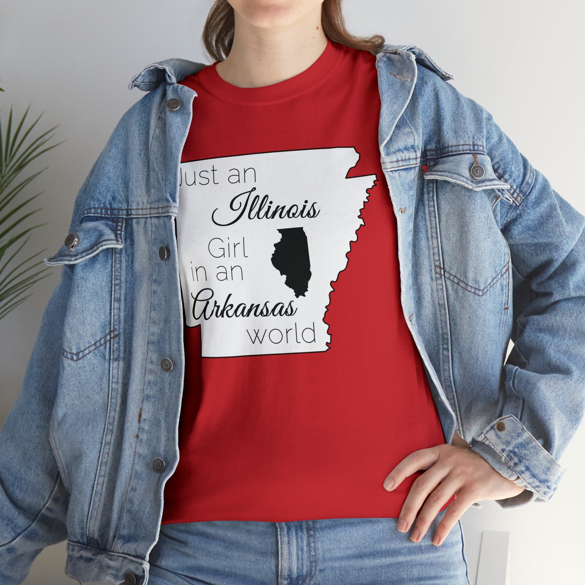 Just an Illinois Girl in an Arkansas World Unisex Heavy Cotton Tee