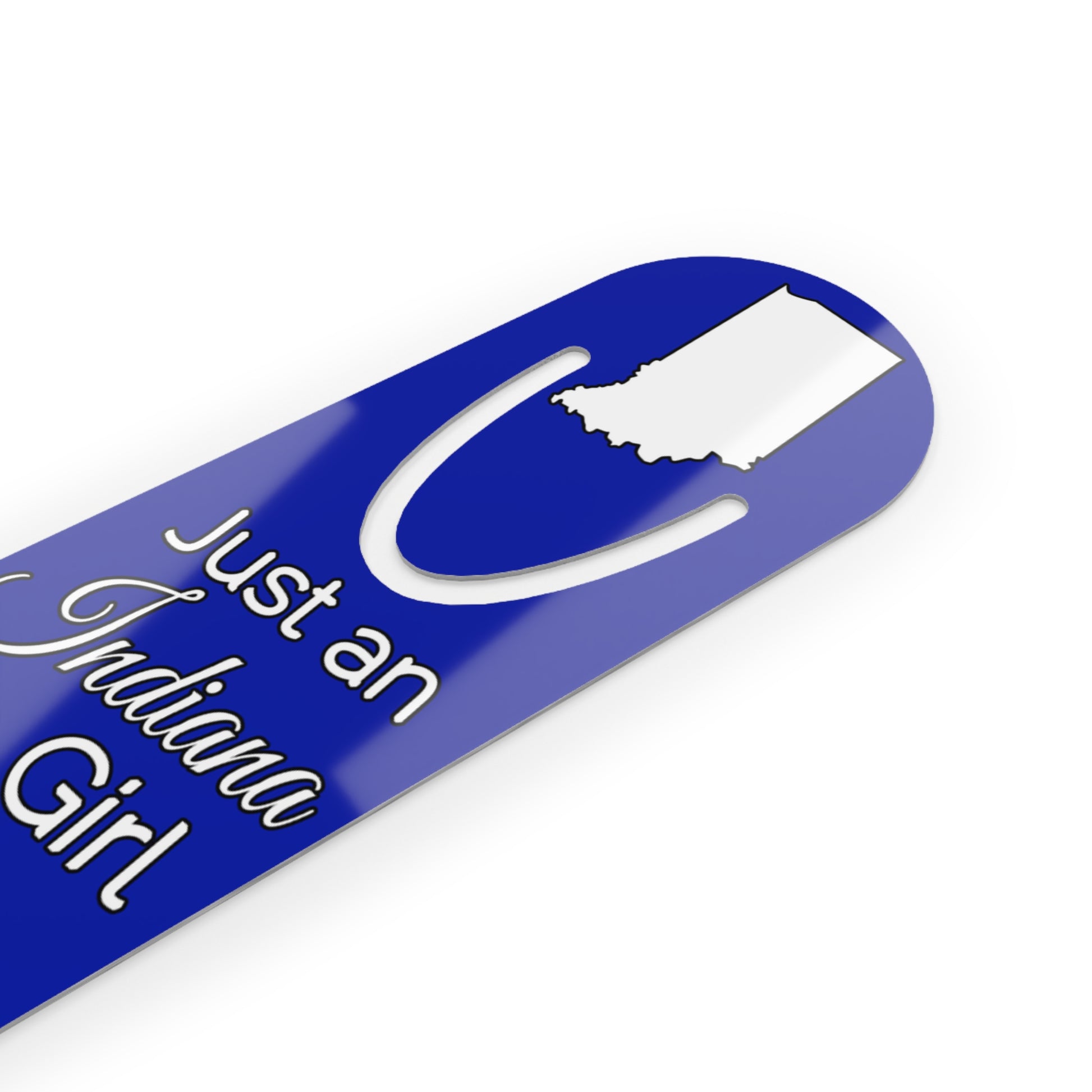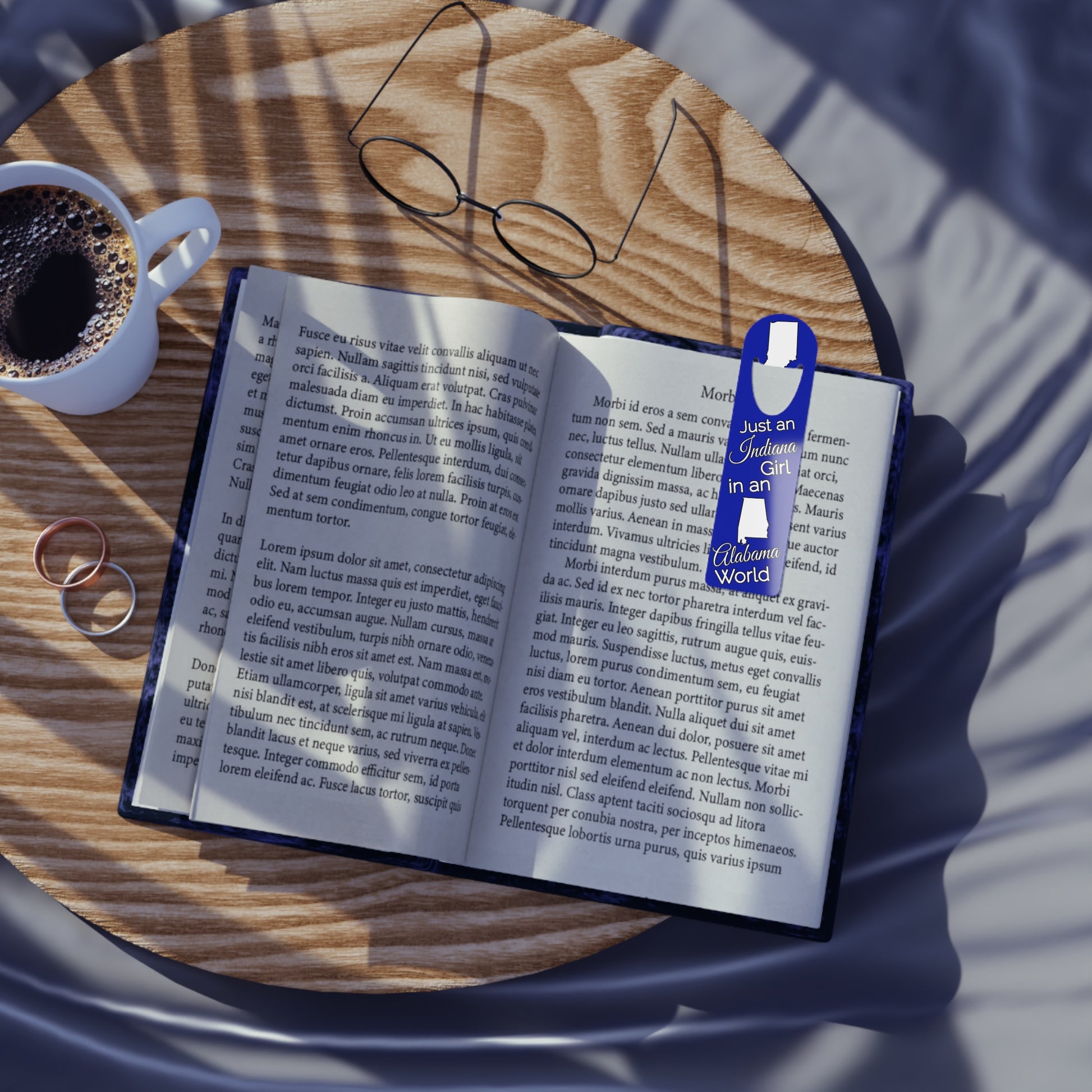 Show your pride in your home state with this bookmark showing Just an Indiana Girl in an Alabama World. Made with robust aluminum, features top slot that holds single pages in place.