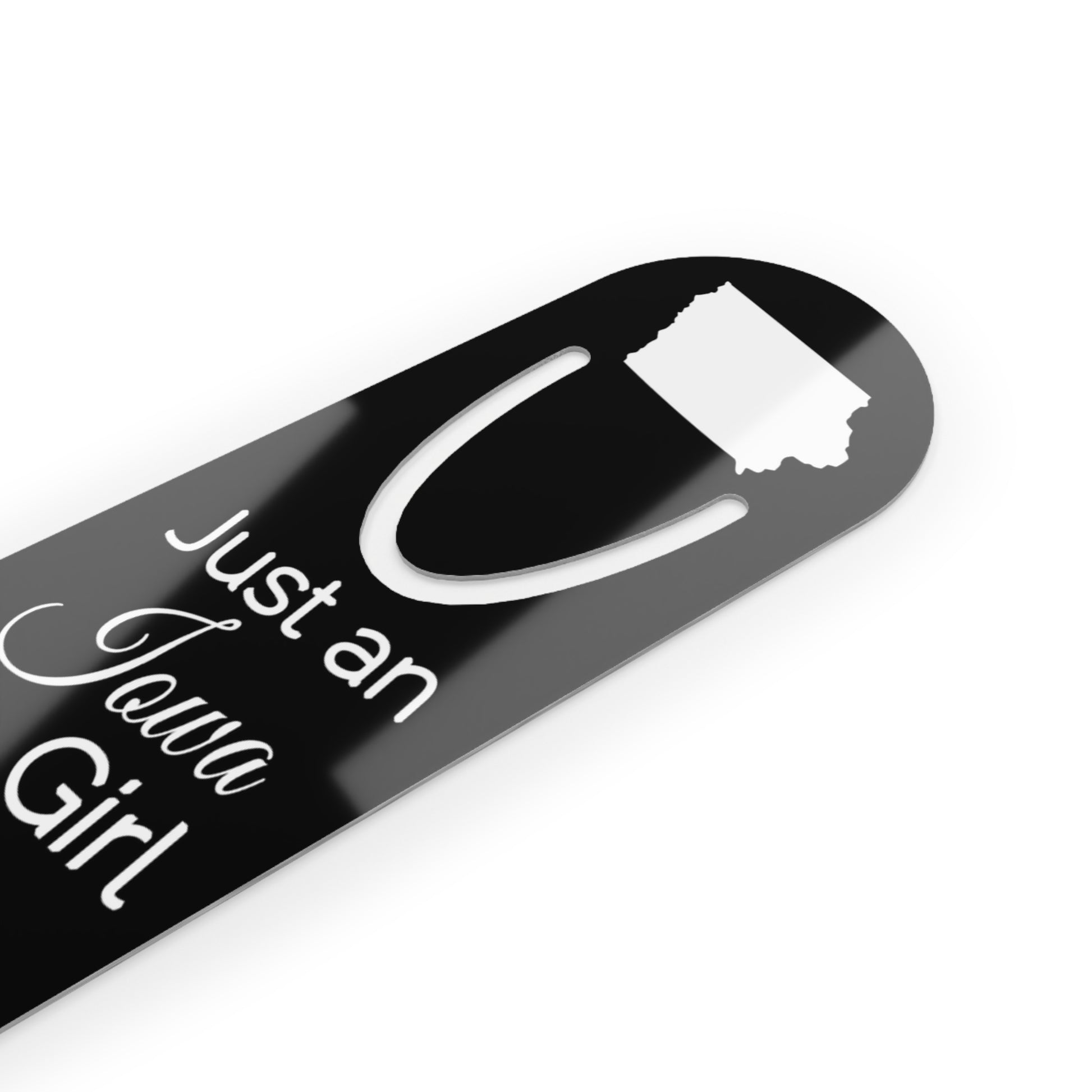 Show your pride in your home state with this bookmark showing Just an Iowa Girl in an Alabama World. Made with robust aluminum, features top slot that holds single pages in place.
