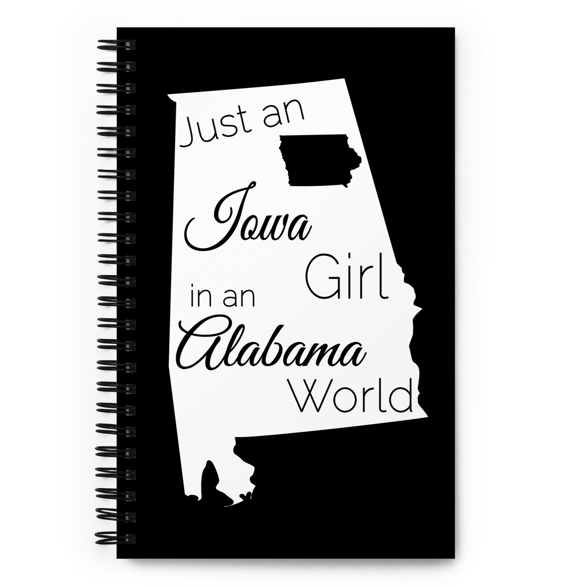 Show your pride in your home state with this wire bound journal showing Just an Iowa Girl in an Alabama World. A good notebook can help you with motivation to take more notes, write down ideas, or list future dreams. This wire-bound notebook will be a great daily companion whenever you need to put your thoughts down on paper!