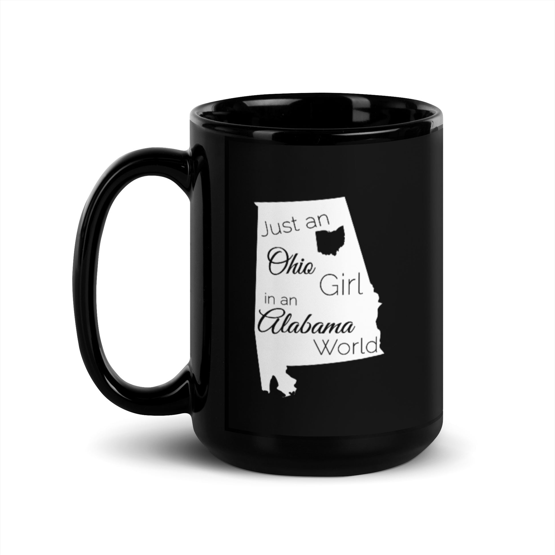 Just an Ohio Girl in an Alabama World Black Glossy Mug