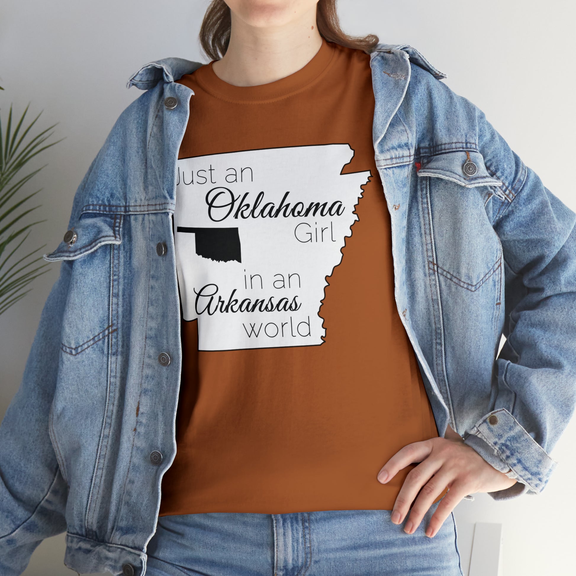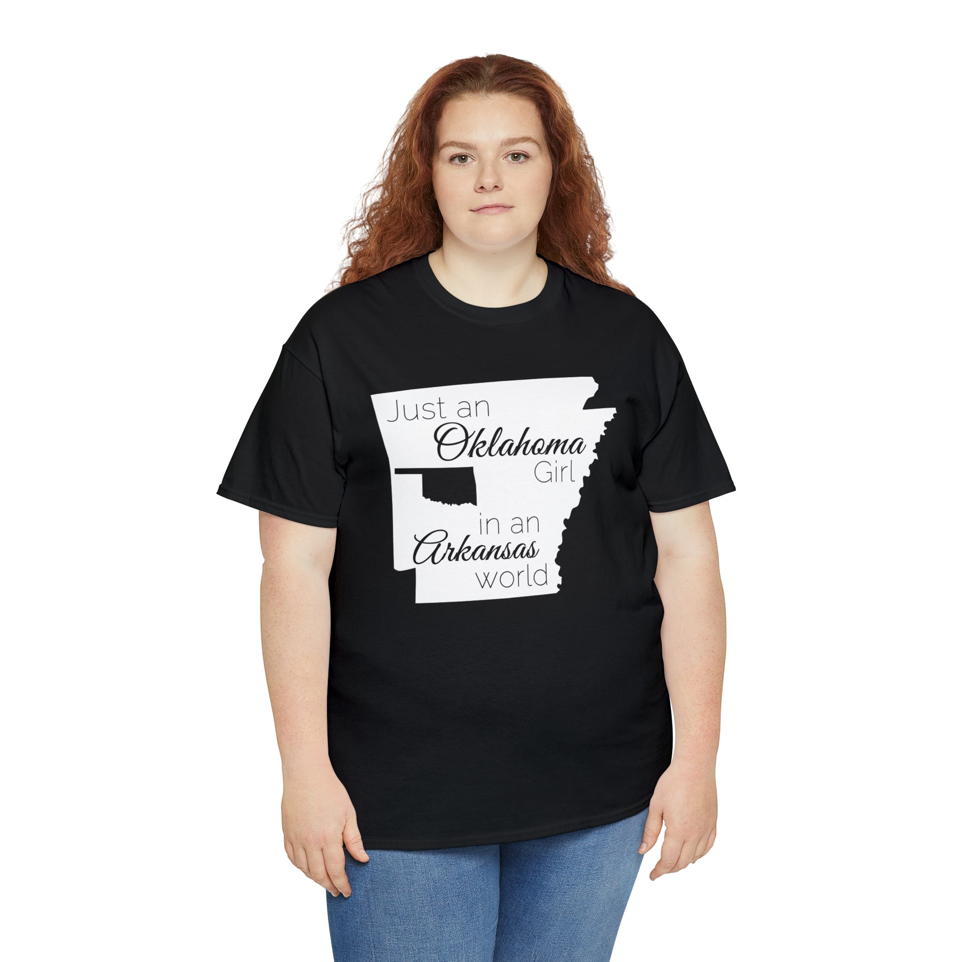 Just an Oklahoma Girl in an Arkansas World Unisex Heavy Cotton Tee