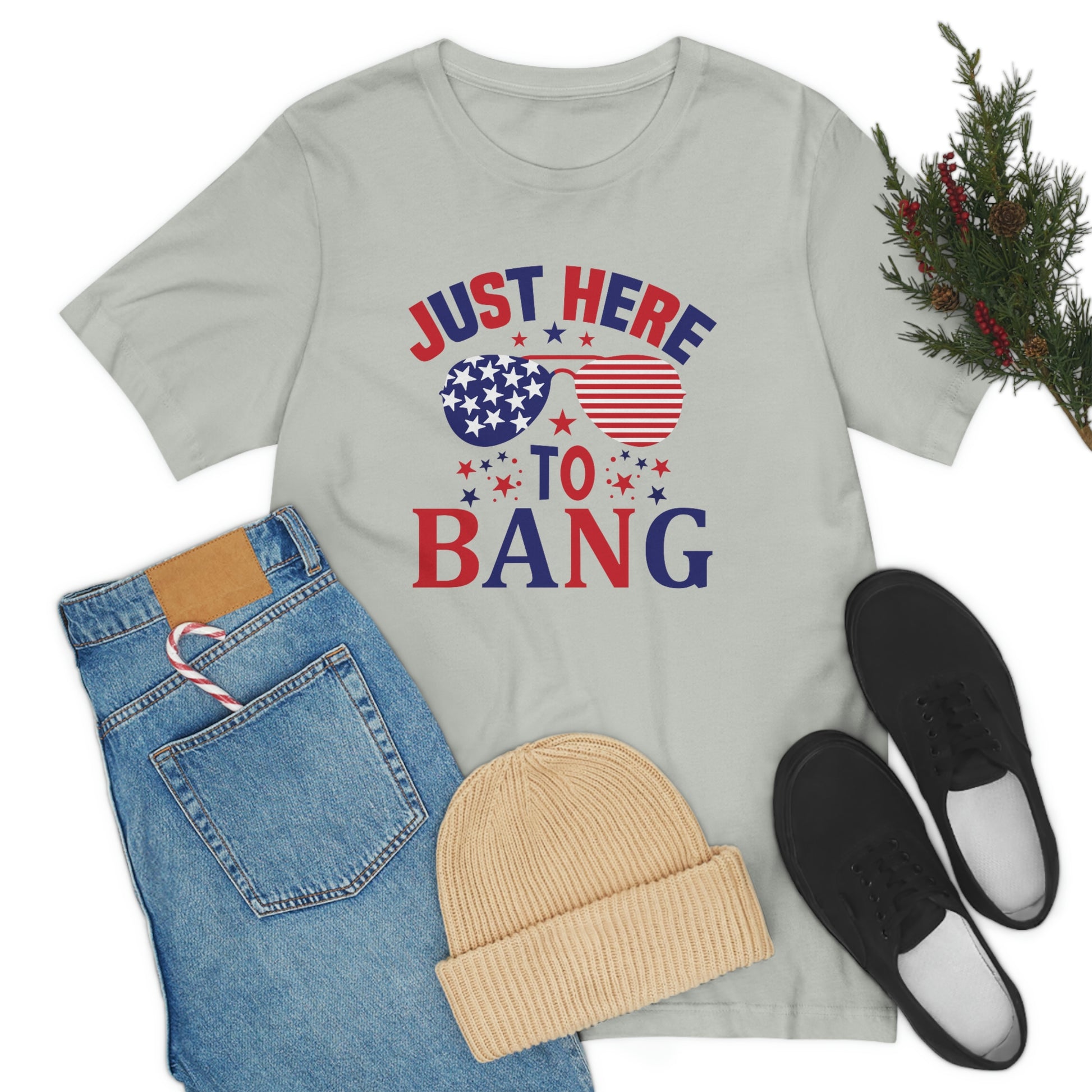 Just Here to Bang Independence Day Happy 4th of July Unisex Jersey Short Sleeve Tee