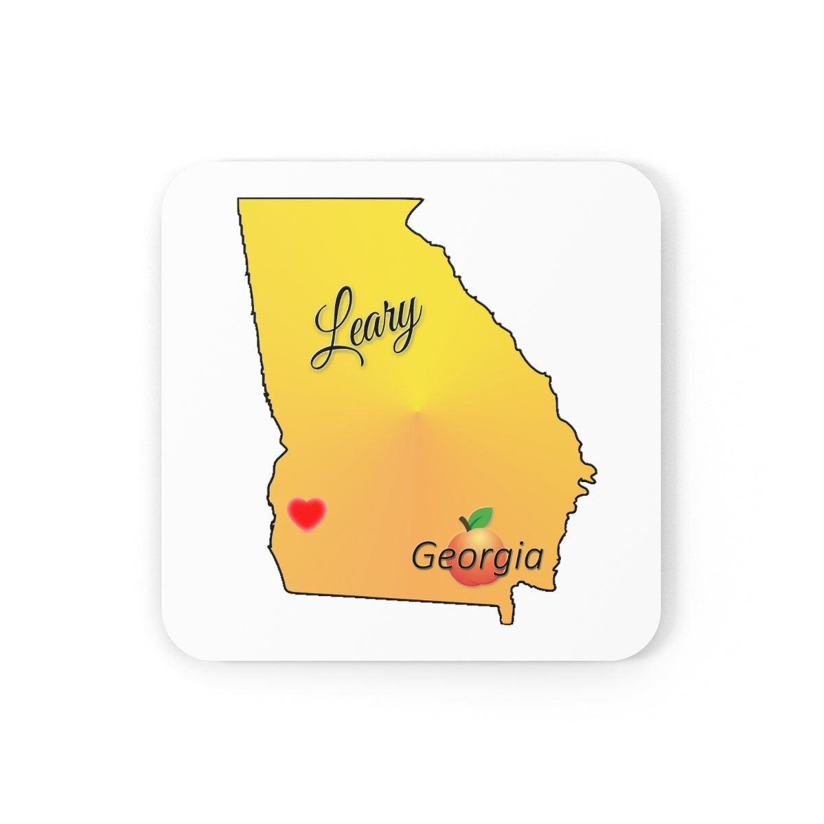 This coaster set comes with 4 coasters in one size. They are made with a high-gloss top and feature a cork back to prevent sliding.