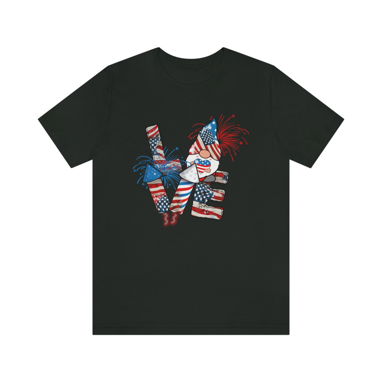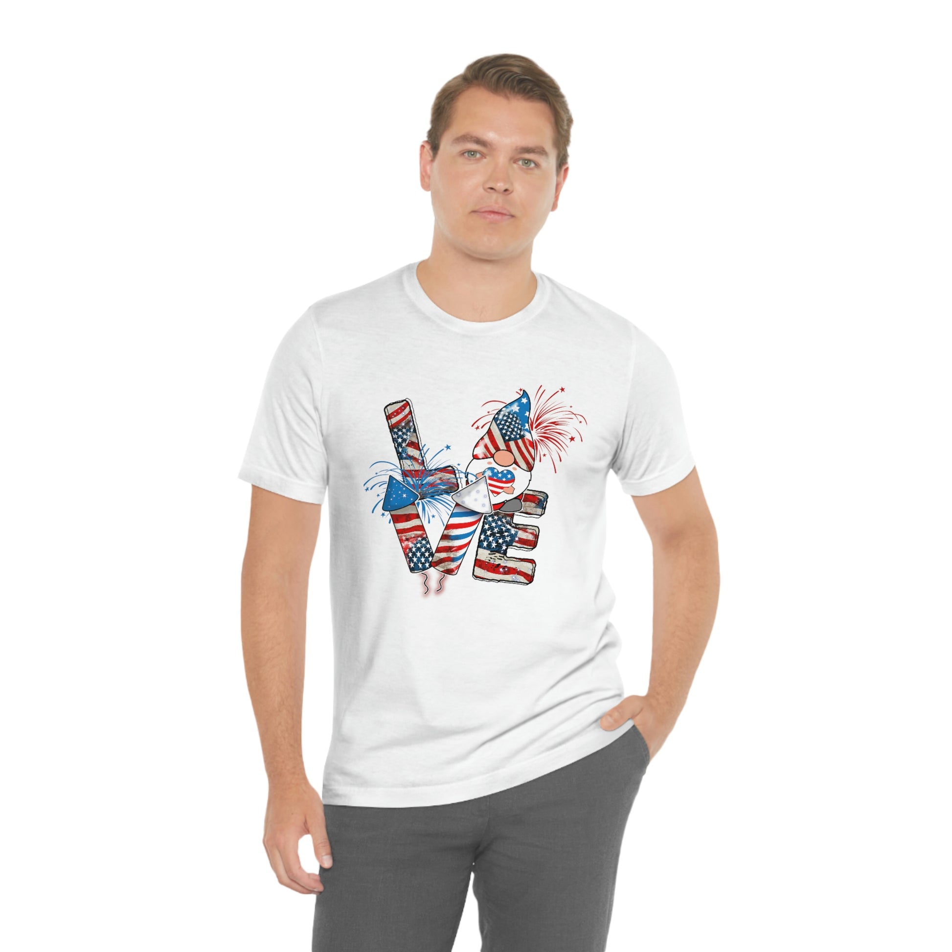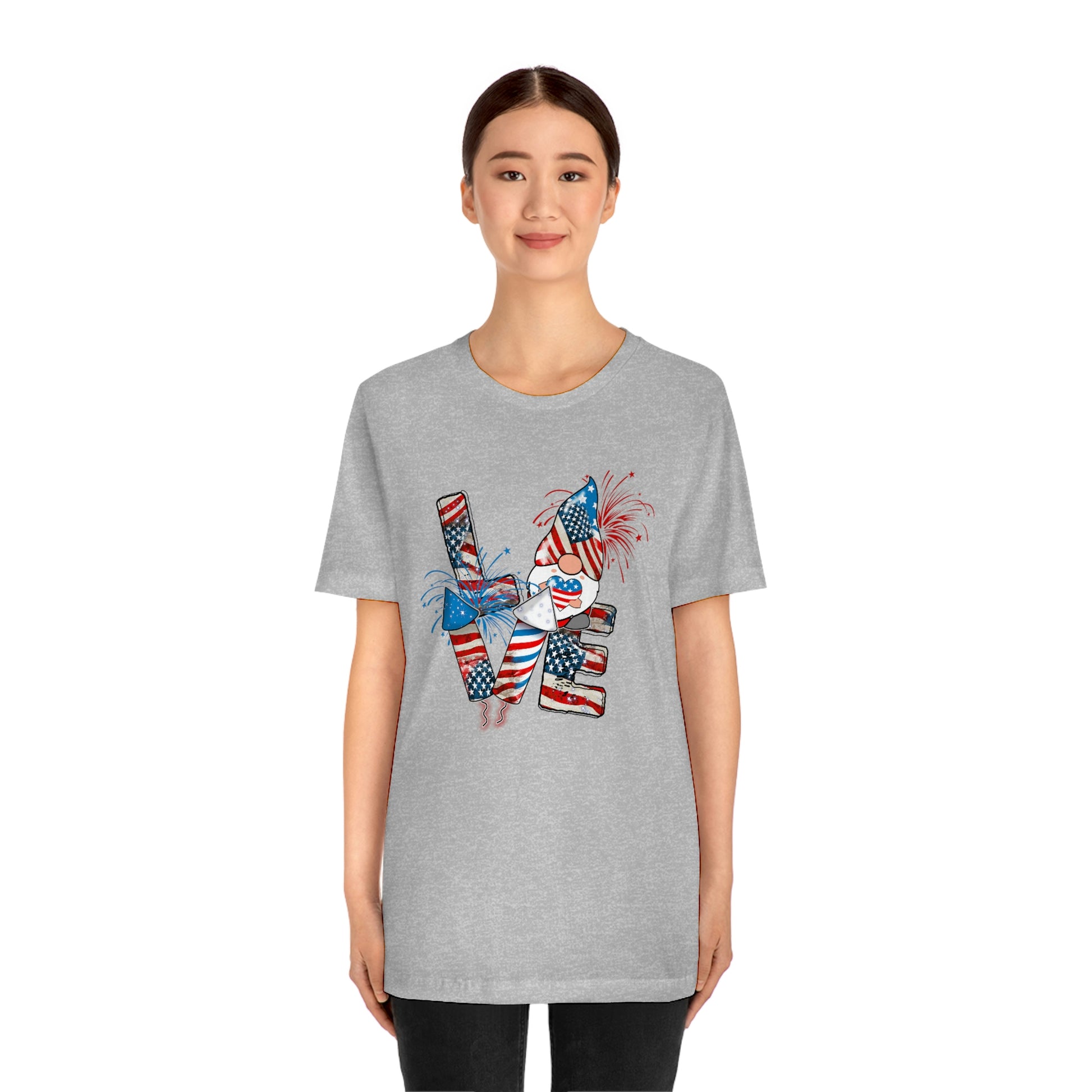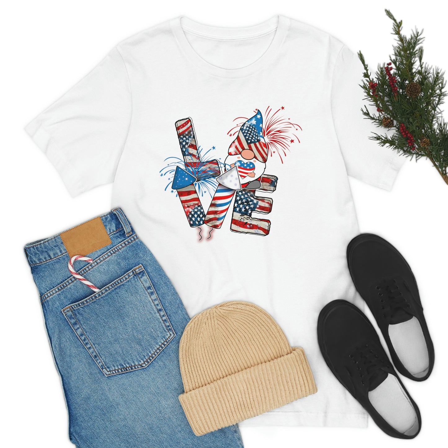 Love Rockets Gnome 4th of July Independence Day Unisex Jersey Short Sleeve Tee