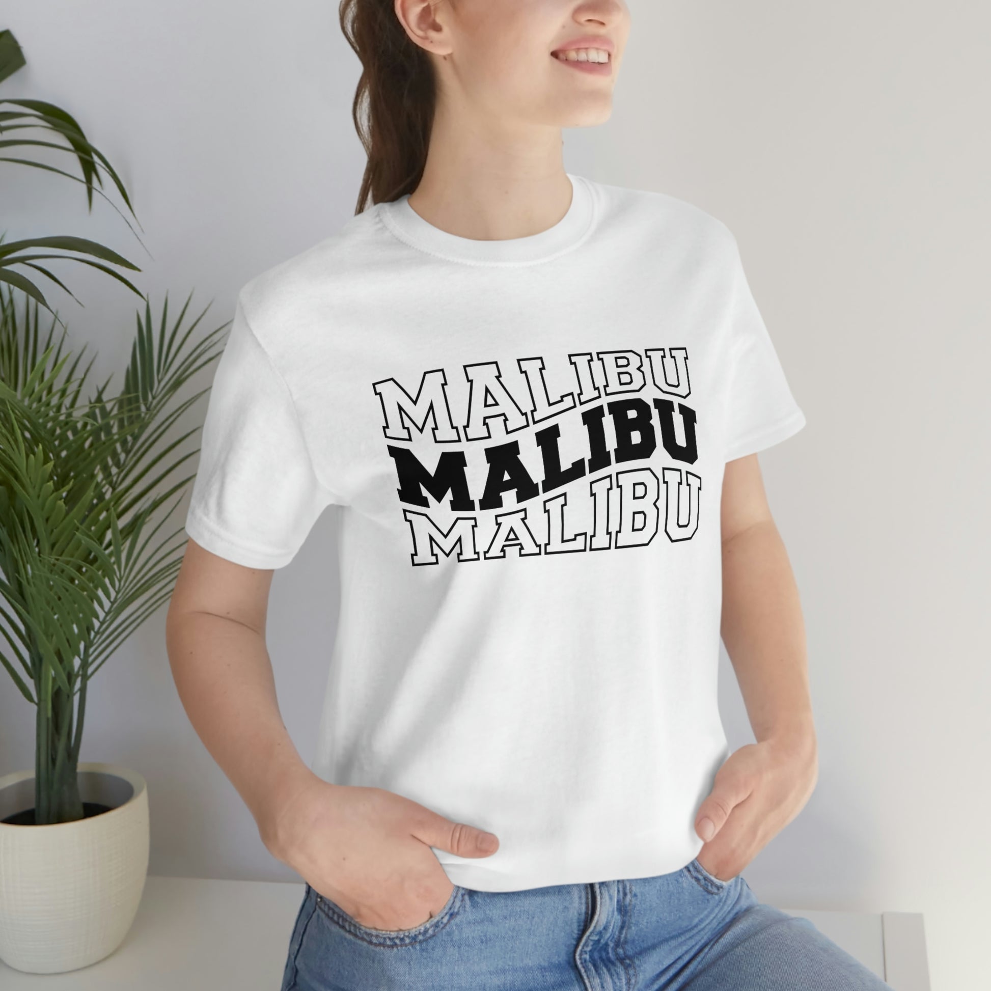 Malibu California Varsity Letters Wavy Unisex Jersey Short Sleeve Tee Tshirt T-shirt