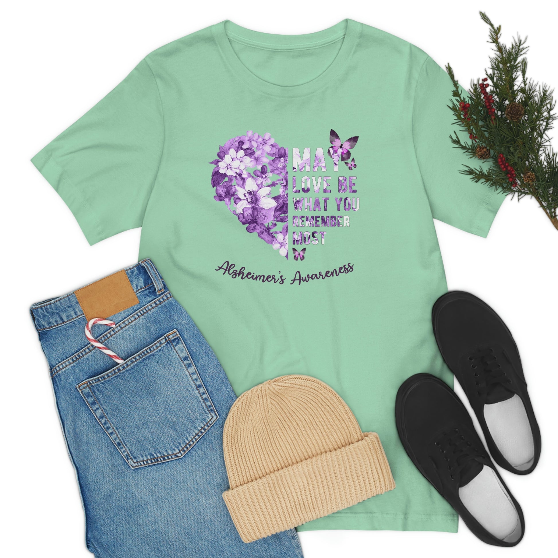 May Love Be What You Remember Most Alzheimer Awareness Print Unisex Jersey Short Sleeve Tee