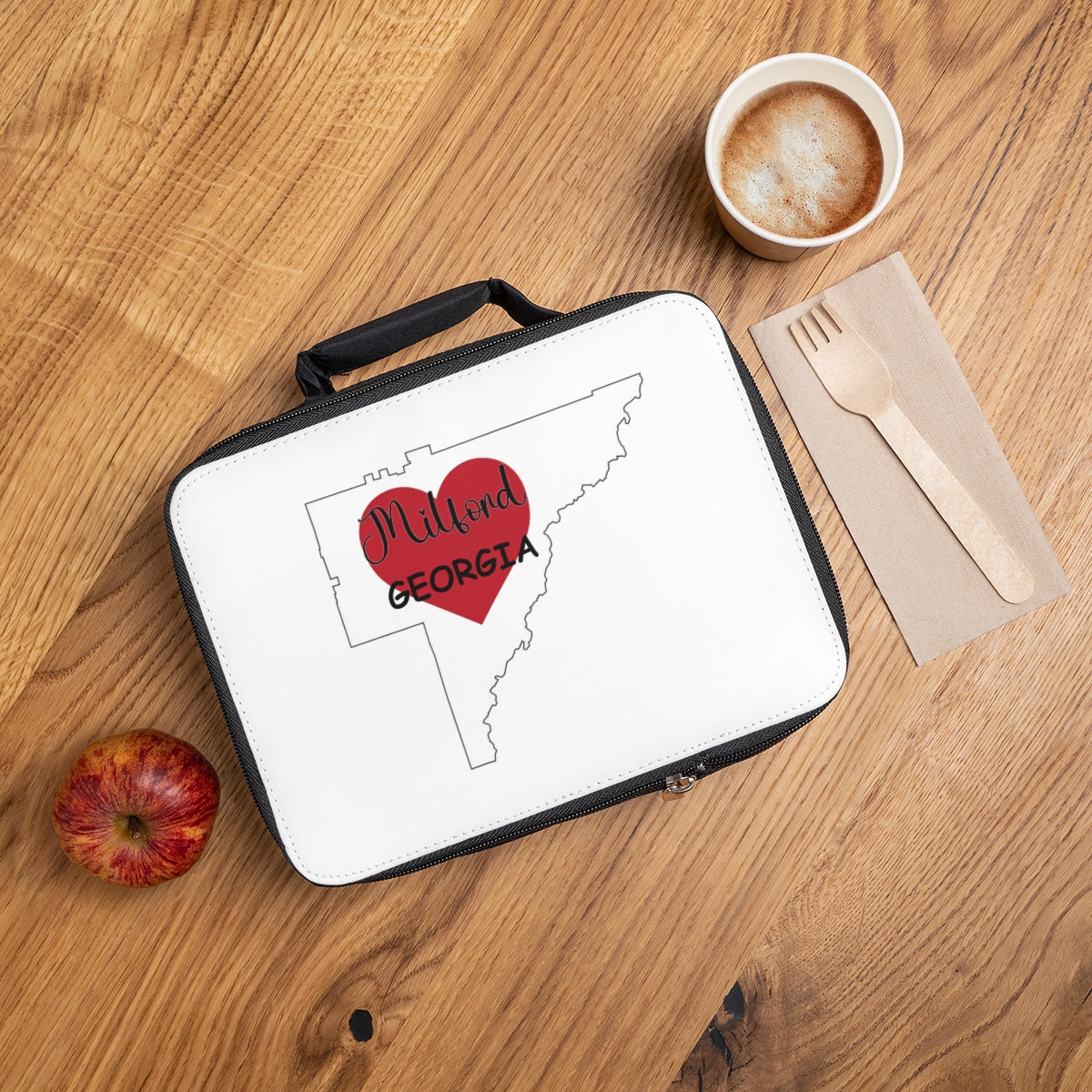 Show your love and pride in your home town or county. This lunch bag has a zippered closure, a convenient carrying handle, and a durable fabric made with 20% cotton - 80% polyester.