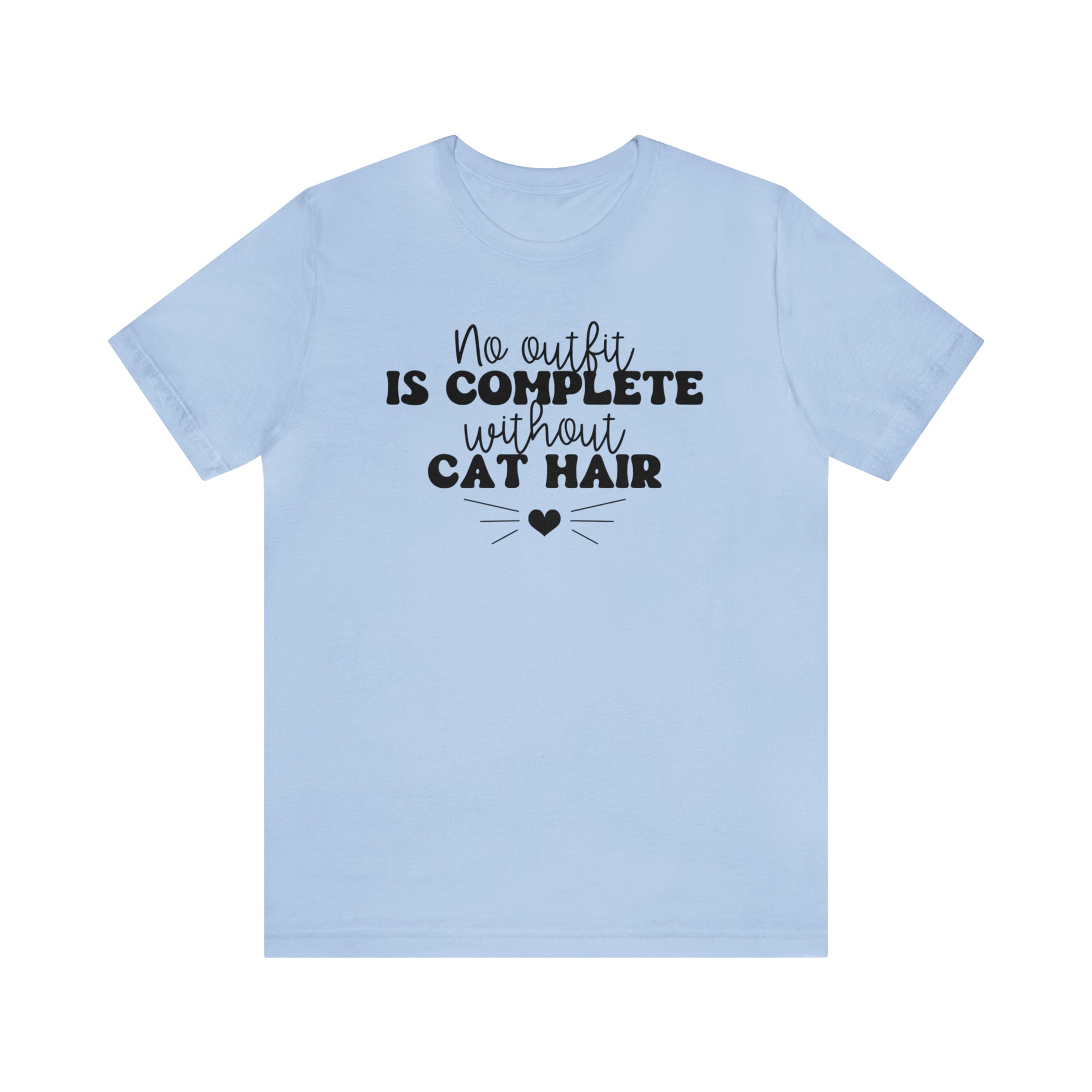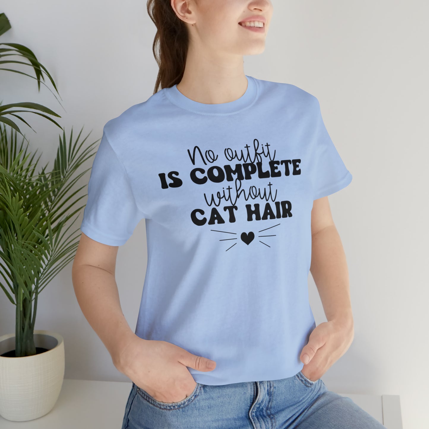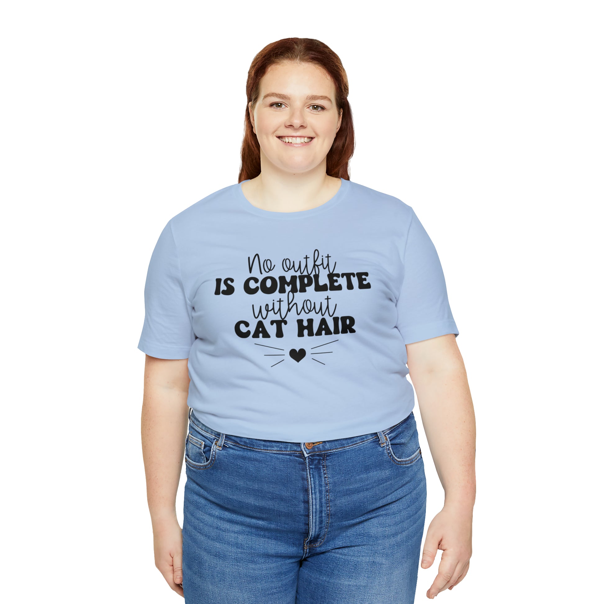 This classic unisex short sleeve cat t-shirt reads No Outfit is Complete Without Cat Hair. This tee fits like a well-loved favorite. Soft cotton and quality print make you fall in love with it over and over again. These t-shirts have ribbed knit collars to bolster shaping. The shoulders have taping for better fit over time. Dual side seams hold the garment's shape for longer.