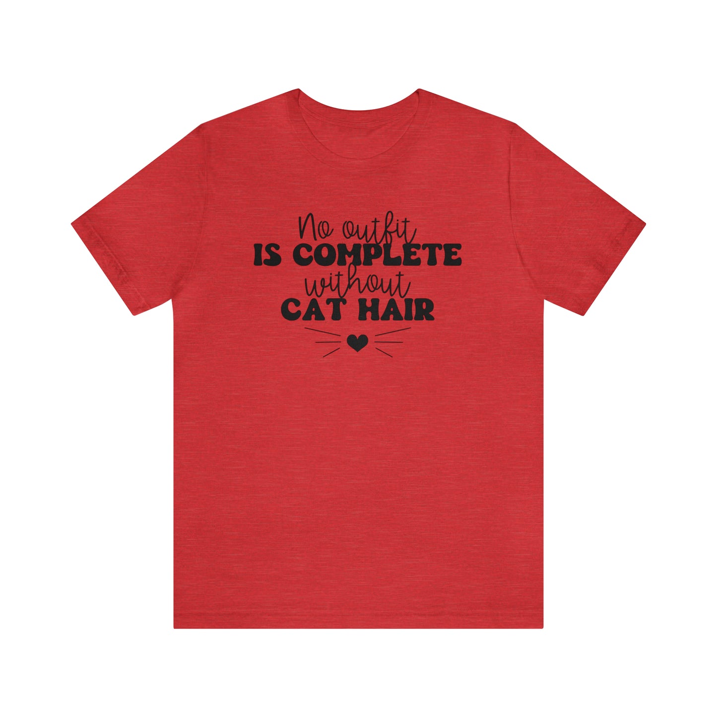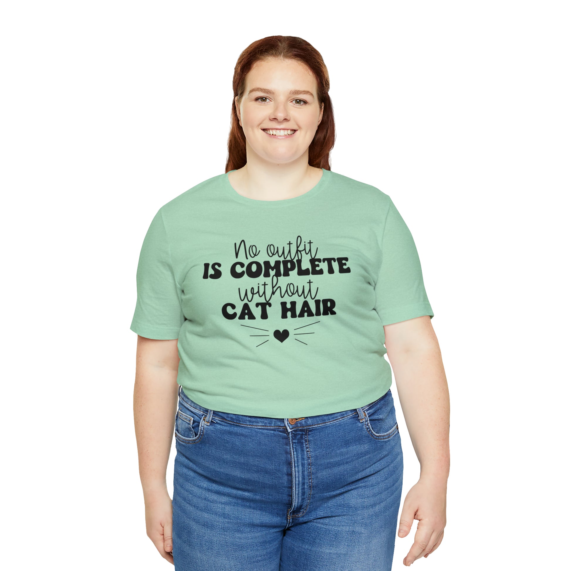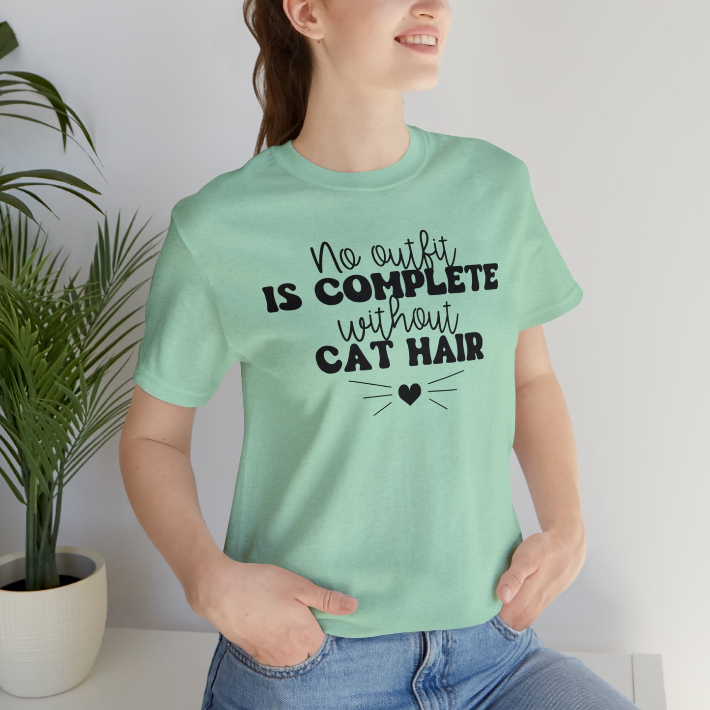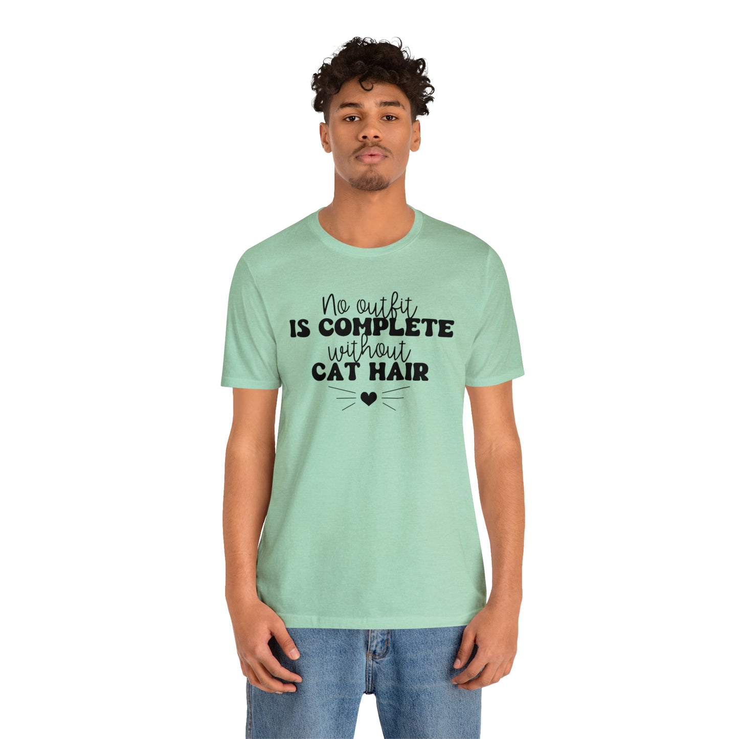 This classic unisex short sleeve cat t-shirt reads No Outfit is Complete Without Cat Hair. This tee fits like a well-loved favorite. Soft cotton and quality print make you fall in love with it over and over again. These t-shirts have ribbed knit collars to bolster shaping. The shoulders have taping for better fit over time. Dual side seams hold the garment's shape for longer.