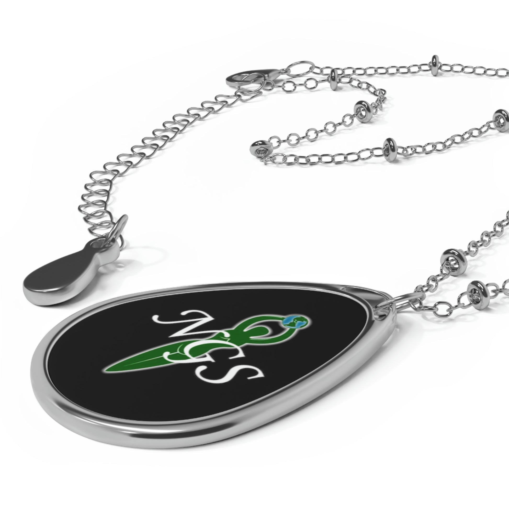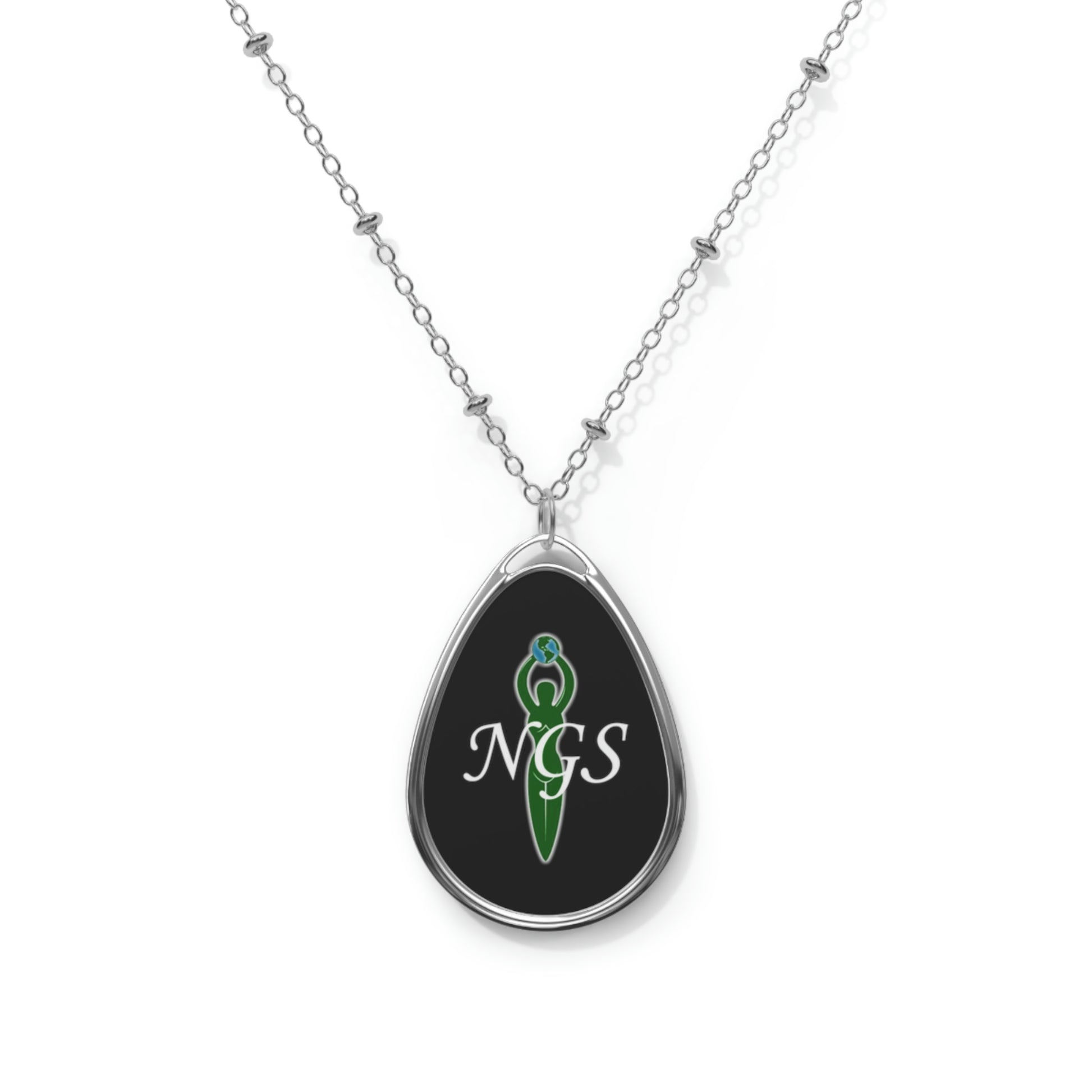 Show your support of North Georgia Solitaries (NGS) with this necklace showing the green goddess with NGS written across it.