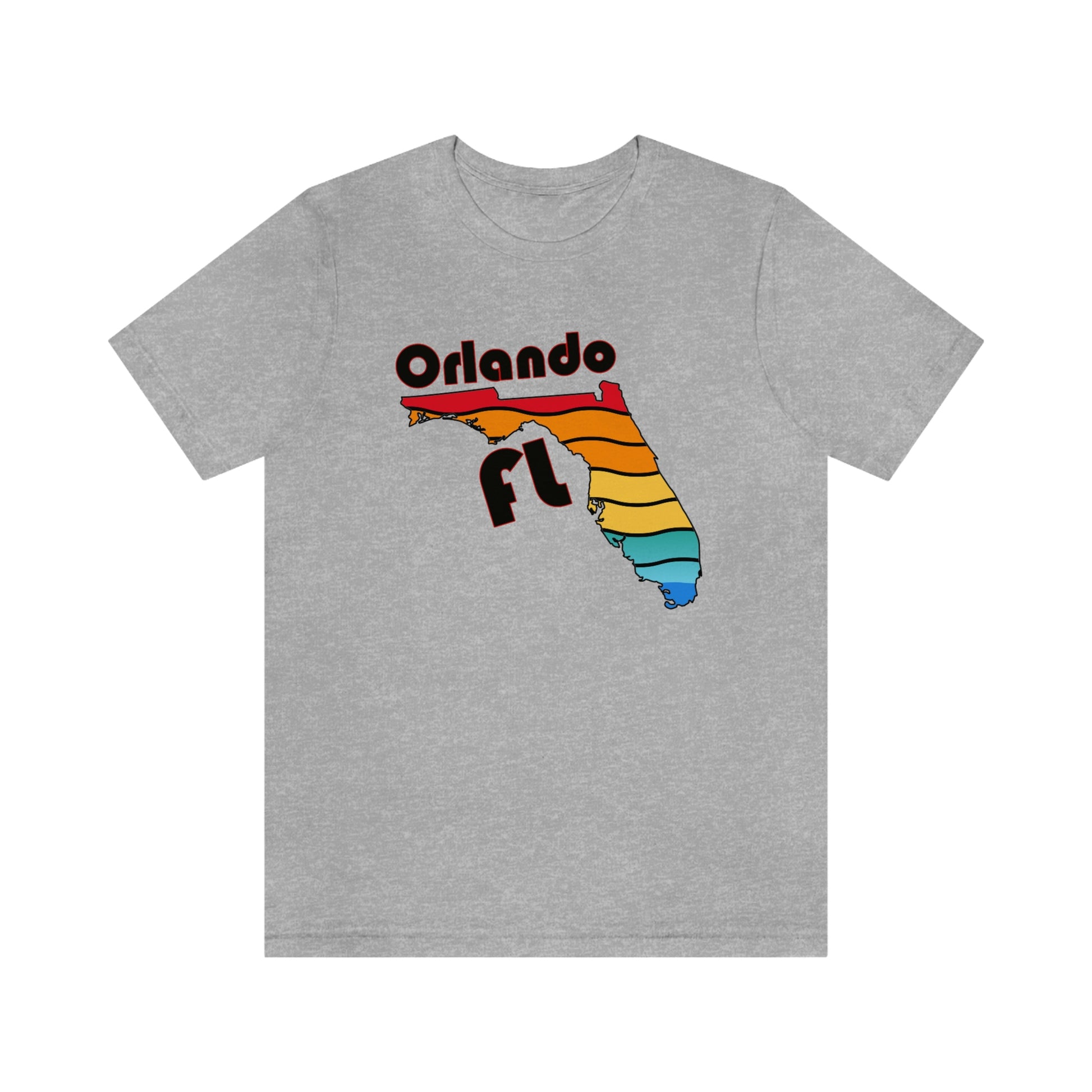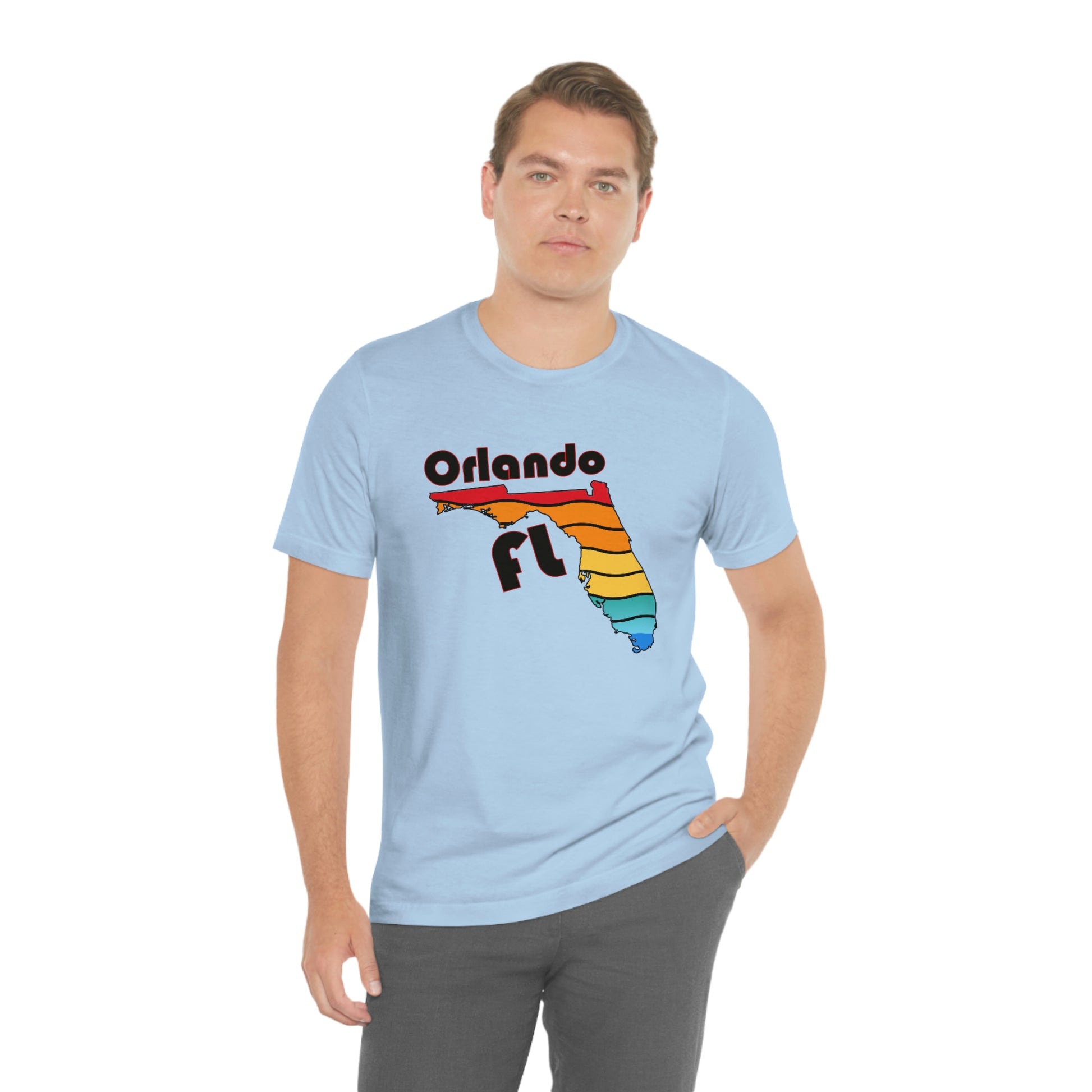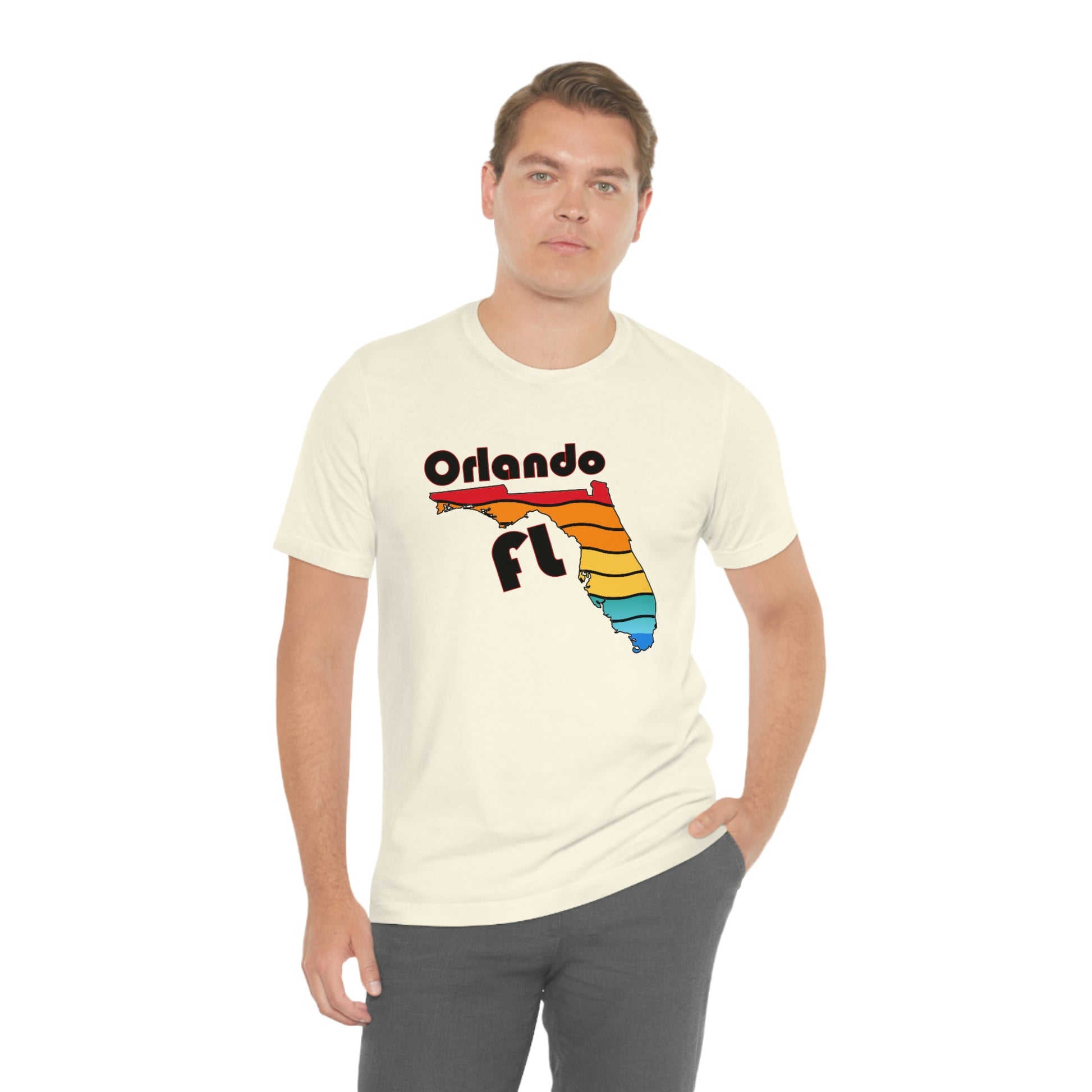 Show off your love and pride in Orlando with this classic unisex short sleeve t-shirt with a rainbow filled Florida state outline and Orlando FL printed. This tee fits like a well-loved favorite. Soft cotton and quality print make you fall in love with it over and over again. These t-shirts have ribbed knit collars to bolster shaping. The shoulders have taping for better fit over time. Dual side seams hold the garment's shape for longer.