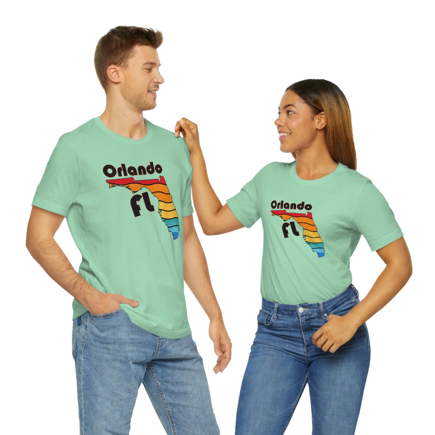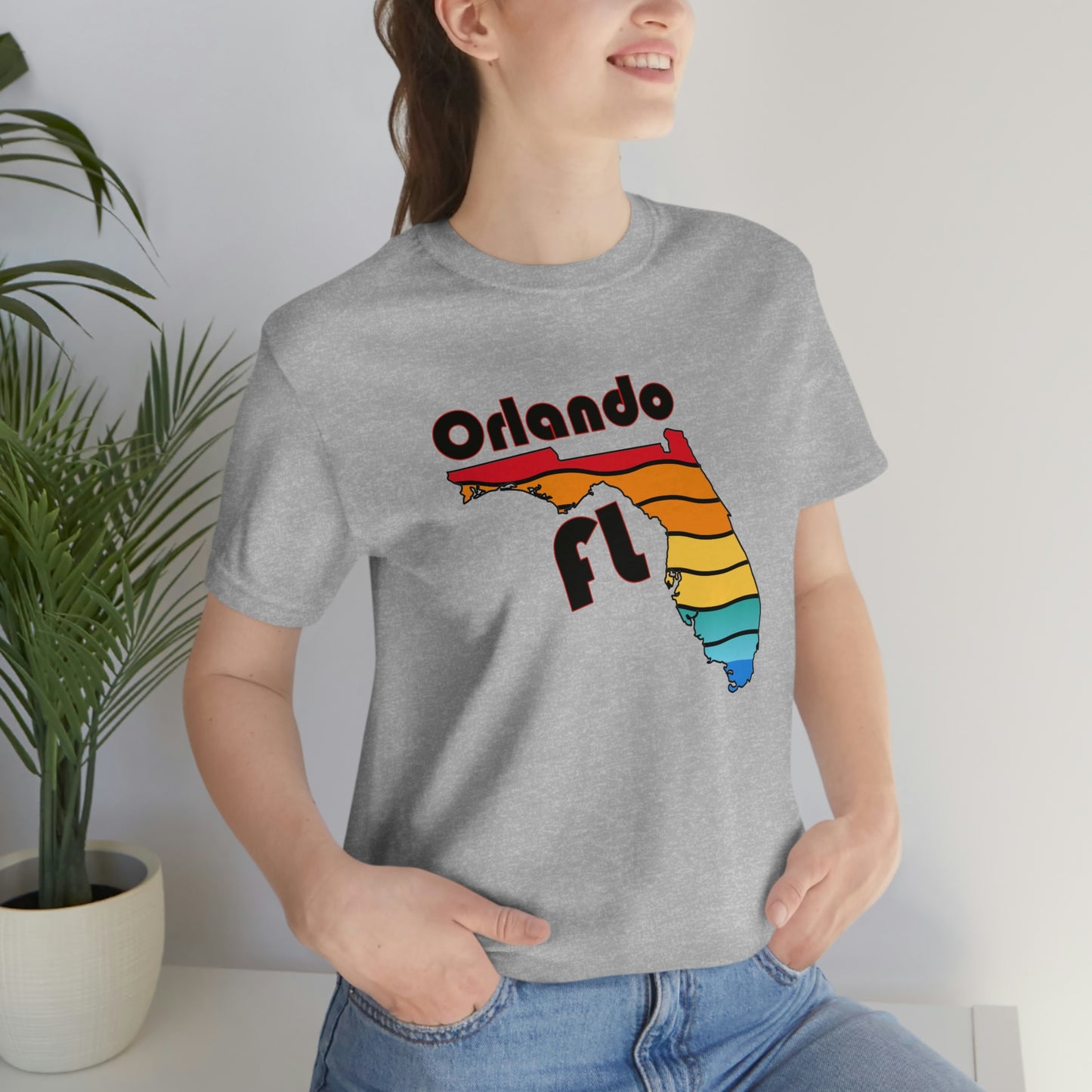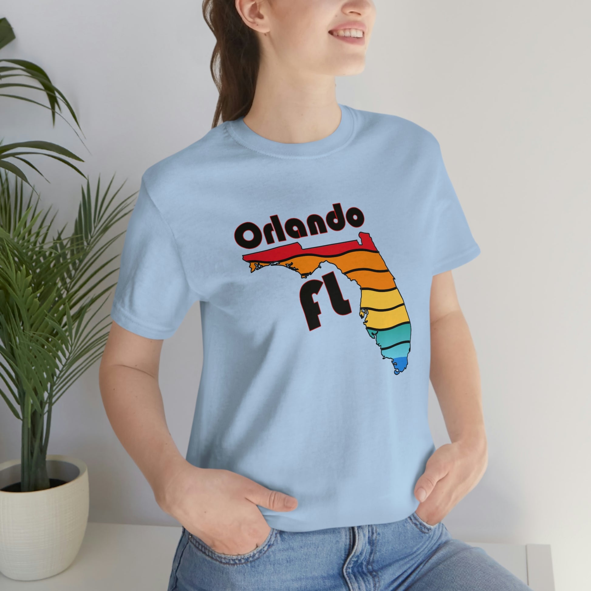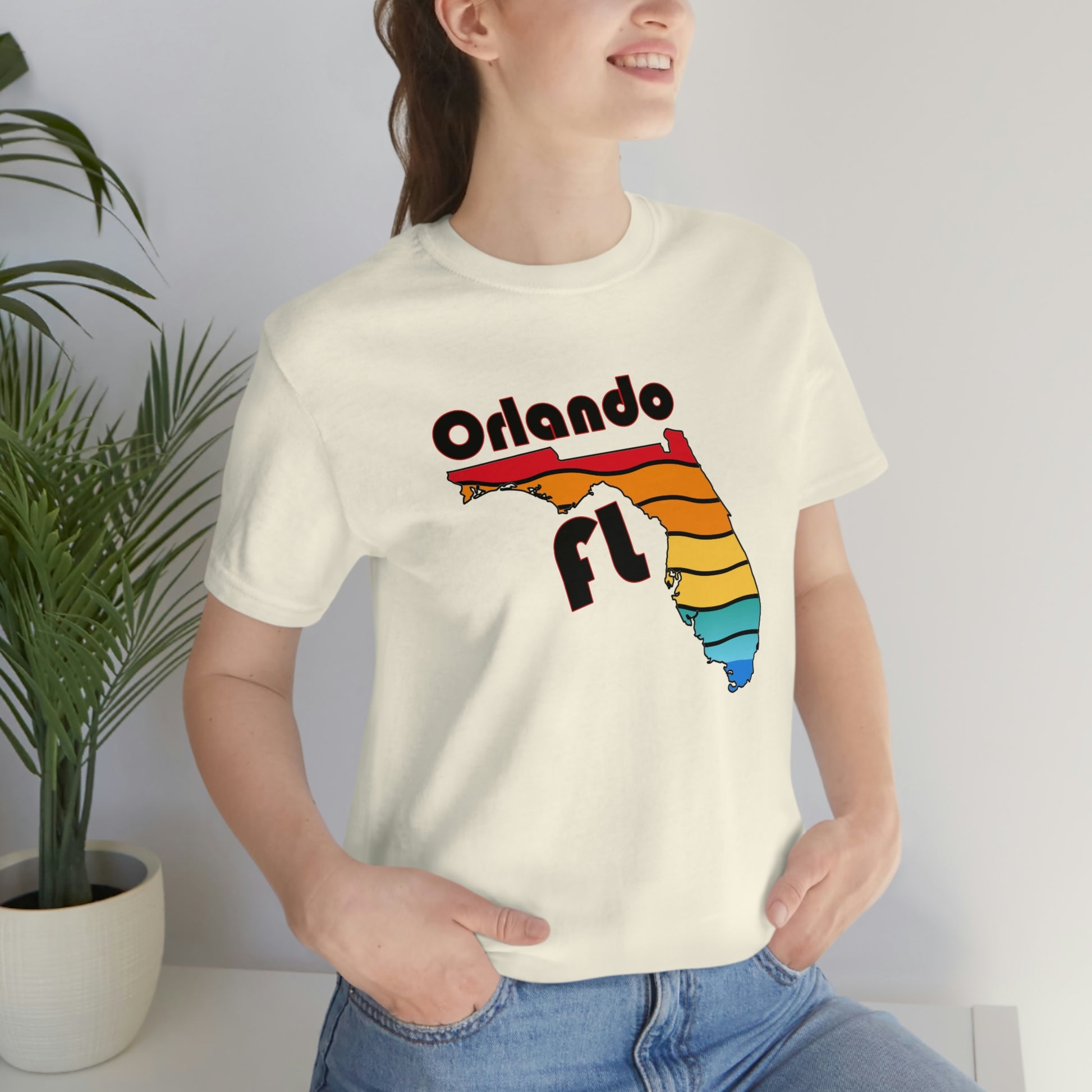 Show off your love and pride in Orlando with this classic unisex short sleeve t-shirt with a rainbow filled Florida state outline and Orlando FL printed. This tee fits like a well-loved favorite. Soft cotton and quality print make you fall in love with it over and over again. These t-shirts have ribbed knit collars to bolster shaping. The shoulders have taping for better fit over time. Dual side seams hold the garment's shape for longer.