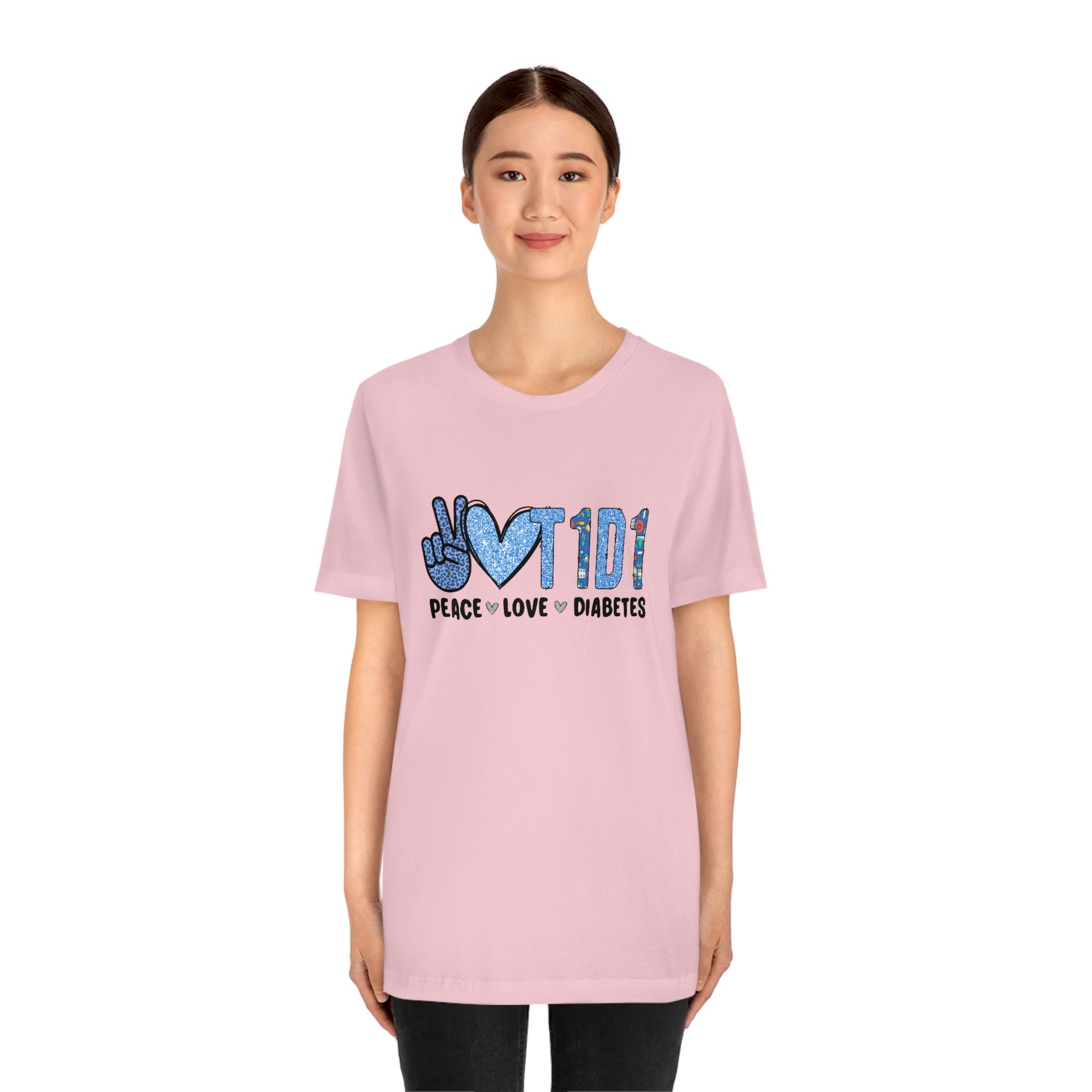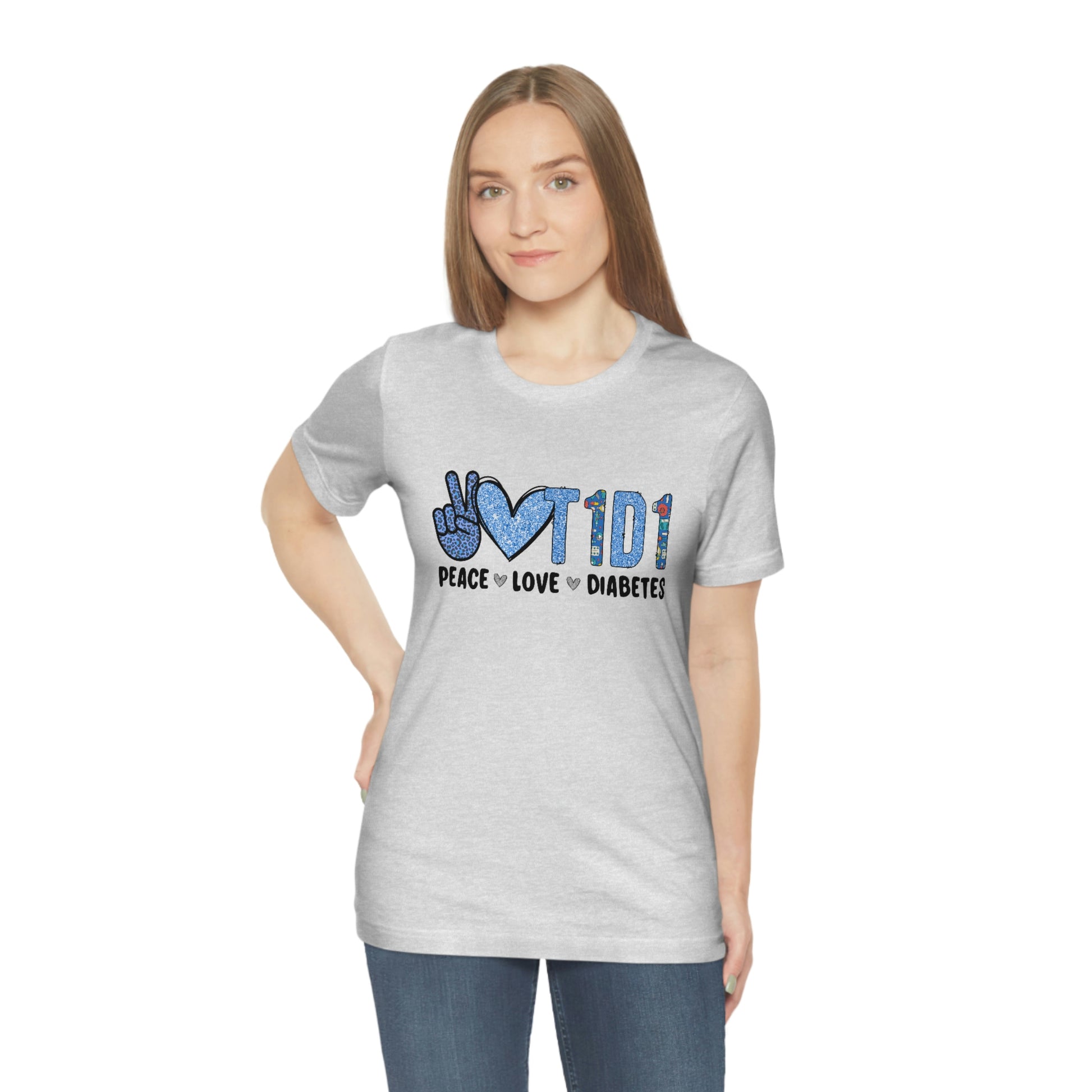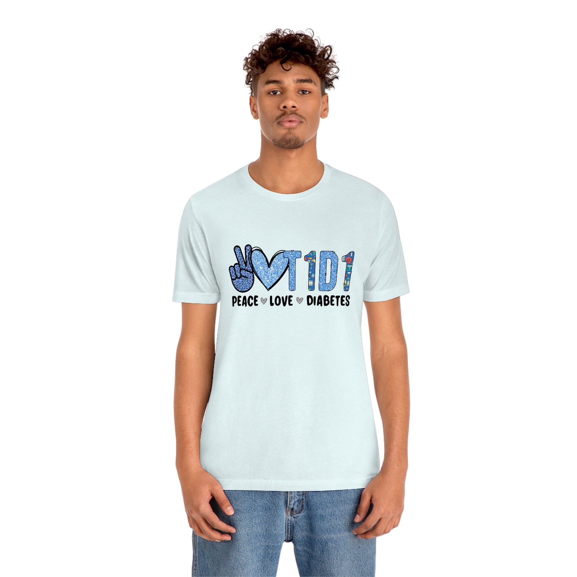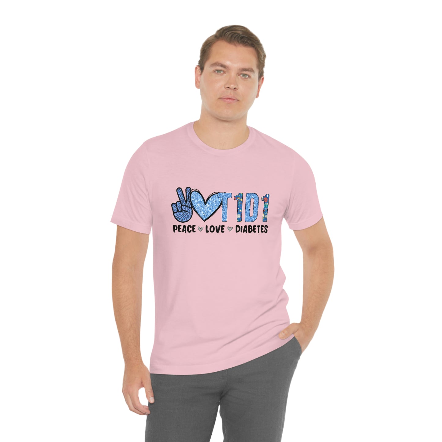 Peace Love T1D1 Diabetes Awareness Print Unisex Jersey Short Sleeve Tee