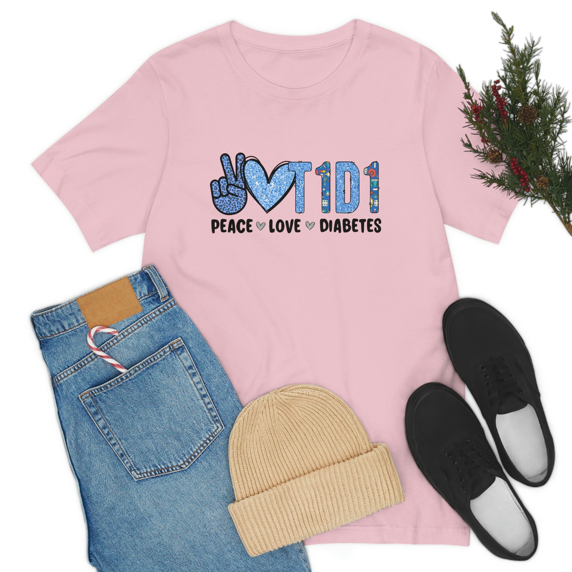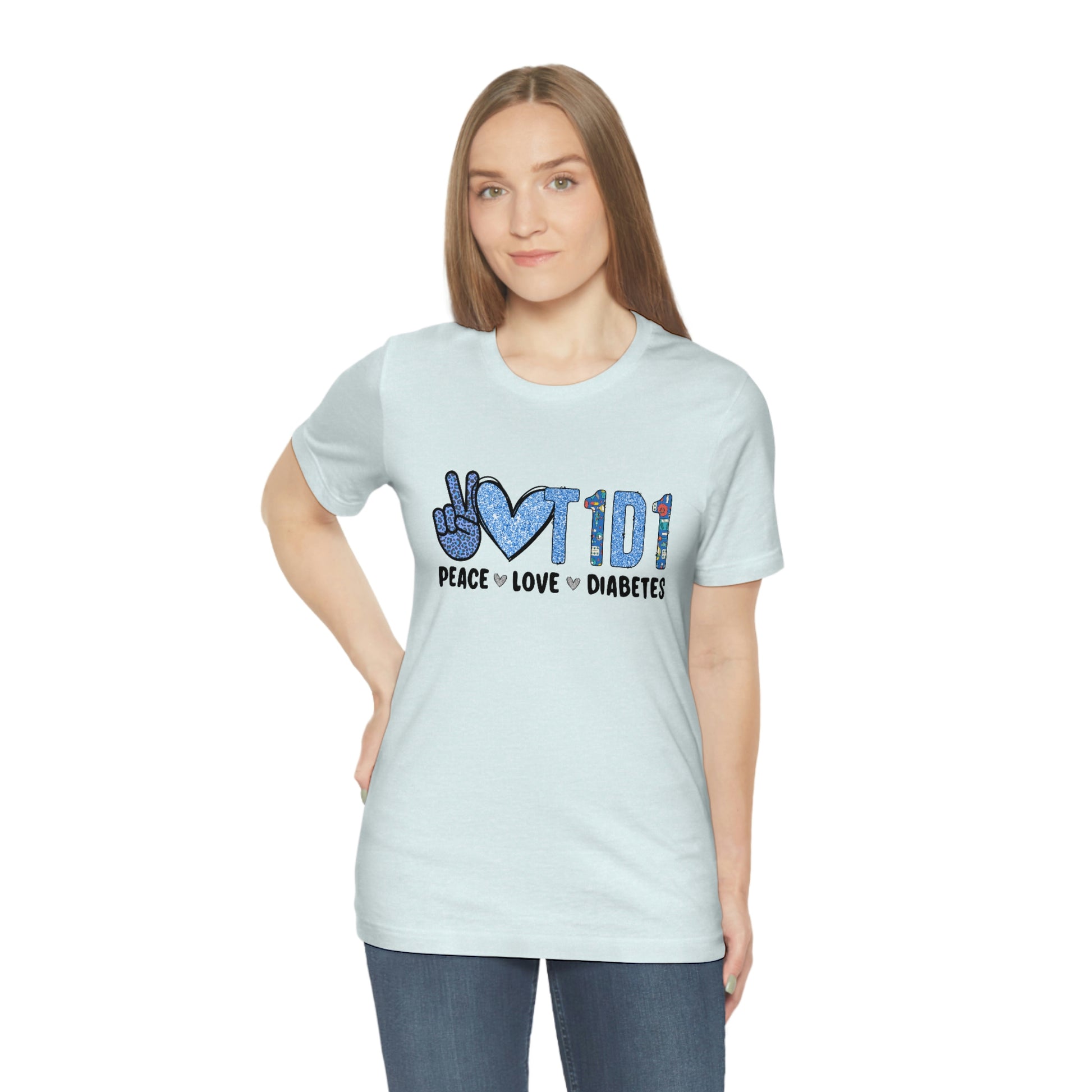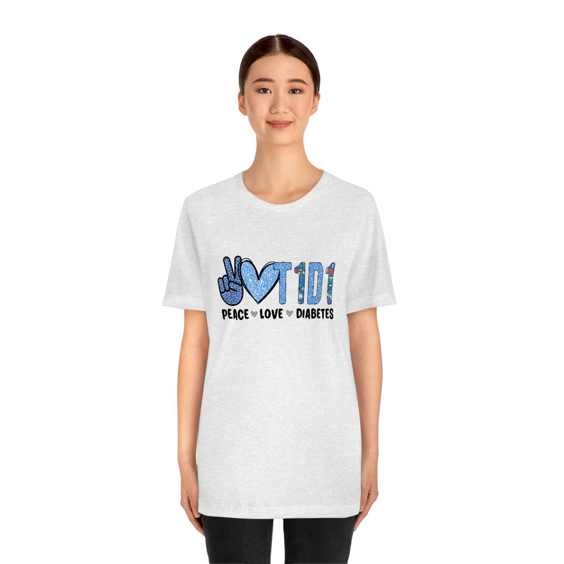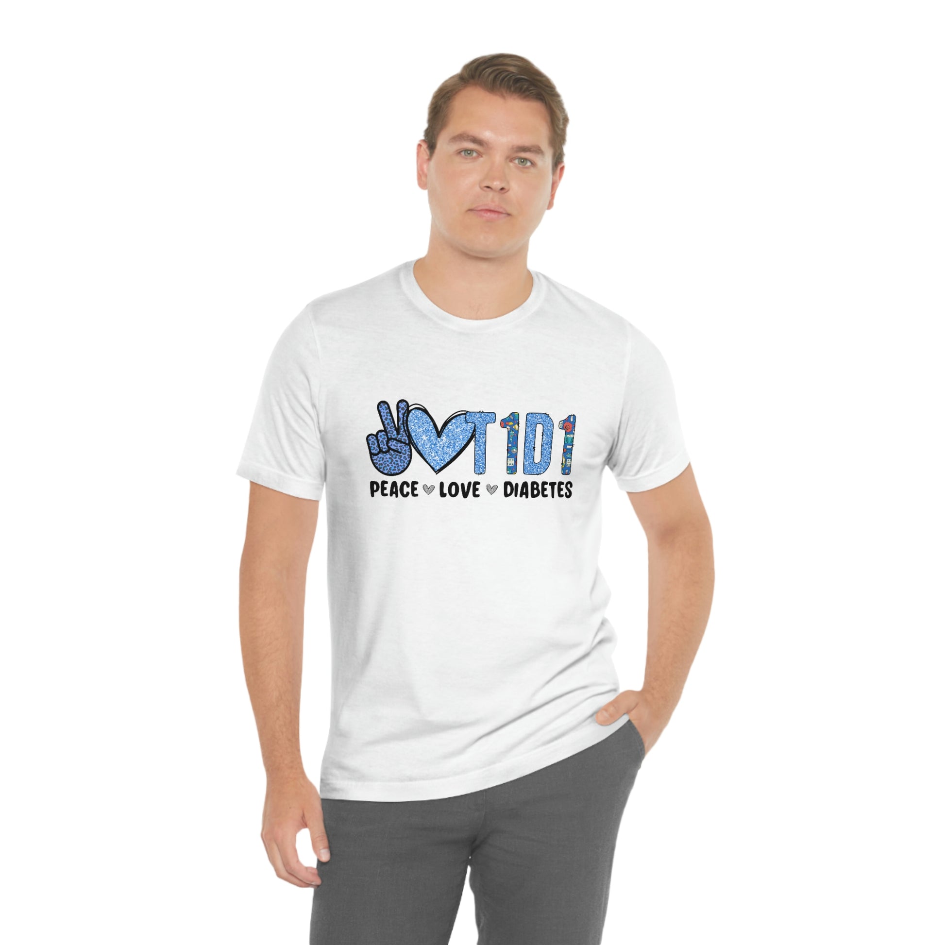 Peace Love T1D1 Diabetes Awareness Print Unisex Jersey Short Sleeve Tee