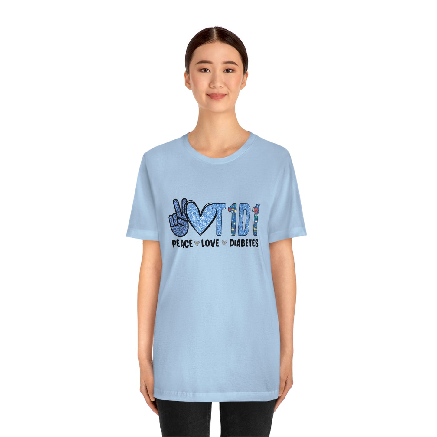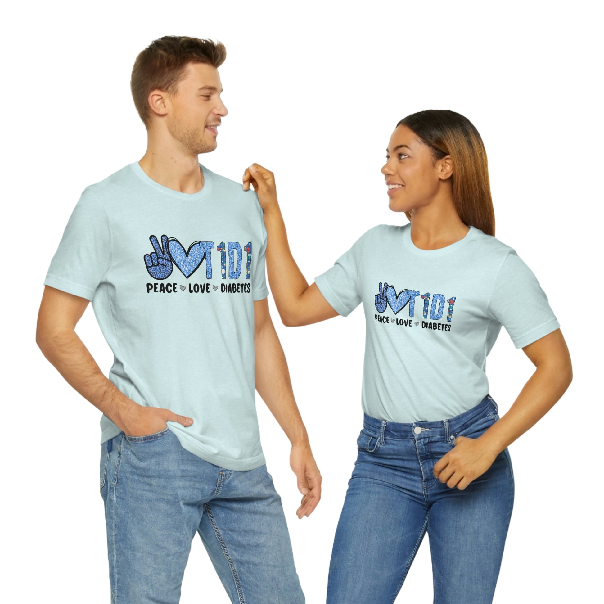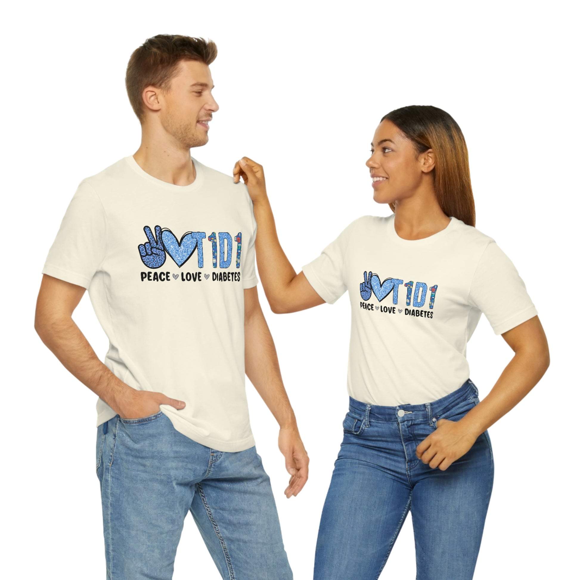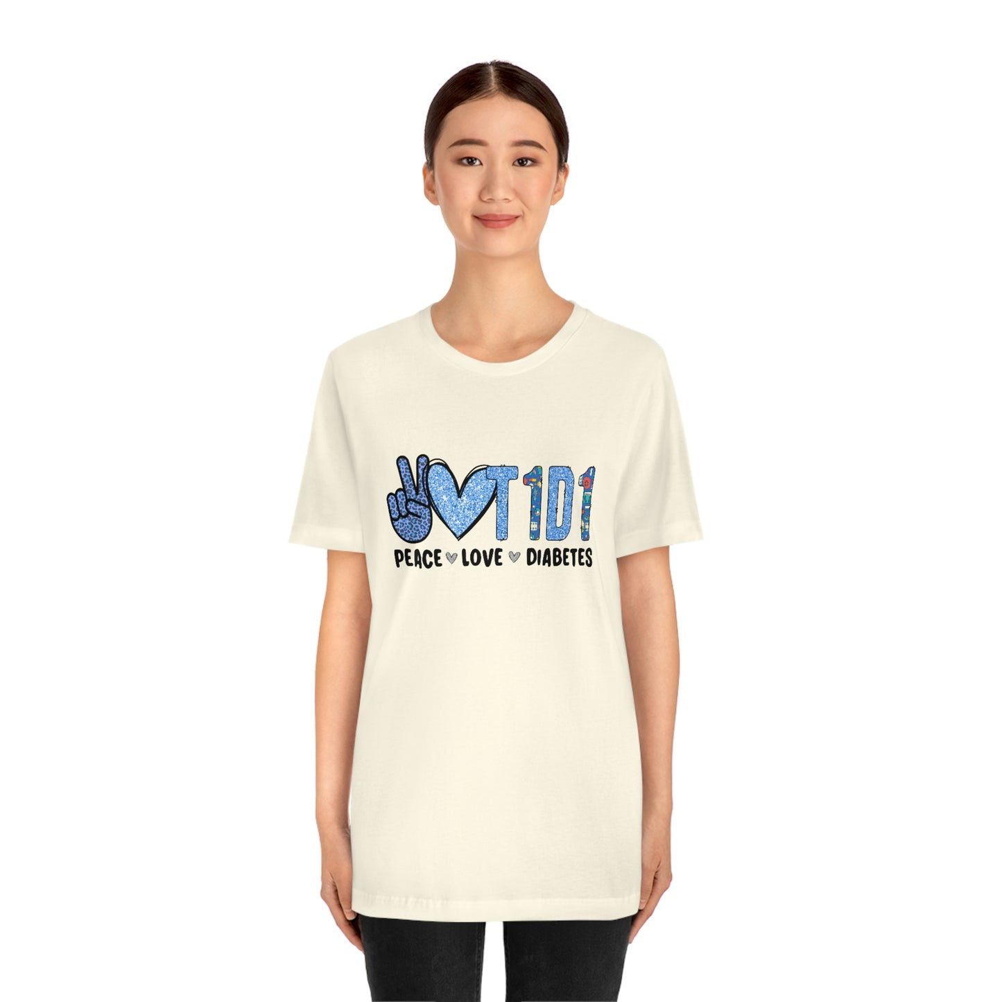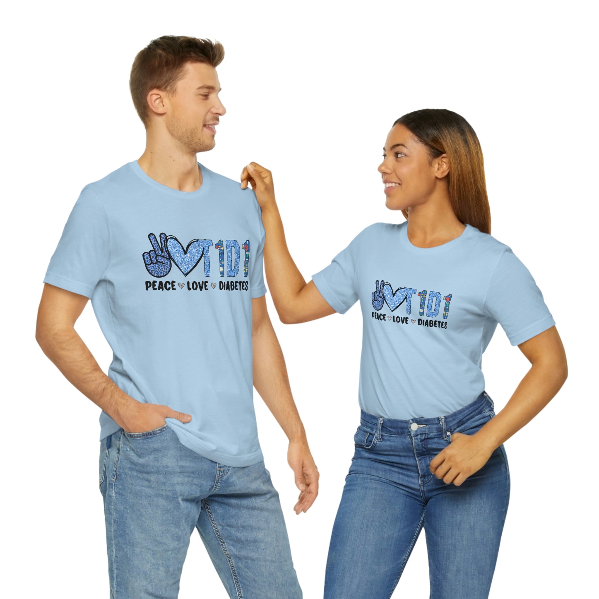 Peace Love T1D1 Diabetes Awareness Print Unisex Jersey Short Sleeve Tee